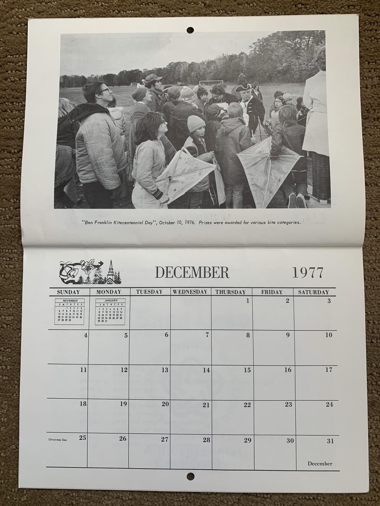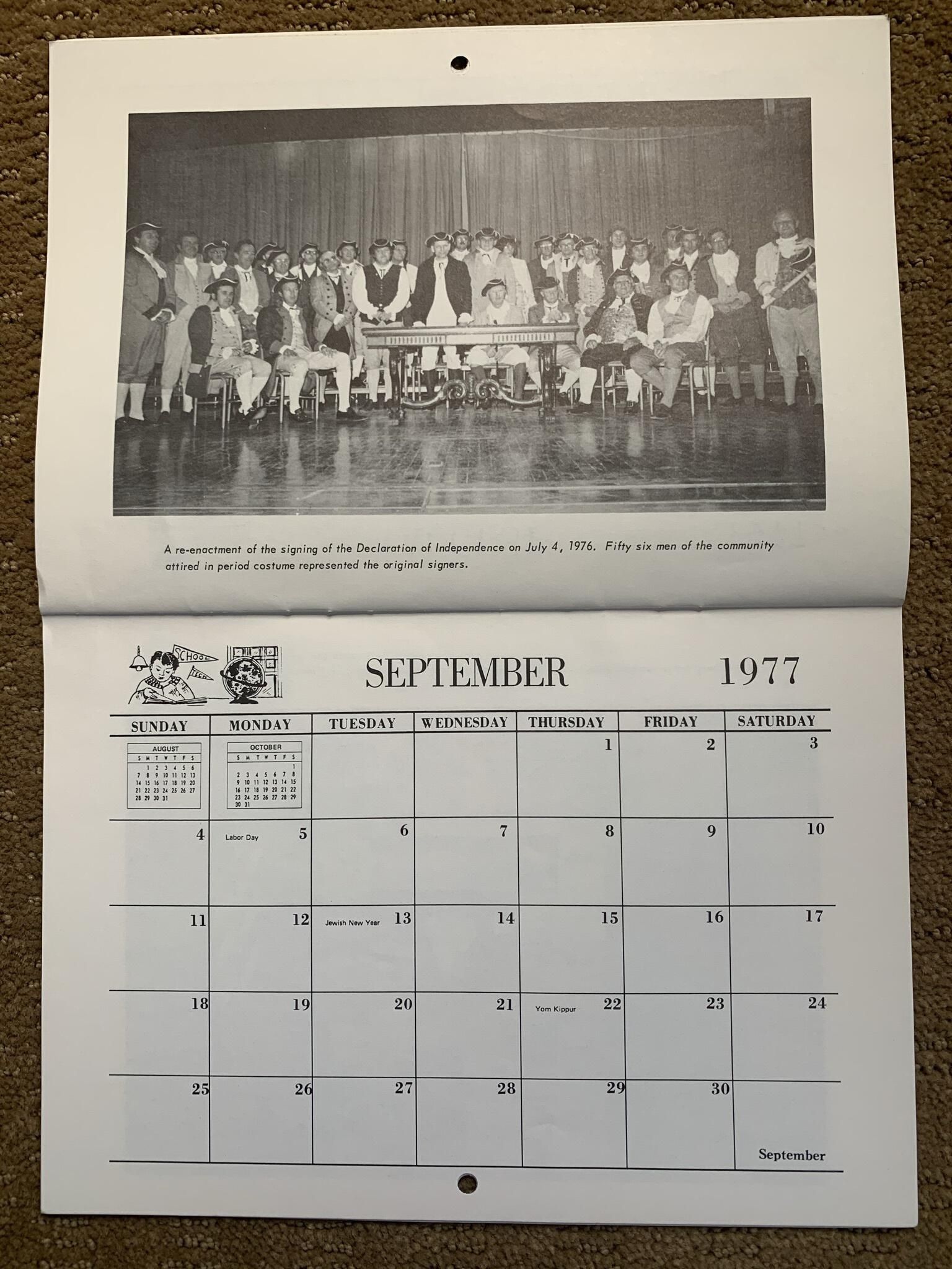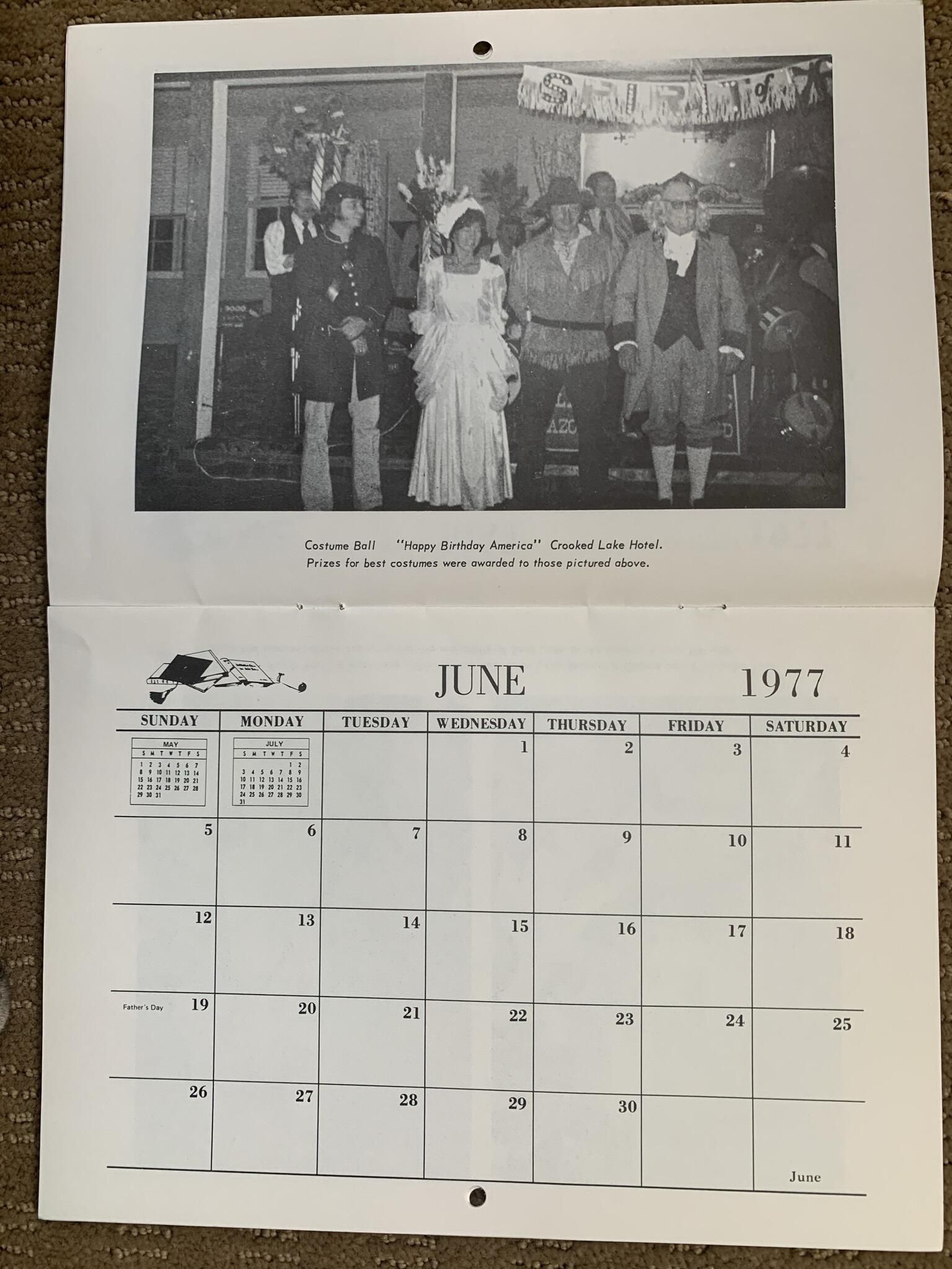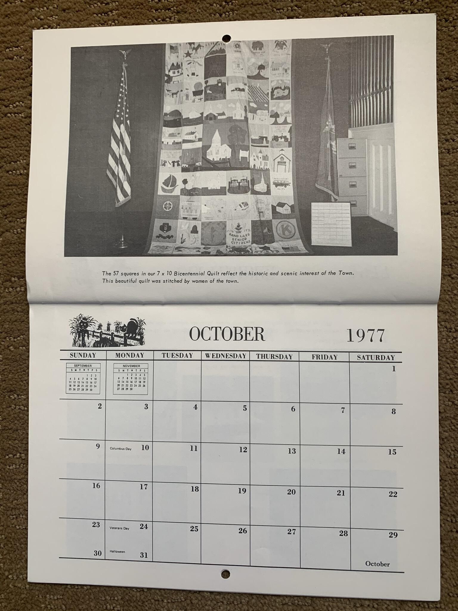 Celebratory and fund raising calendar created by the Sand Lake Historical Society in 1977 to commemorate US Bicentennial events conducted throughout the Town of Sand Lake in 1975 and 1976. SLHS had several copies remaining as of 2021, including an archival copy that is stored in Page Protector 11 of the SLHS Miscellaneous Ephemera and Artifacts binder that is located in Drawer 2 of SLHS File Cabinet 1 located on the second floor of Town Hall.Cataloged By