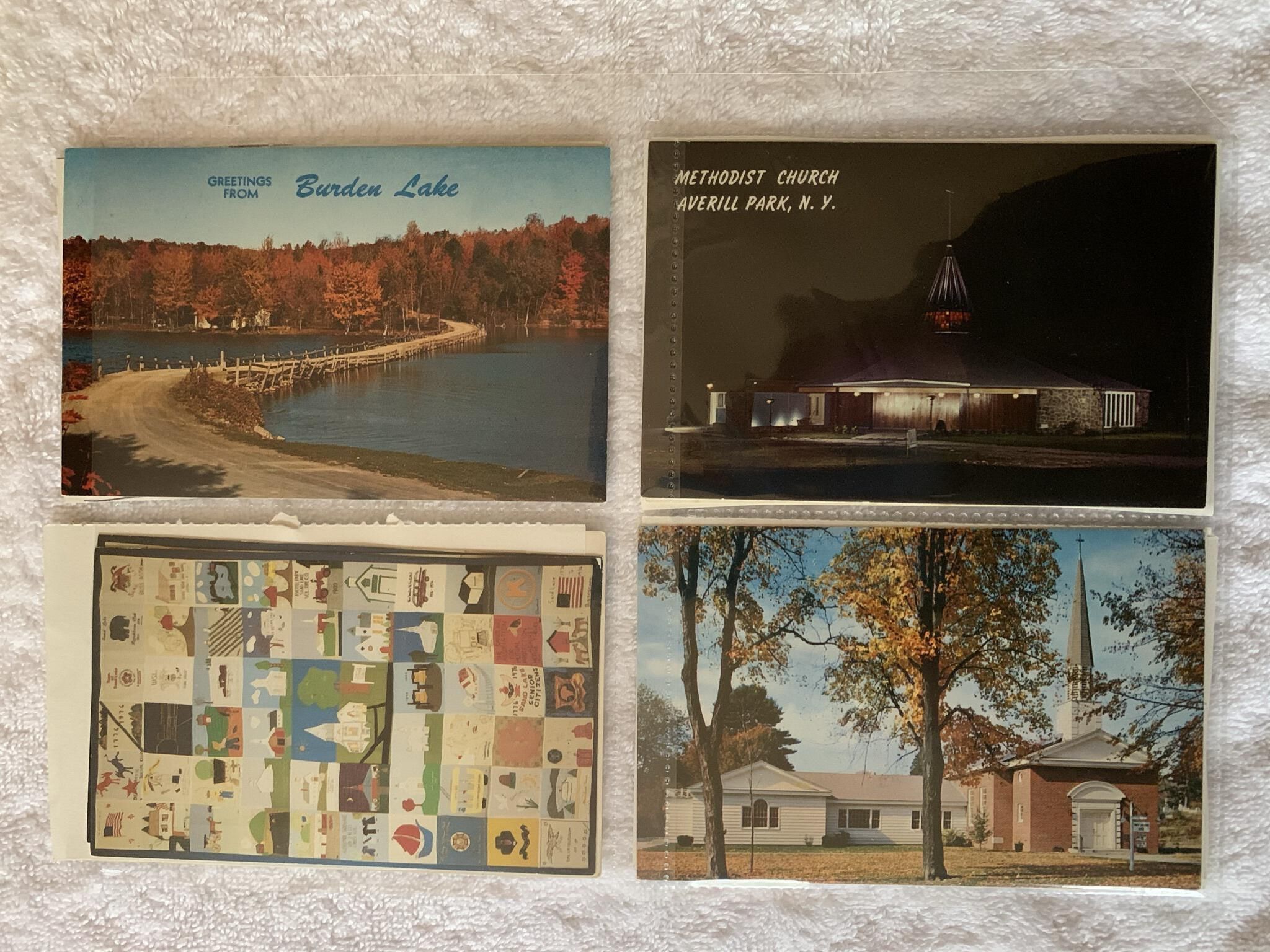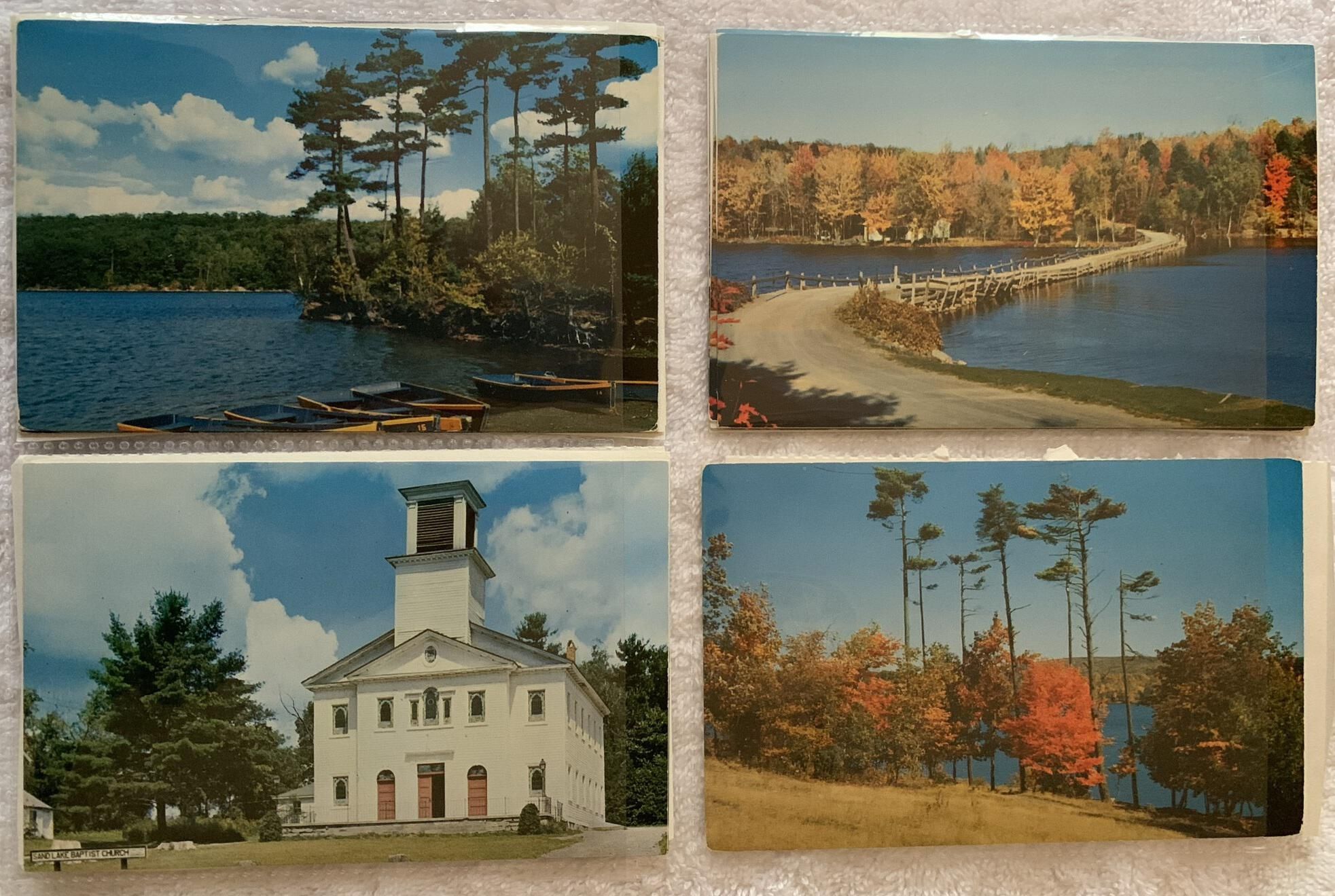 Binder storing various historic or vintage postcards related to the Sand Lake, NY, area that do not belong to an otherwise identifiable collection such as the Robert Shuey Postcard Collection. Note that multiple copies of identical postcards are occasionally stored together separated by acid-free paper.Context