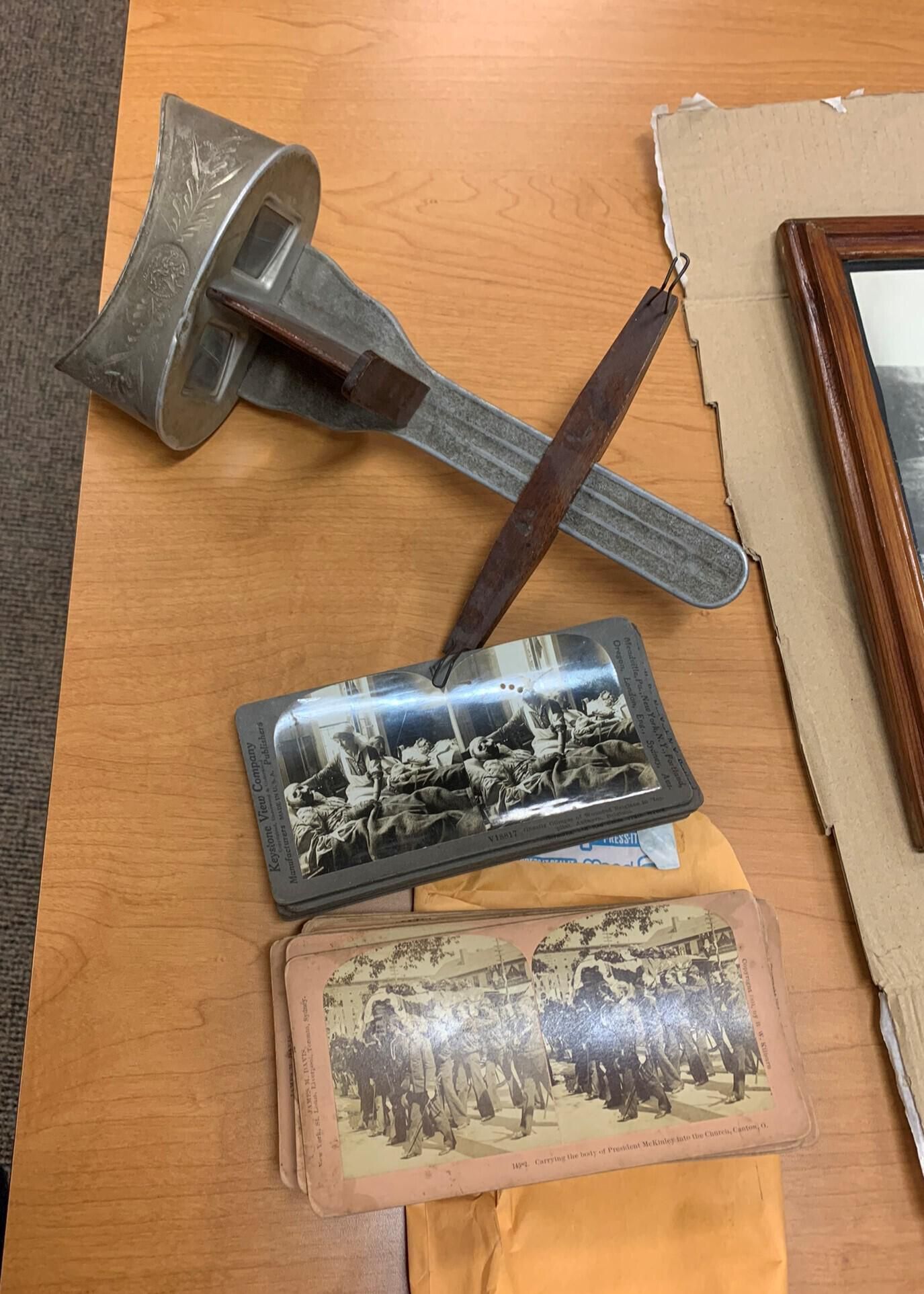 Stereoscope and over 100 primarily WWI and late 19th through early 20th century military-related slides that were shared by SLHS member and Sand Lake Town Council member Wayne Gendron during an April 12, 2002, SLHS Show and Tell Program Presentation.Cataloged By