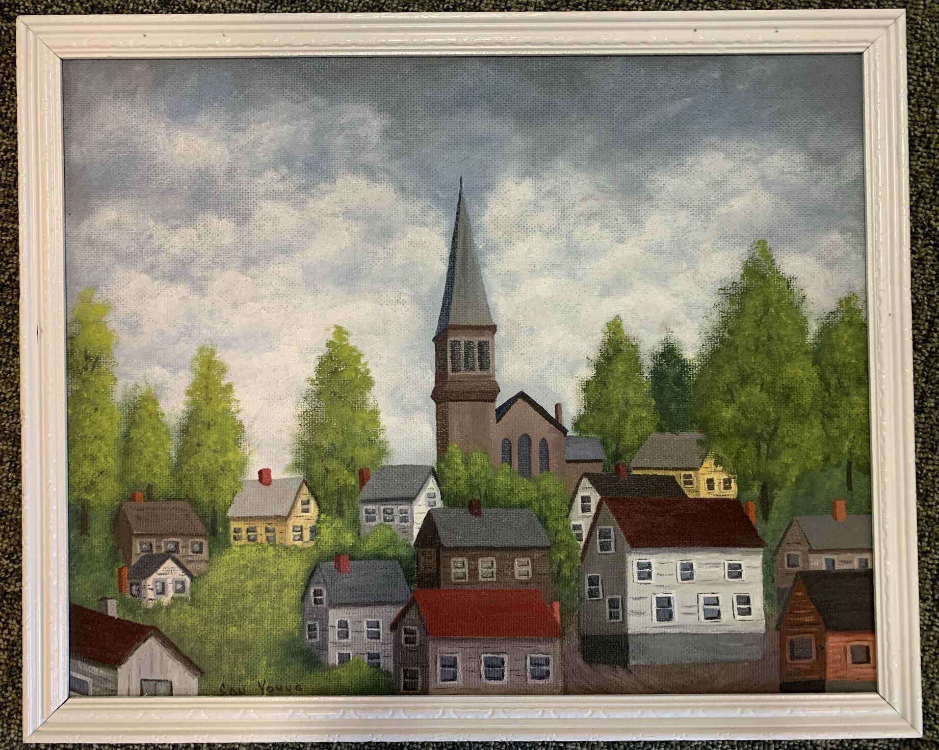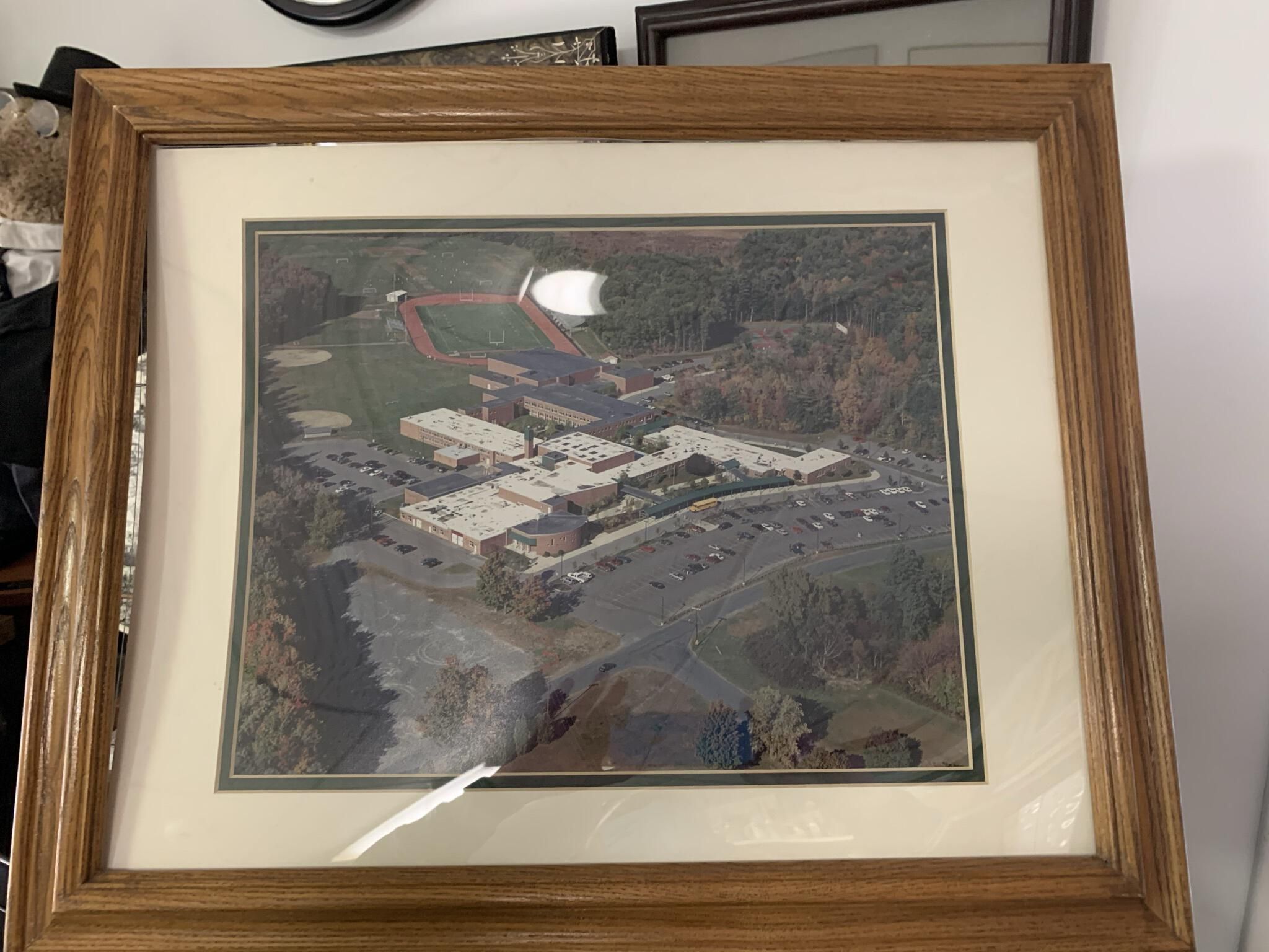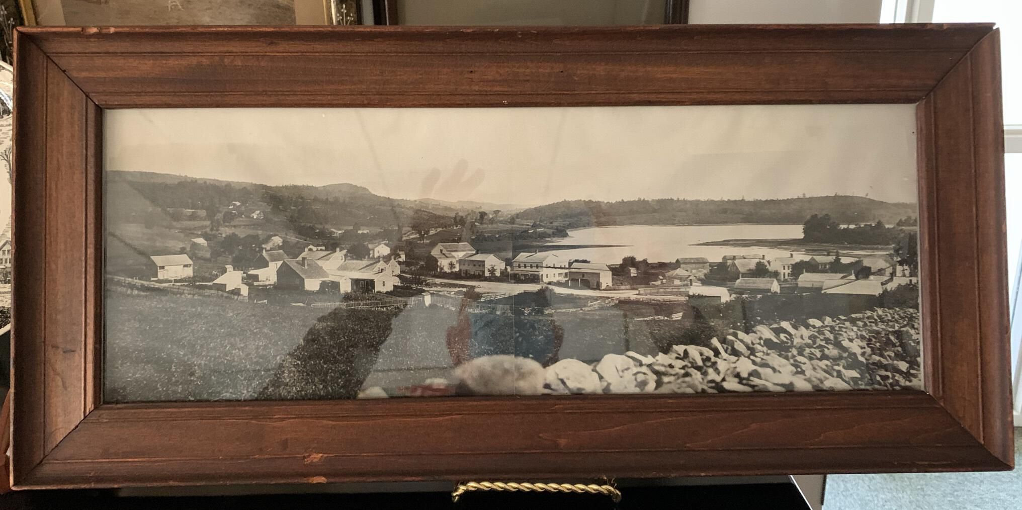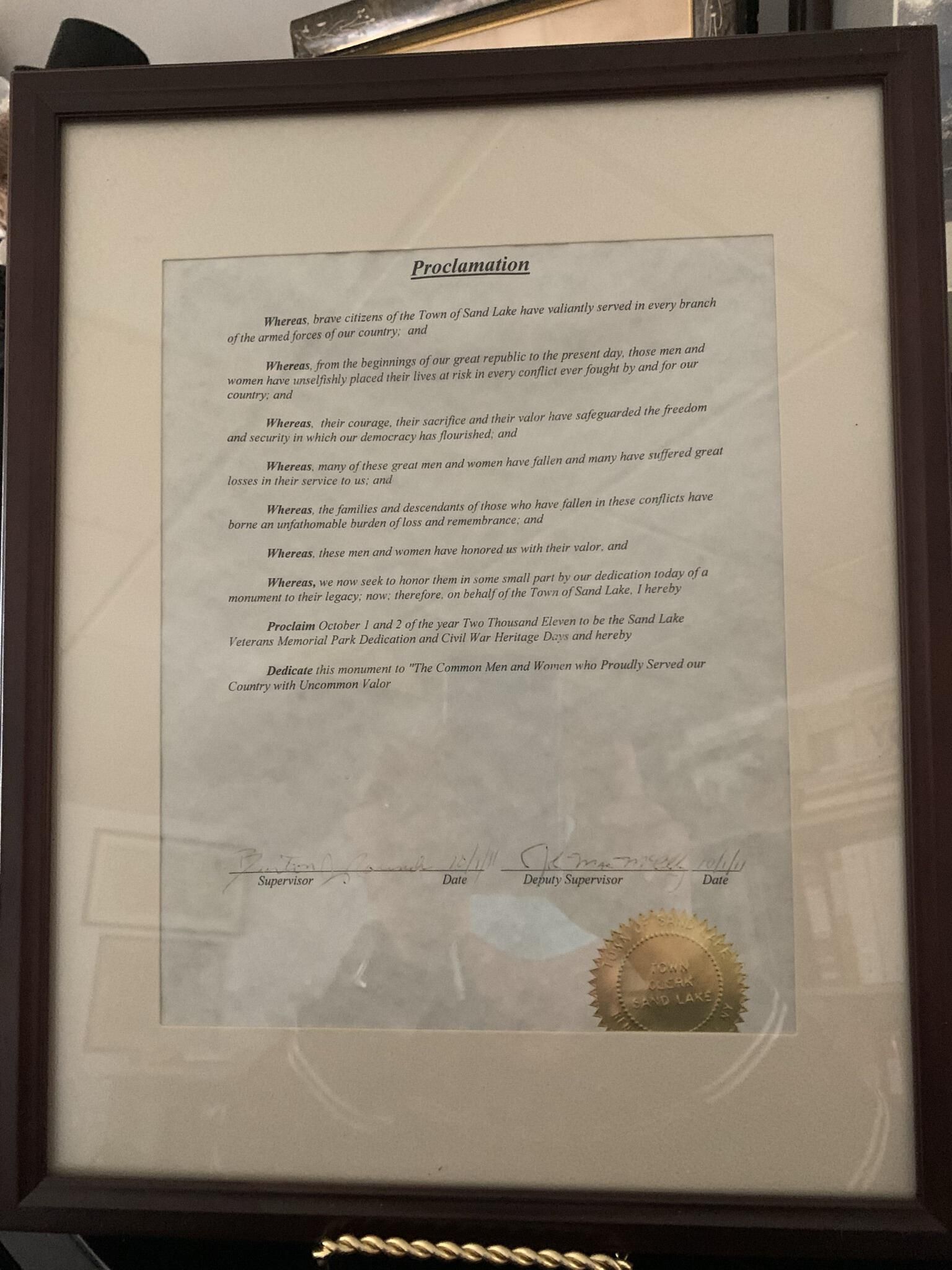 Town of Sand Lake (TOSL) owned Photo Box #1 - Cardboard box filled with miscellaneous primarily framed vintage, as well as more recent, photos and plaques that were found in various unrecorded locations throughout the Town Historian's office and storeroom. As a result, Town Historian Bob Moore and SLHS representative Michael Perry collected, photographed, and stored the various photos in a large box that is currently located under a table toward the rear of the Town Historian's storeroom on the 2nd floor of Town Hall. Some room still remains in the box. Note that several of the photos of artifacts stored in this box are redundantly included in other portions of this site as deemed appropriate with the understanding that the original photos can be found in this box and location. All of the items pictured in this entry can be found in this box and are owned by the TOSL.Context