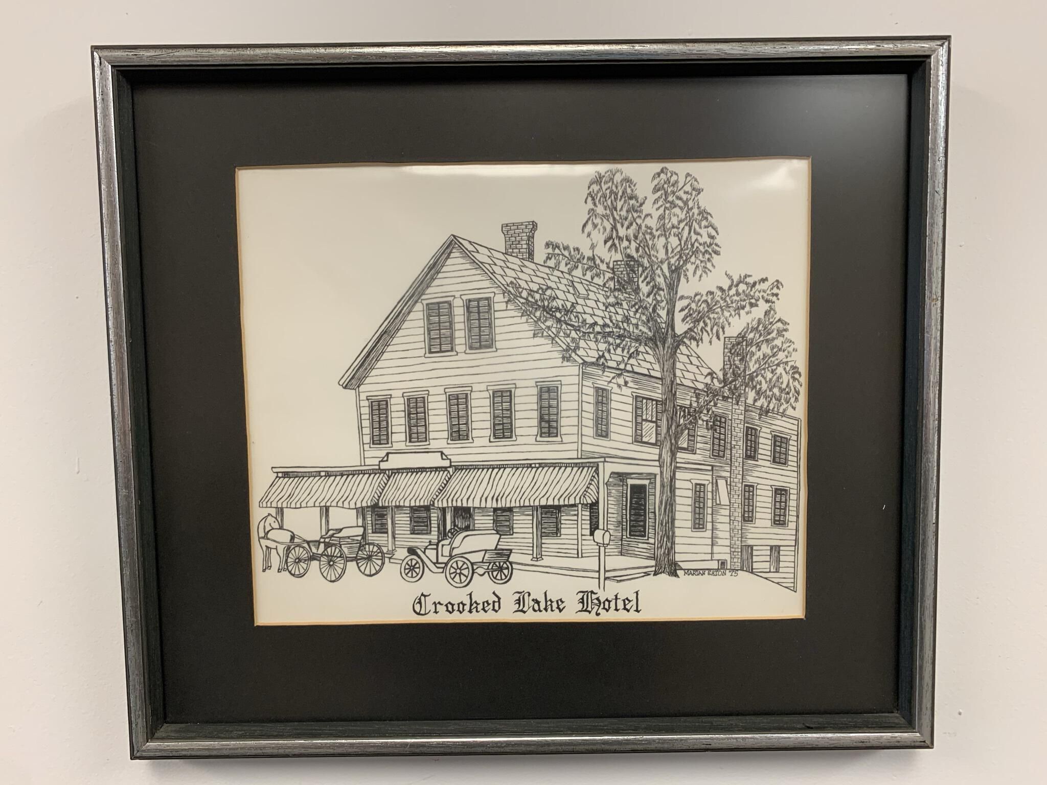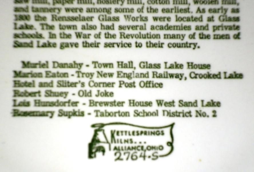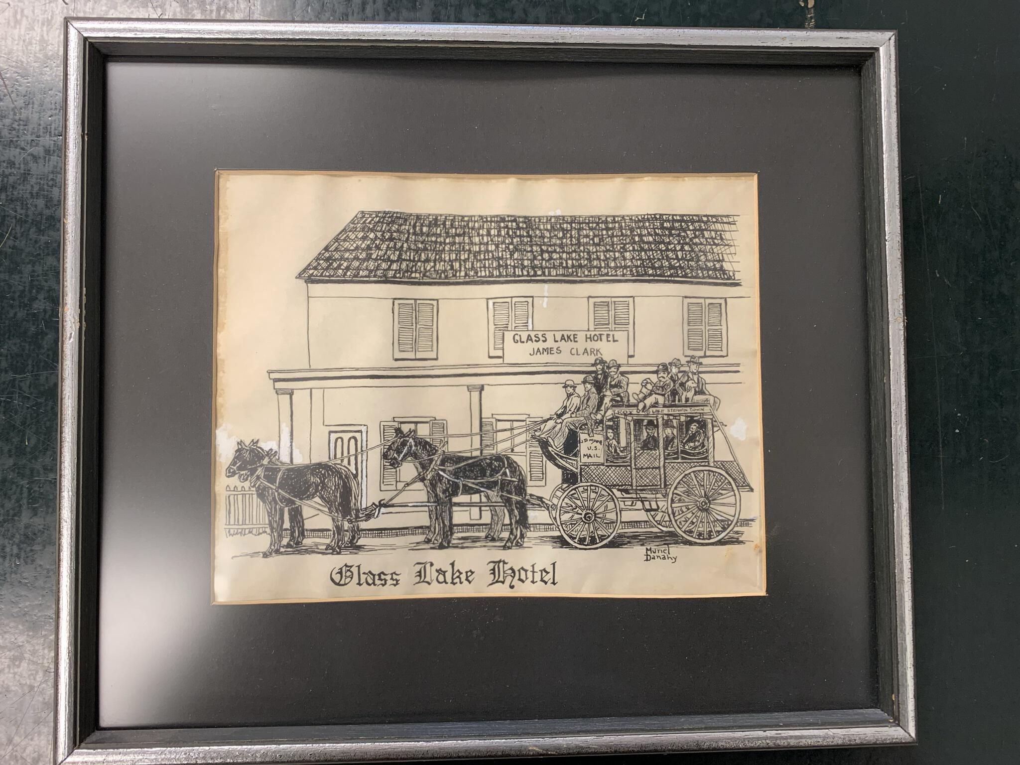 Crystal Lake Carousel , Town Hall , Sliter's Corners Post Office , District 11 Schoolhouse , Brewster House , Old Joke , Hand Pumper , Fire Engine , Troy New England Railway Trolley Station , Crooked Lake Hotel , Glass Lake Hotel , James Clark Proprietor , Marian Eaton , Rosemary Supkis , R. K. Shuey , Muriel Danahy , Lois Hunsdorfer , Engraving ,Collection
