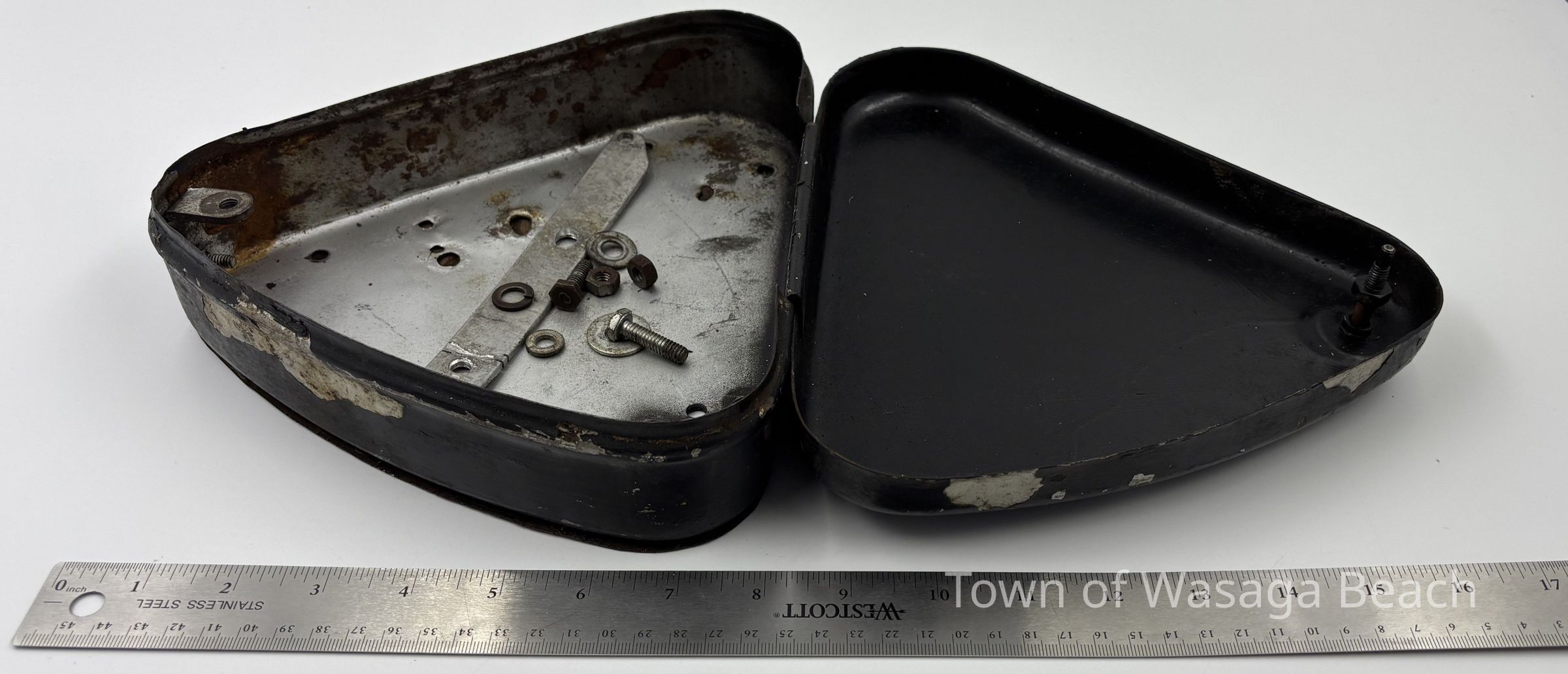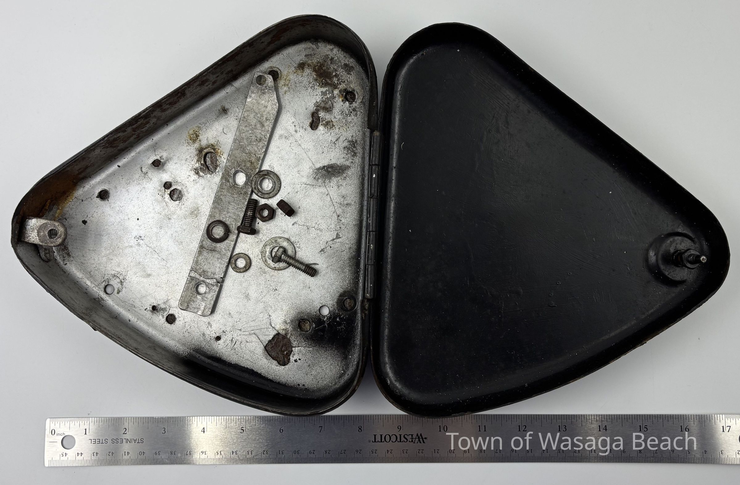In 2014, the Town of Wasaga Beach purchased the a rare vintage 1935 Rudge Ulster motorcycle that was originally owned and raced along the beach by Bob McCoy in 1937, reaching a speed of 89mph. The pictured tool box is part of the original motorcycle.Acquisition