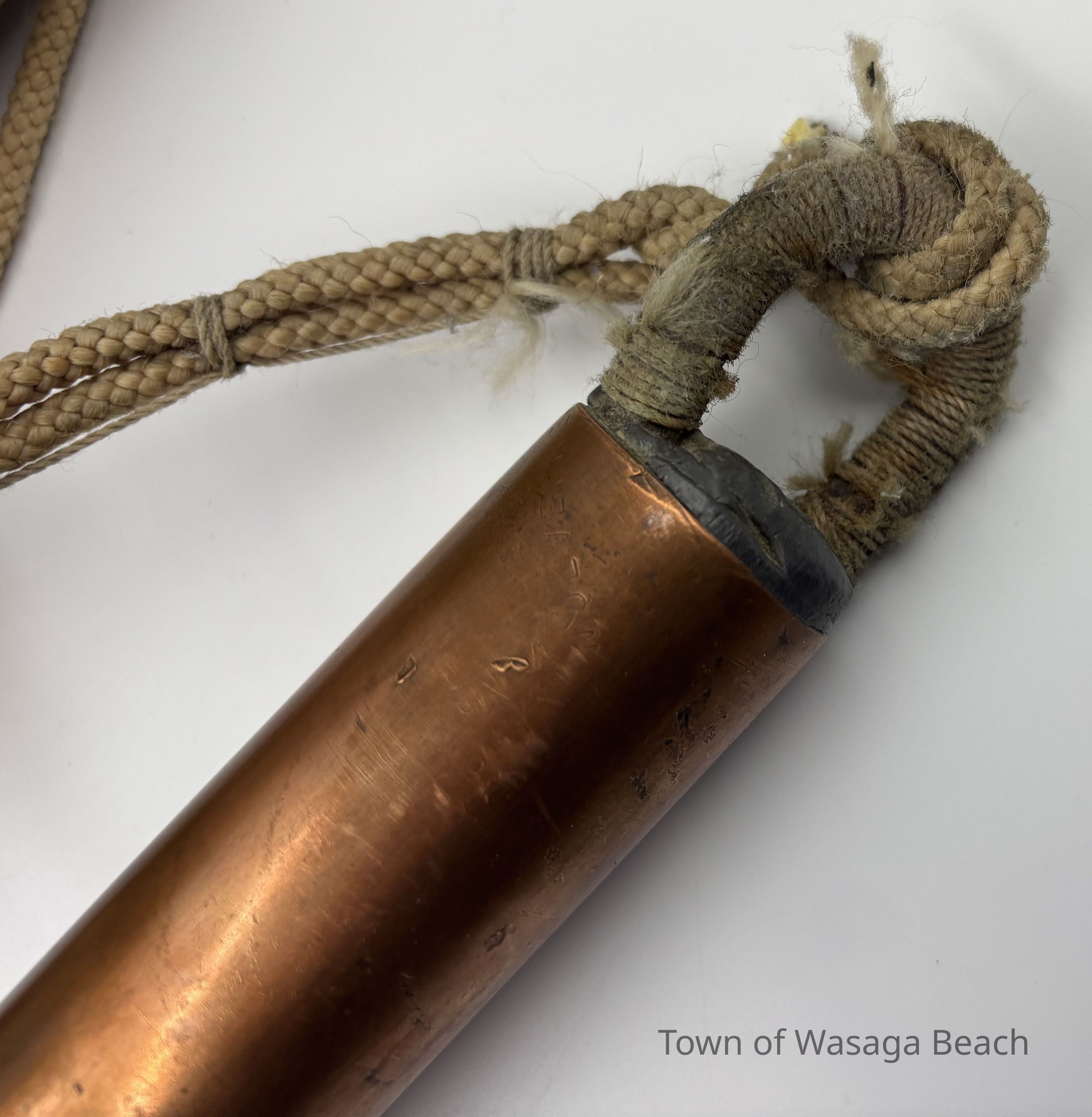 This item was made by Reford Whiteside. The long copper tube is filled with lead.