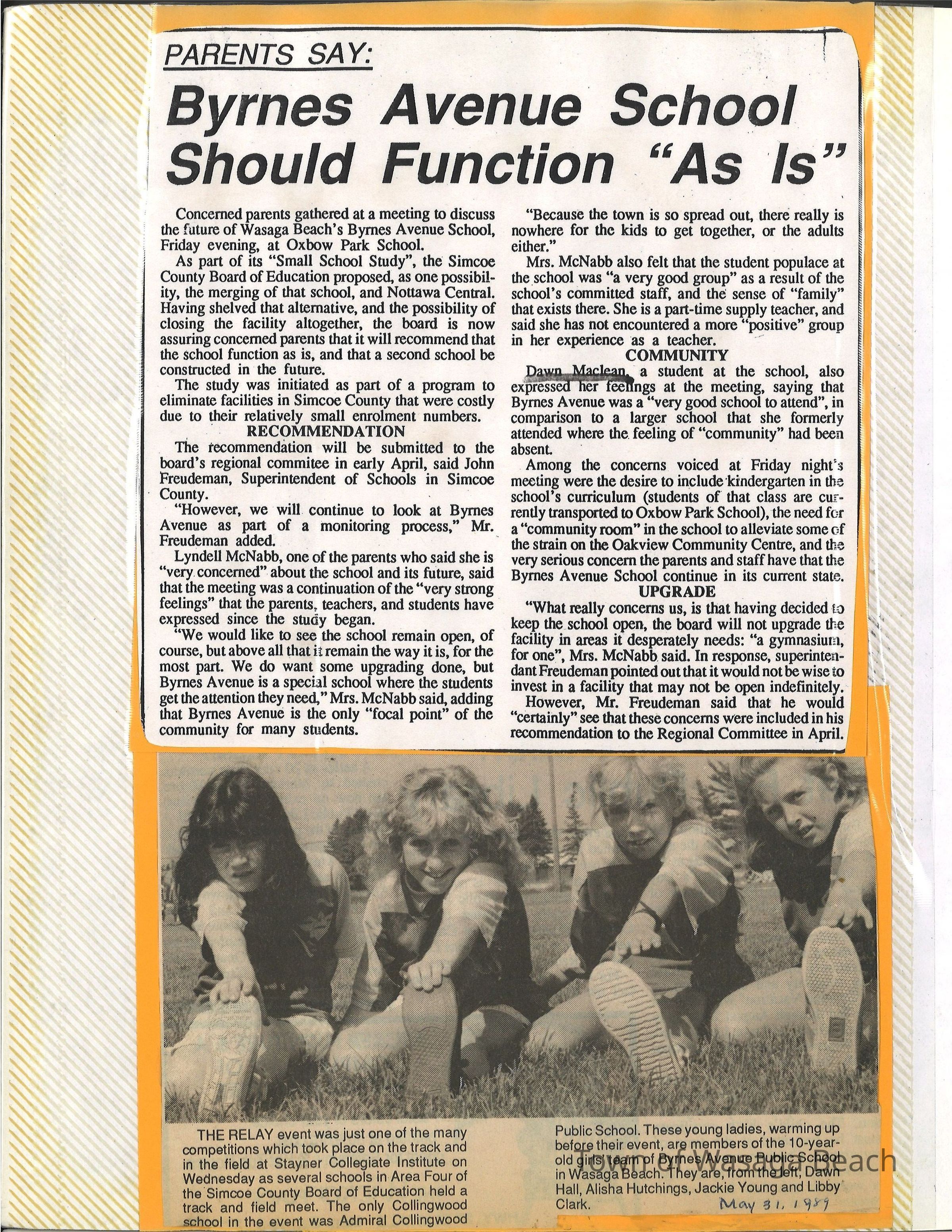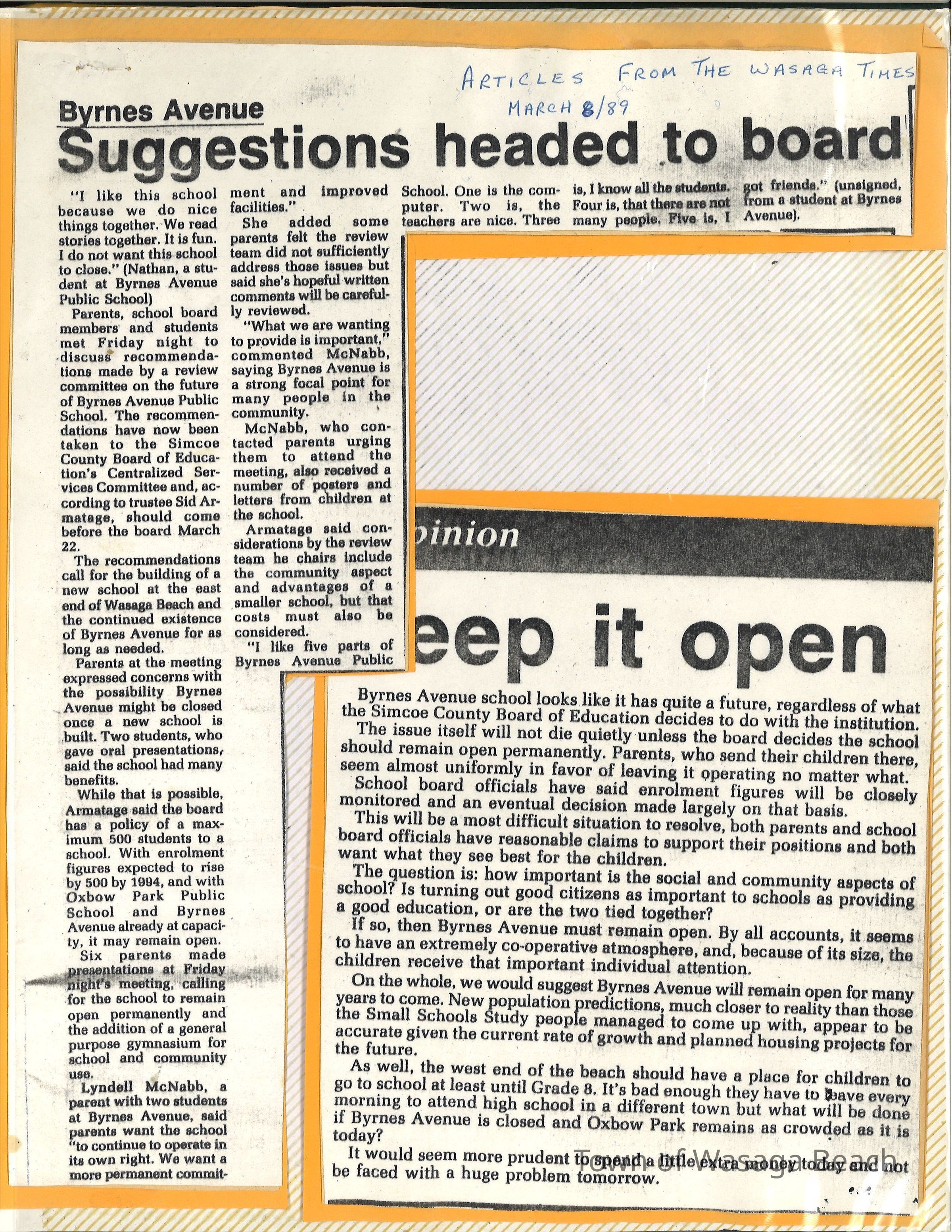 Newspaper clippings about Byrnes Avenue School, 1988-89Context