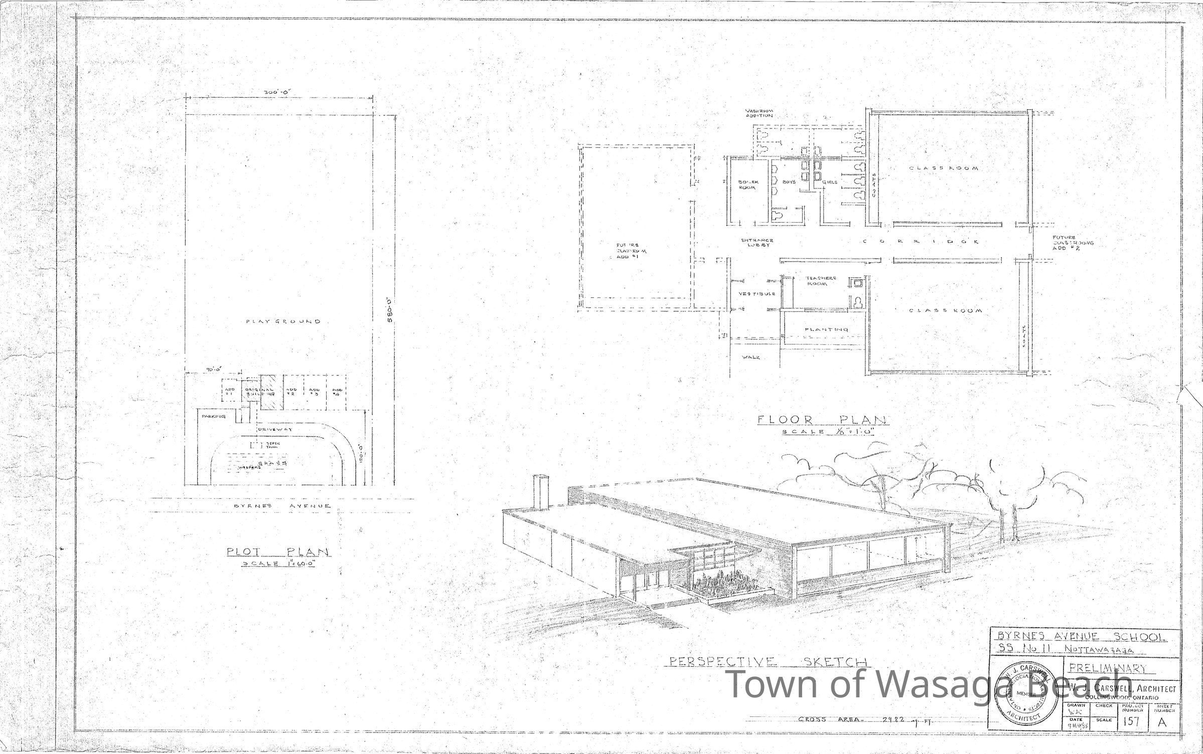 Byrnes Avenue School was constructed as a two-room school by the Nottawasaga Township School Board in 1940 and contained Grades 1-6. It was named Byrnes Avenue School due to its location on Byrnes Avenue (now Mosley Street). From 1954-60, students from both Buckingham and Fisher Public Schools began attending Byrnes Avenue School. Students from Baywood Public School were added when that school was closed in 1971. An addition was built after 1963, and in later years, portables were added, as well as the “Bubble” gymnasium. Byrnes was twinned with Oxbow Park School from 1974-78, then later permanently twinned when Oxbow Park was renamed Worsley Elementary School. The School was closed in 1994 and subsequently purchased by the Wasaga Beach Christian School.Acquisition