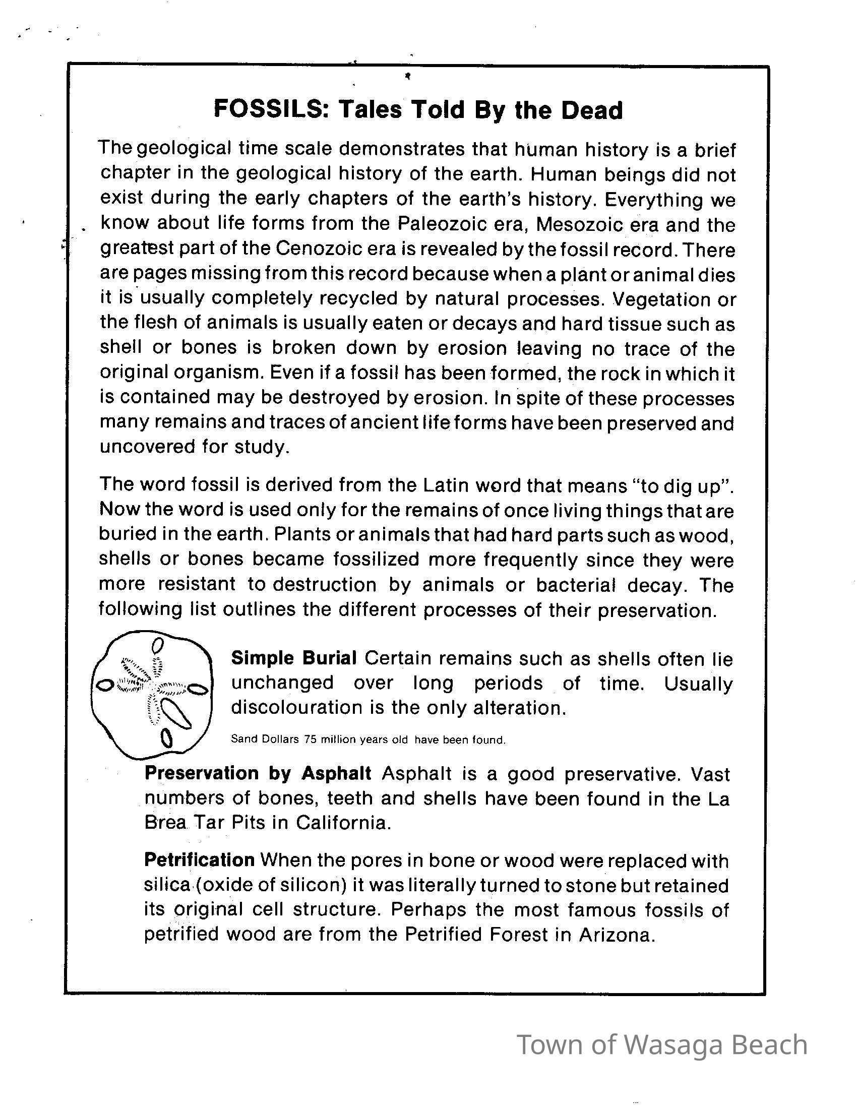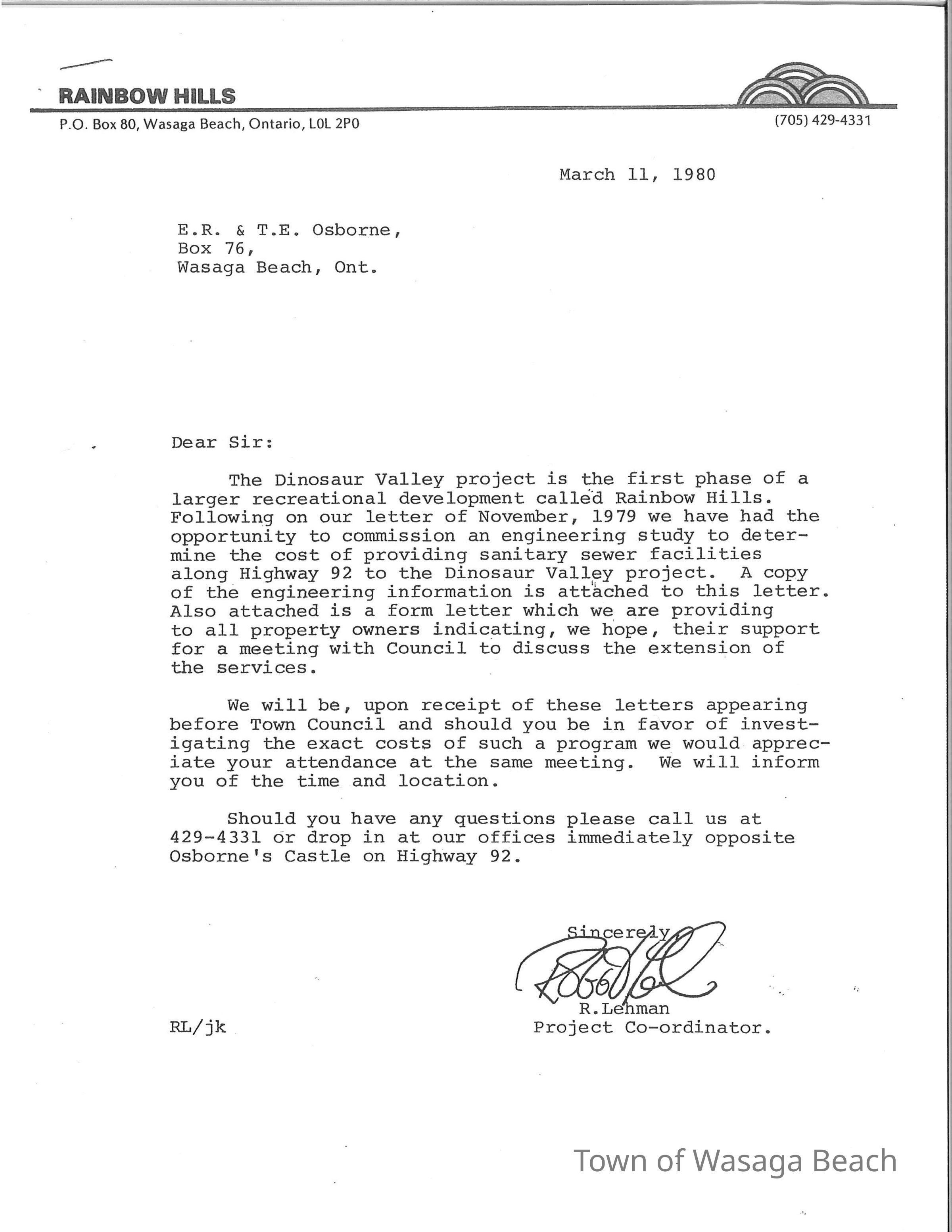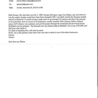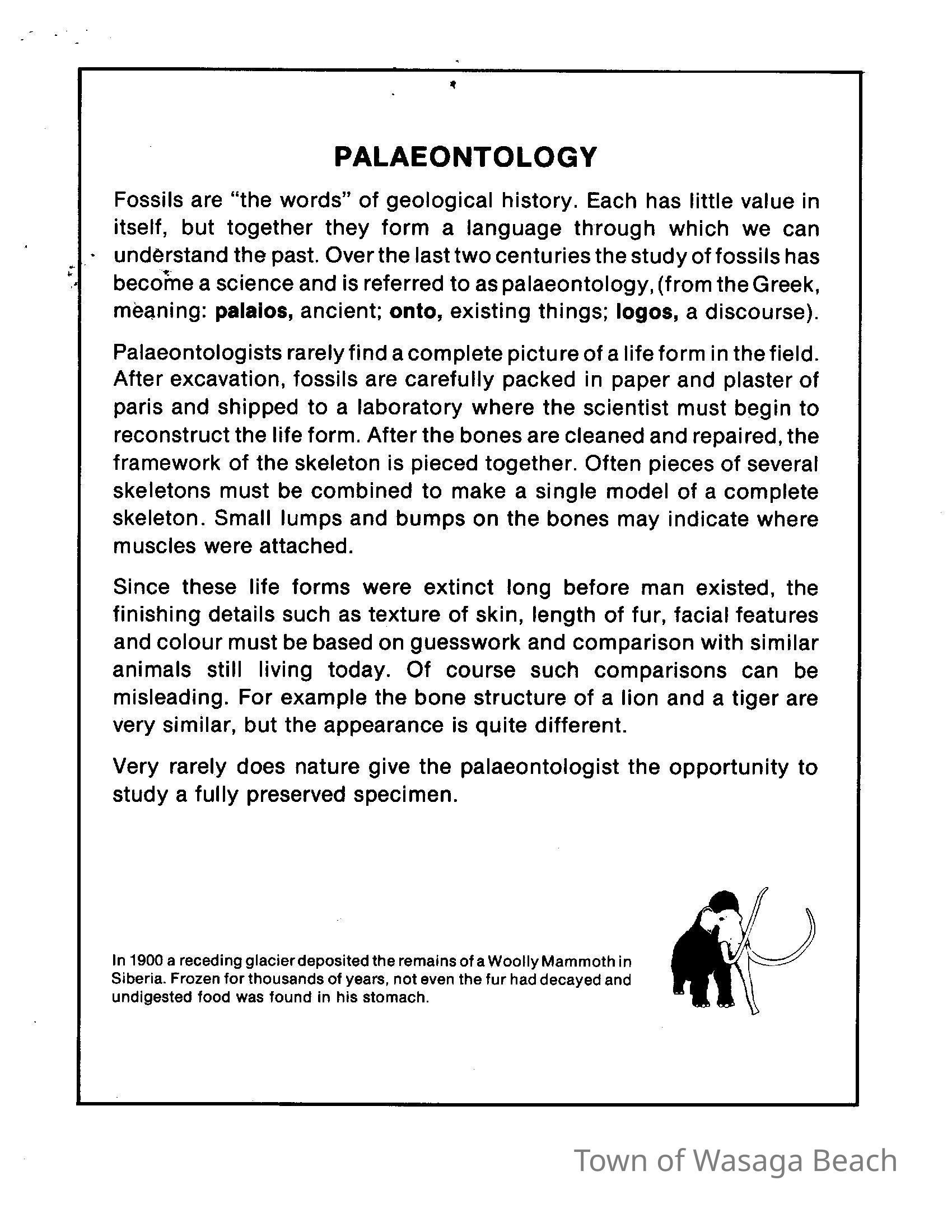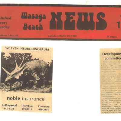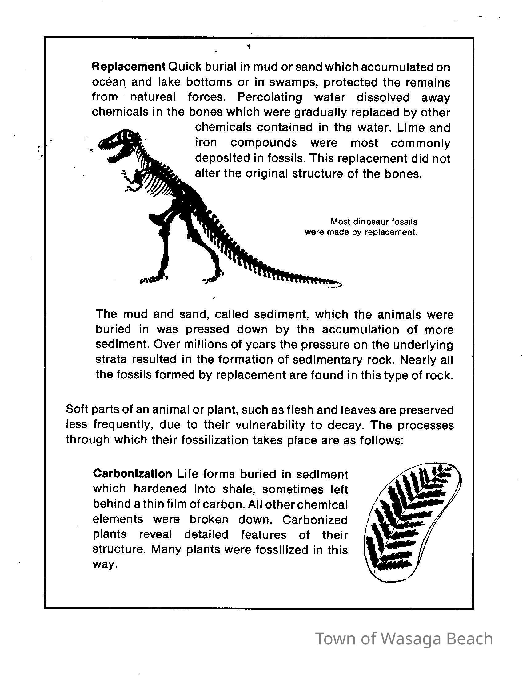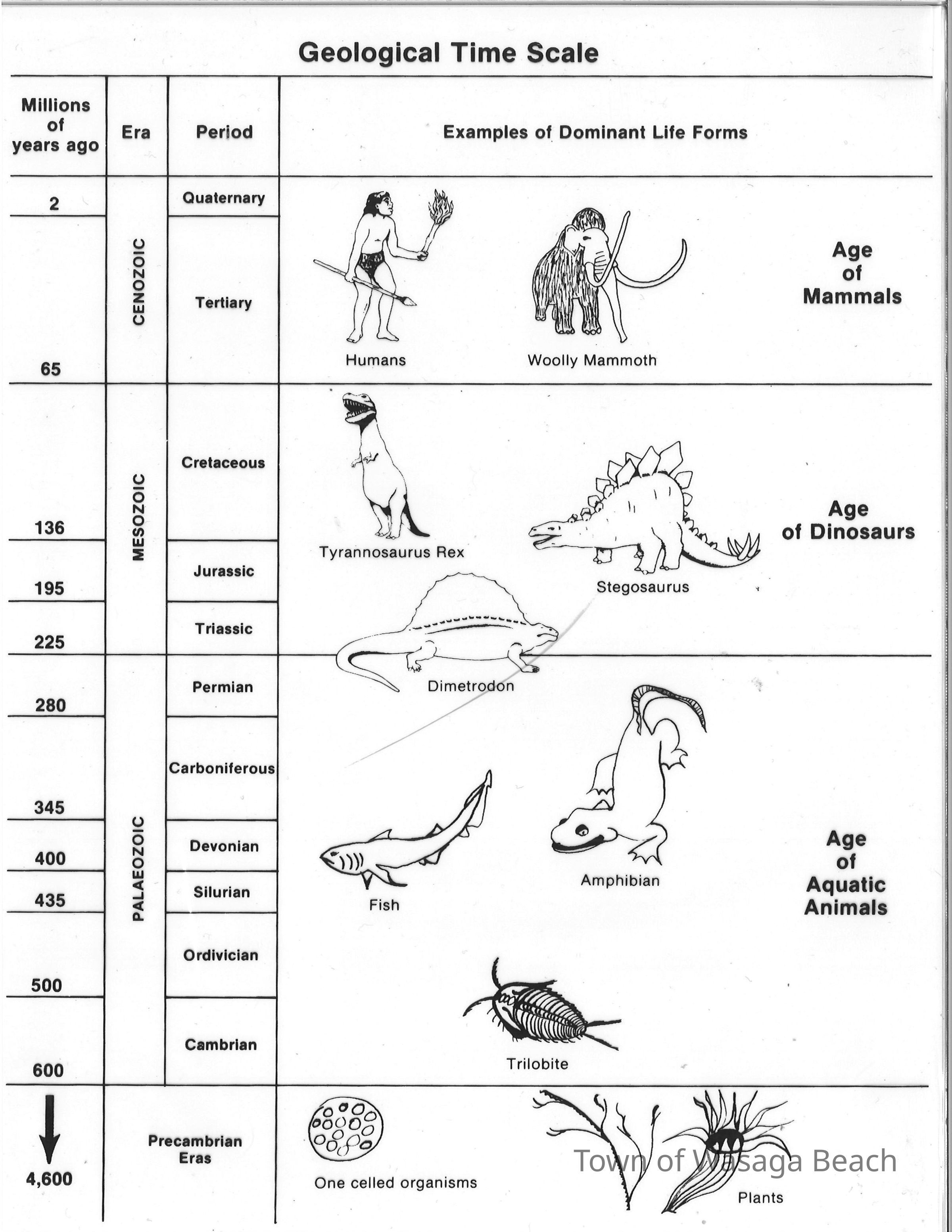Dinosaur Valley, owned by the Rainbow Hills Development Company, opened on June 21, 1980. Located across the road from the old Wasaga Stars Arena, eight acres of woodland and natural sand dunes provided the setting for half hour tours back in time to the Mesozoic Era. Dinosaur Valley offered "The Dinosaur Walk - over 20 prehistoric creatures in natural settings....For example, the Wooly Mammoth, an elephant-like giant with tusks 8 to 10 feet long...or the Triceratops, 30 feet long, with 3 horns and weighing about 10 tons", mini golf, known as Safari Golf, remote-control boats, a gift shop, snack bar and an outdoor terrace. Rainbow Hills Development Company filed for bankruptcy and the site disappeared in 1983.Acquisition