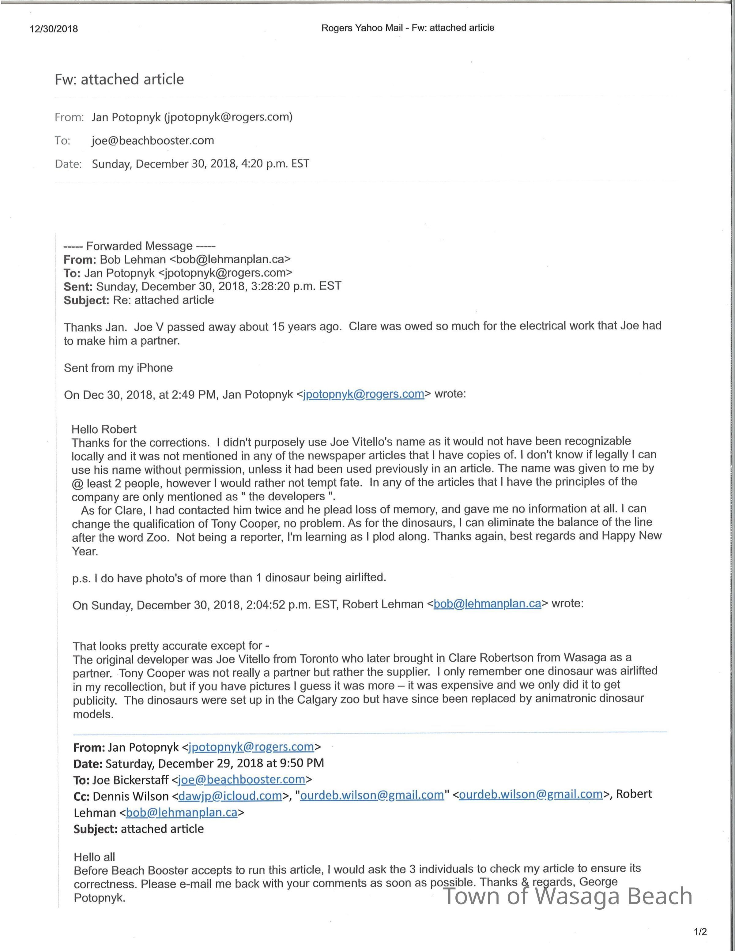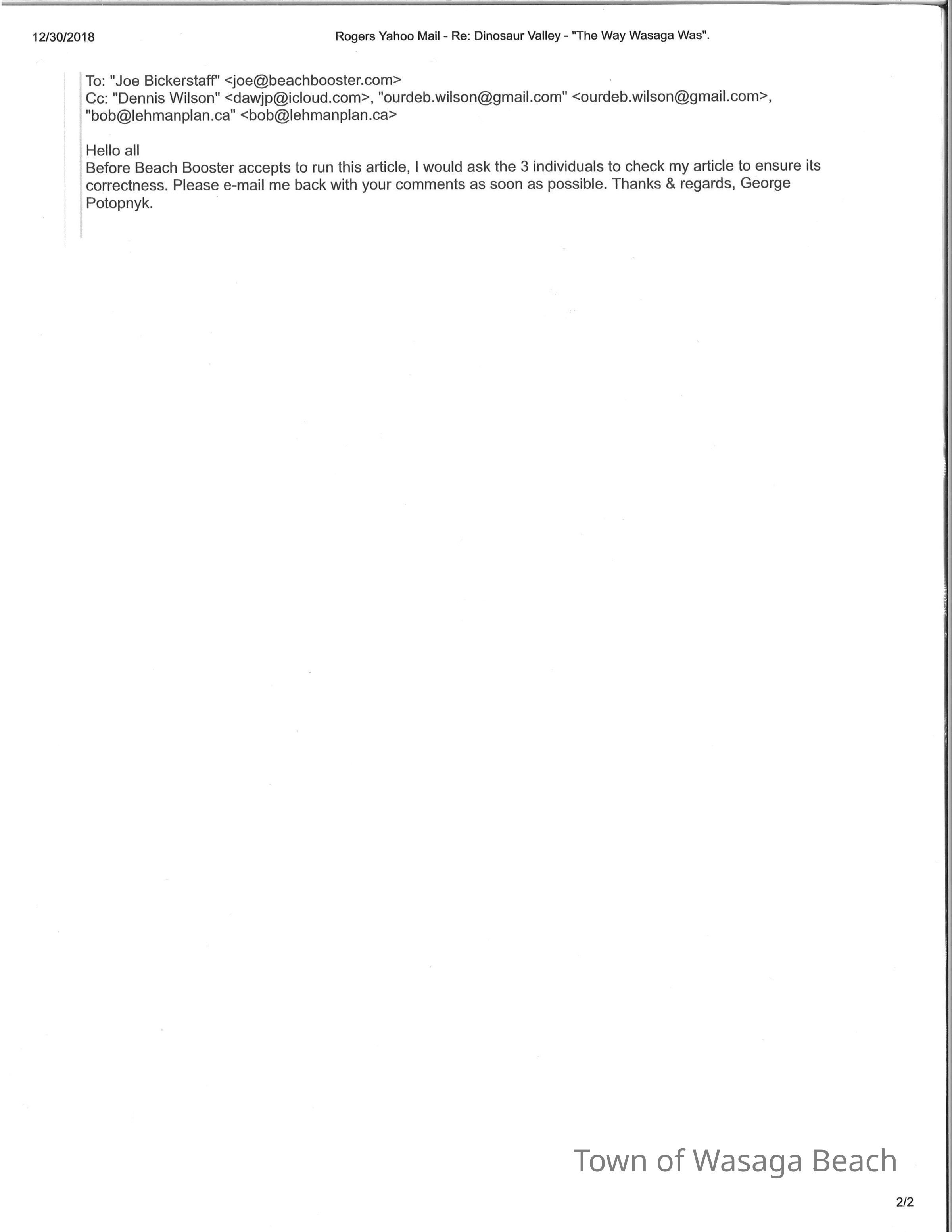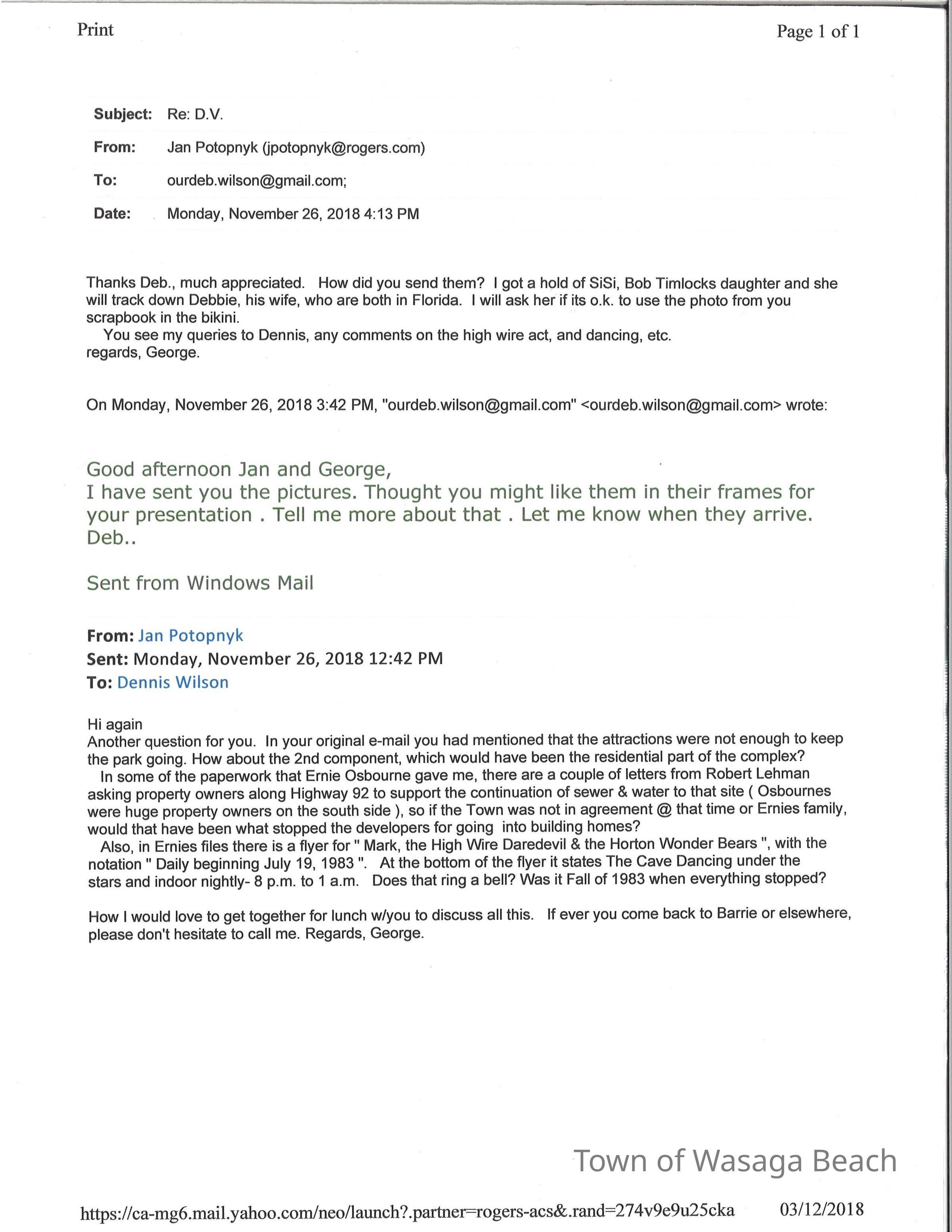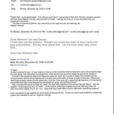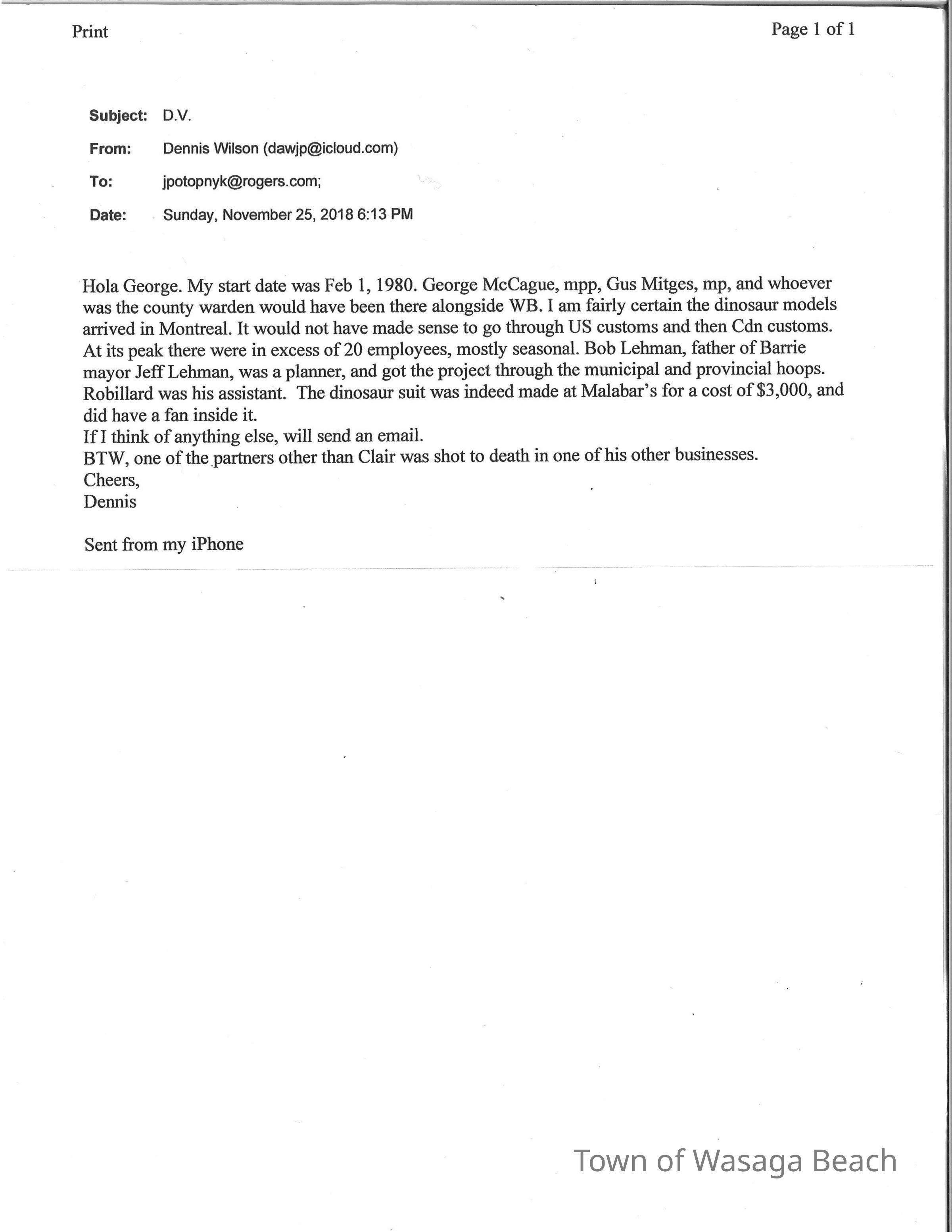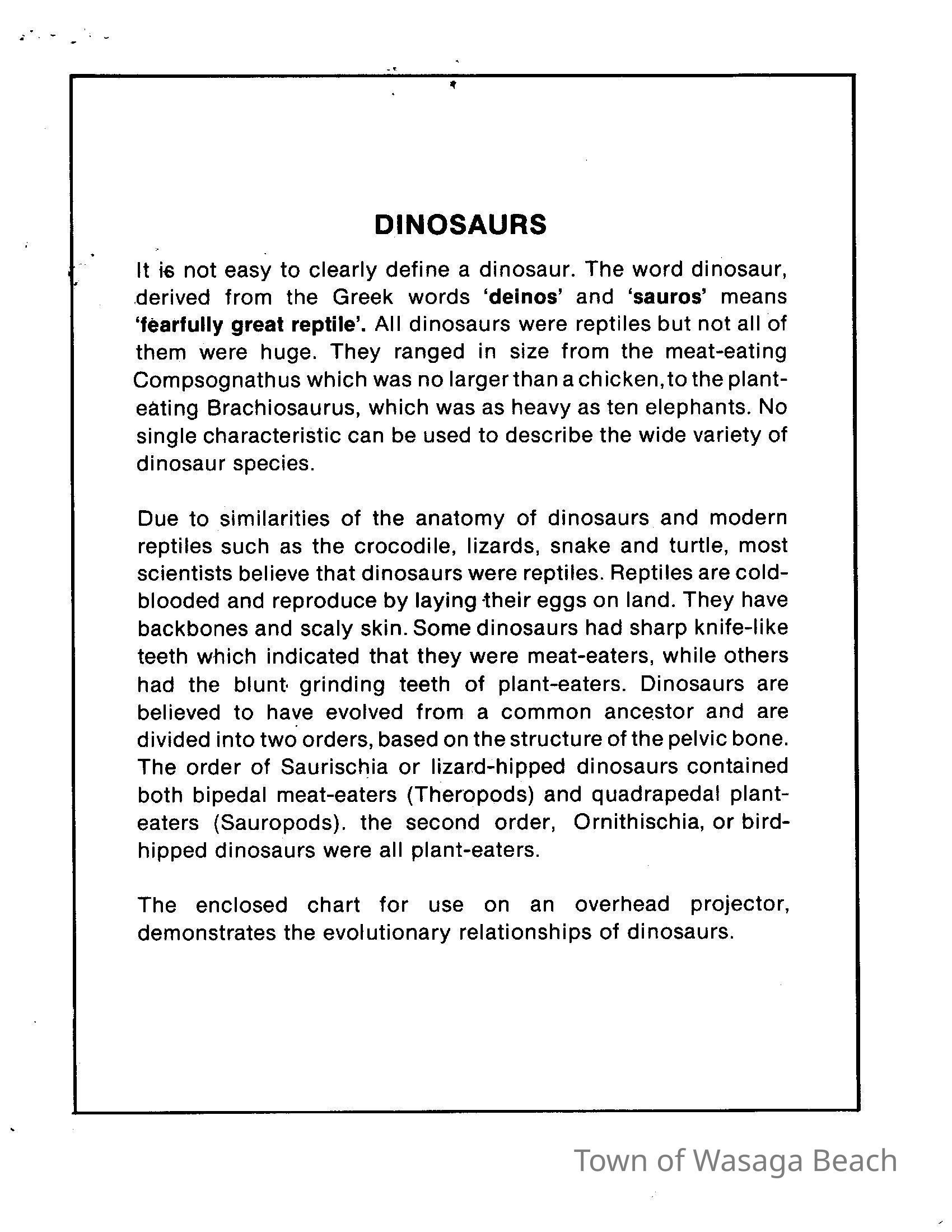 Dinosaur Valley, owned by the Rainbow Hills Development Company, opened on June 21, 1980. Located across the road from the old Wasaga Stars Arena, eight acres of woodland and natural sand dunes provided the setting for half hour tours back in time to the Mesozoic Era. Dinosaur Valley offered "The Dinosaur Walk - over 20 prehistoric creatures in natural settings....For example, the Wooly Mammoth, an elephant-like giant with tusks 8 to 10 feet long...or the Triceratops, 30 feet long, with 3 horns and weighing about 10 tons", mini golf, known as Safari Golf, remote-control boats, a gift shop, snack bar and an outdoor terrace. Rainbow Hills Development Company filed for bankruptcy and the site disappeared in 1983.Acquisition