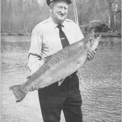 Fire Chief Russell Kenwell With World Record Rainbow Trout, 1975Entry/Object ID