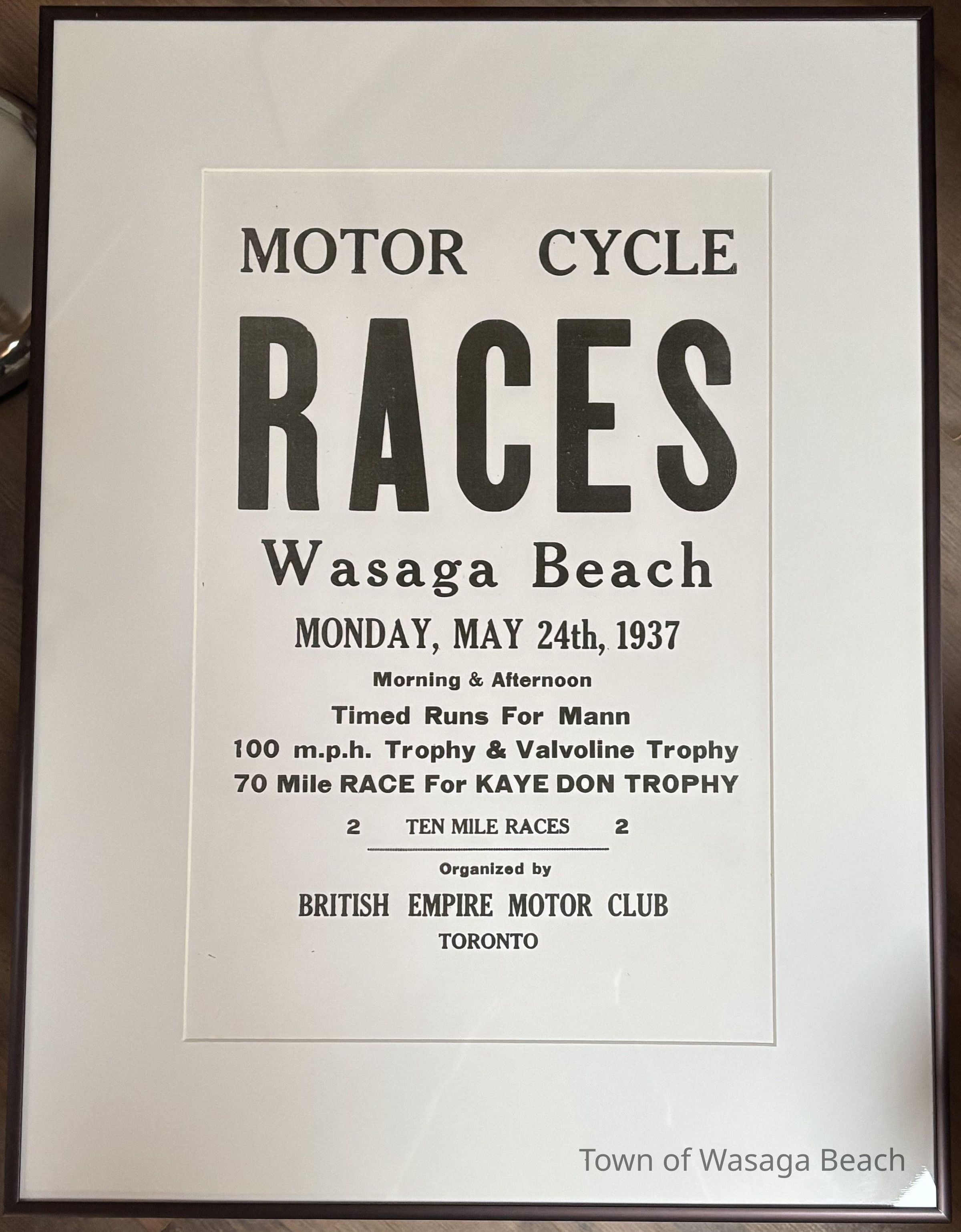 Framed Poster - Motorcycle Races at Wasaga Beach, 1937Entry/Object ID