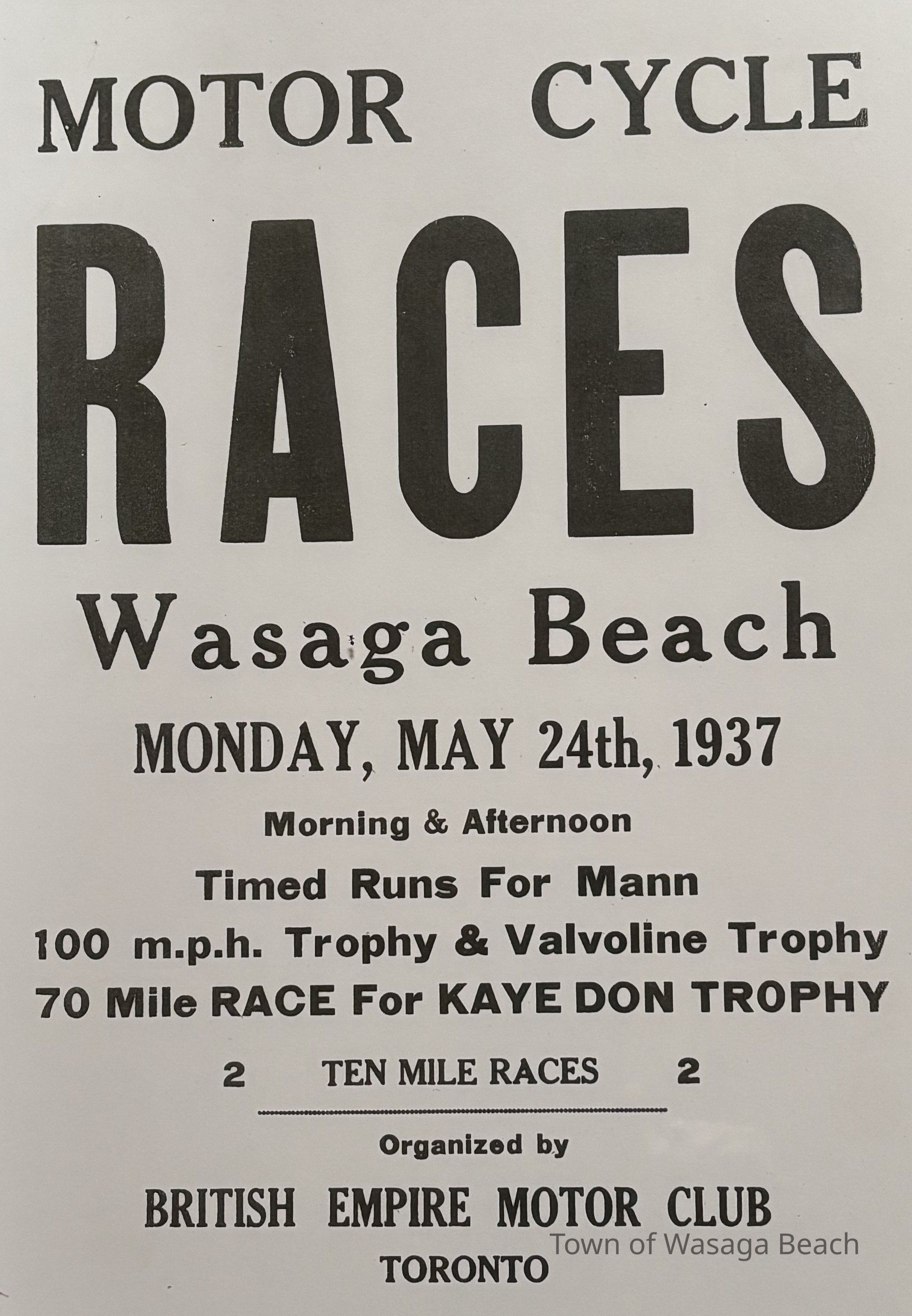 Black and white poster, Motorcycle Races, Wasaga Beach, 1937Context