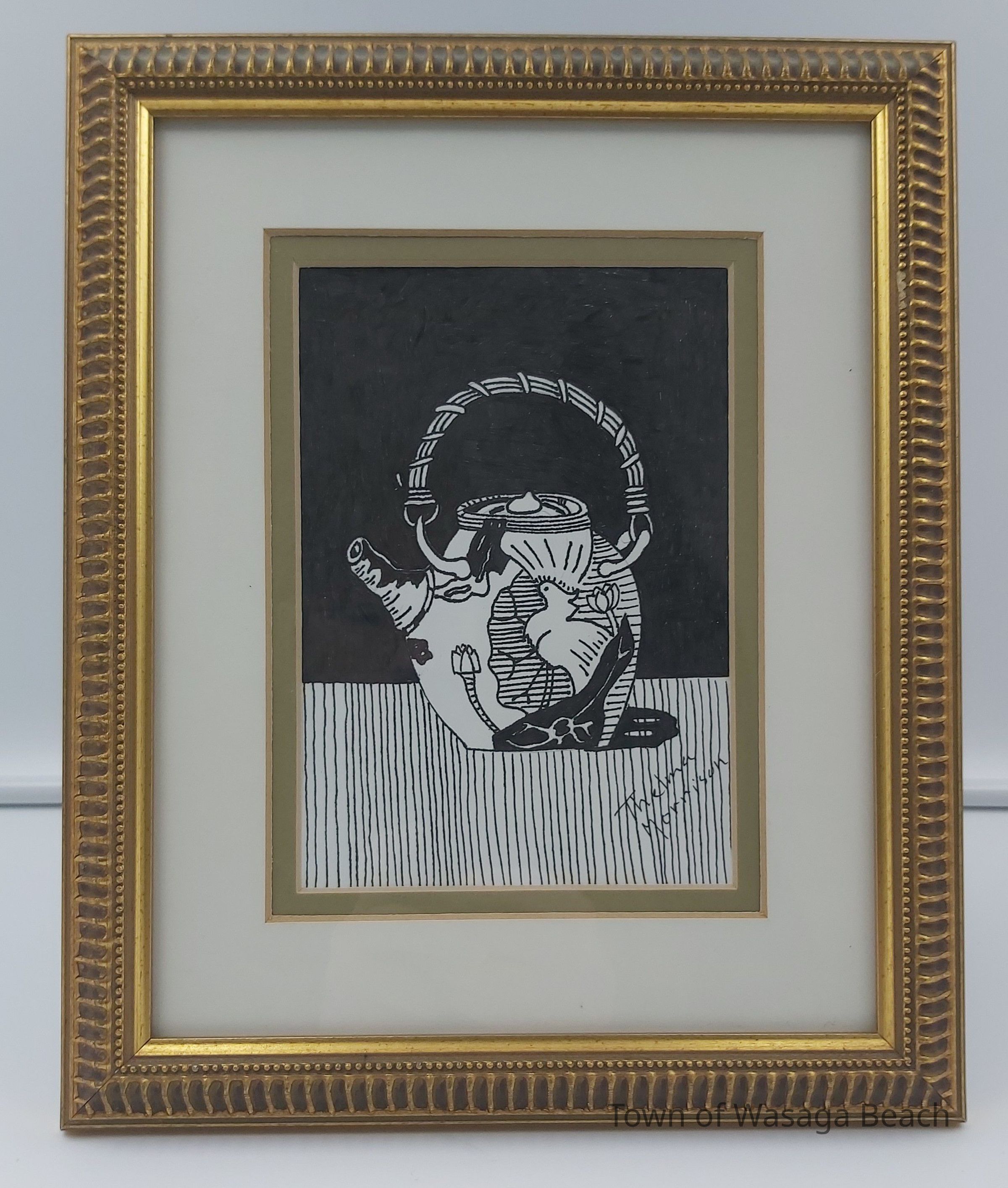 Framed Teapot Sketch by Thelma Morrison, sketched in inkContext