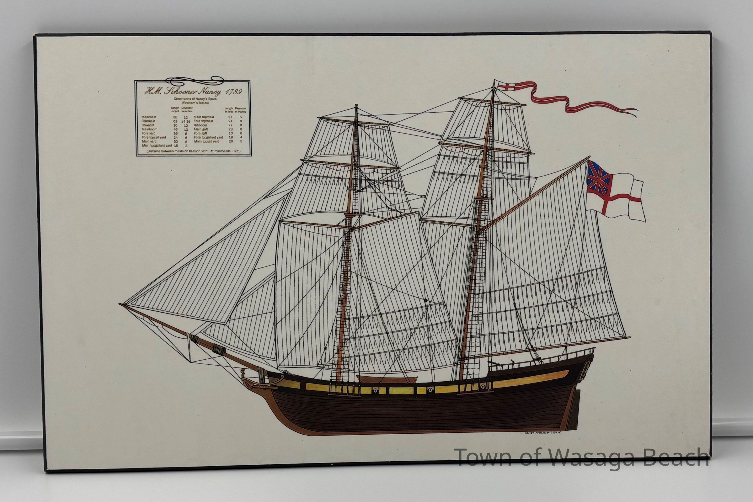 The HMS Nancy was built at Windsor, Ontario in 1789 as a fur-trading vessel. The schooner was first employed for the North West Company. When the Americans declared war on Britain and the War of 1812 began, the British Navy requisitioned the vessel for duty. August 14, 1814 was the date it burned and sunk during an attack by the United States Navy in the Nottawasaga River, Wasaga Beach.Acquisition