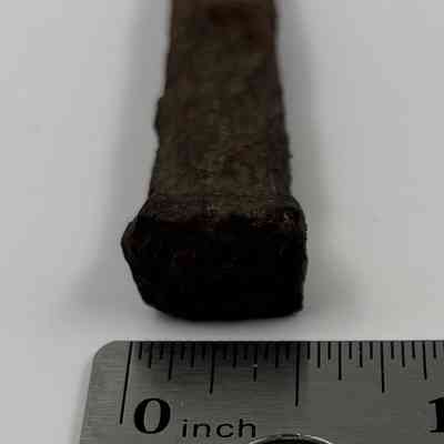 The featured nail with rectangle head and shank is from the 1800-1890 era. The history of the nail and how it came to be in the area is unknown.Acquisition