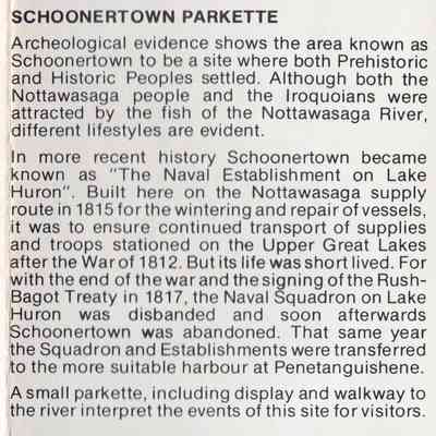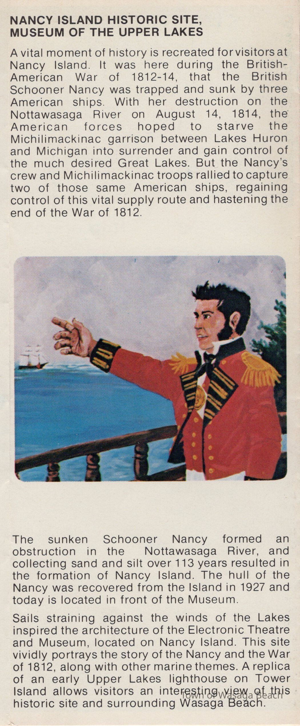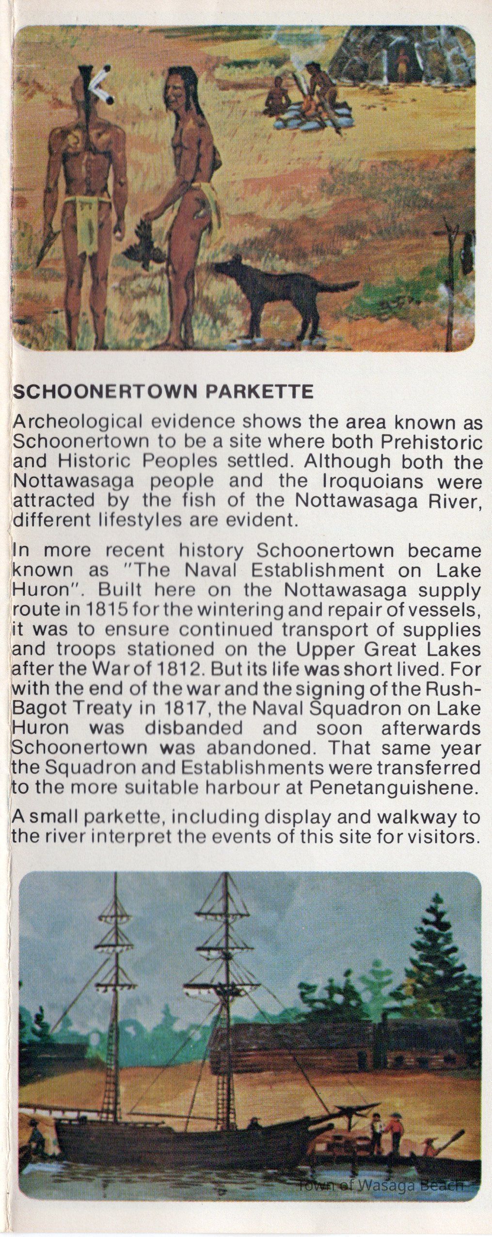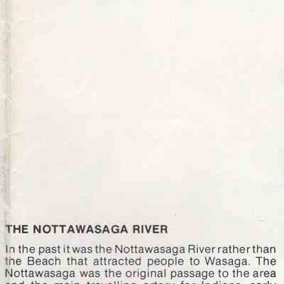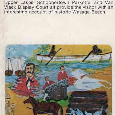 The colour pamphlet begins with an introduction inviting visitors to experience the history of the area by visiting Nancy Island, Museum of the Upper Lakes, Schoonertown Parkette, Van Vlack Display Court, the Nottawasaga River and the resort community. (note that the Van Vlack Display Court is no longer available)Acquisition