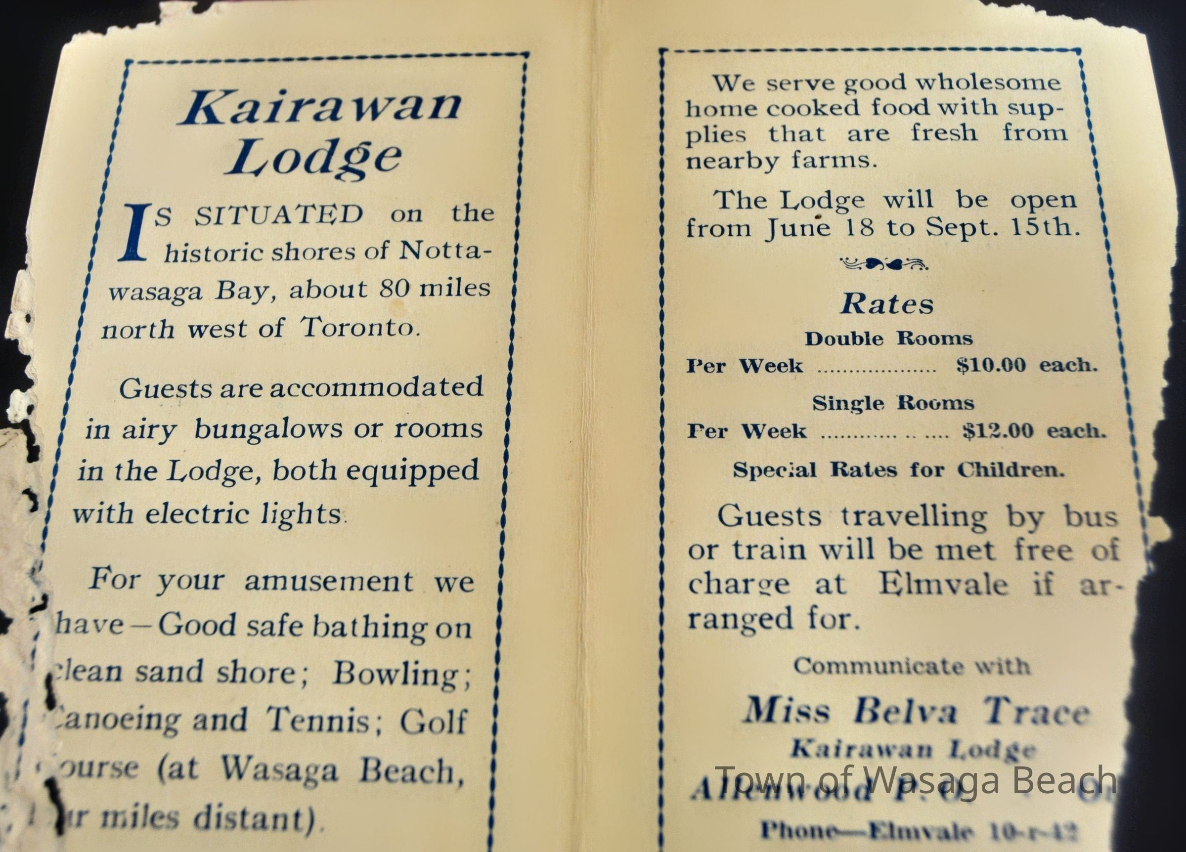 Pamphlet for Kairawan Lodge owned by the Trace Family - Milton A.Trace, ProprietorAcquisition