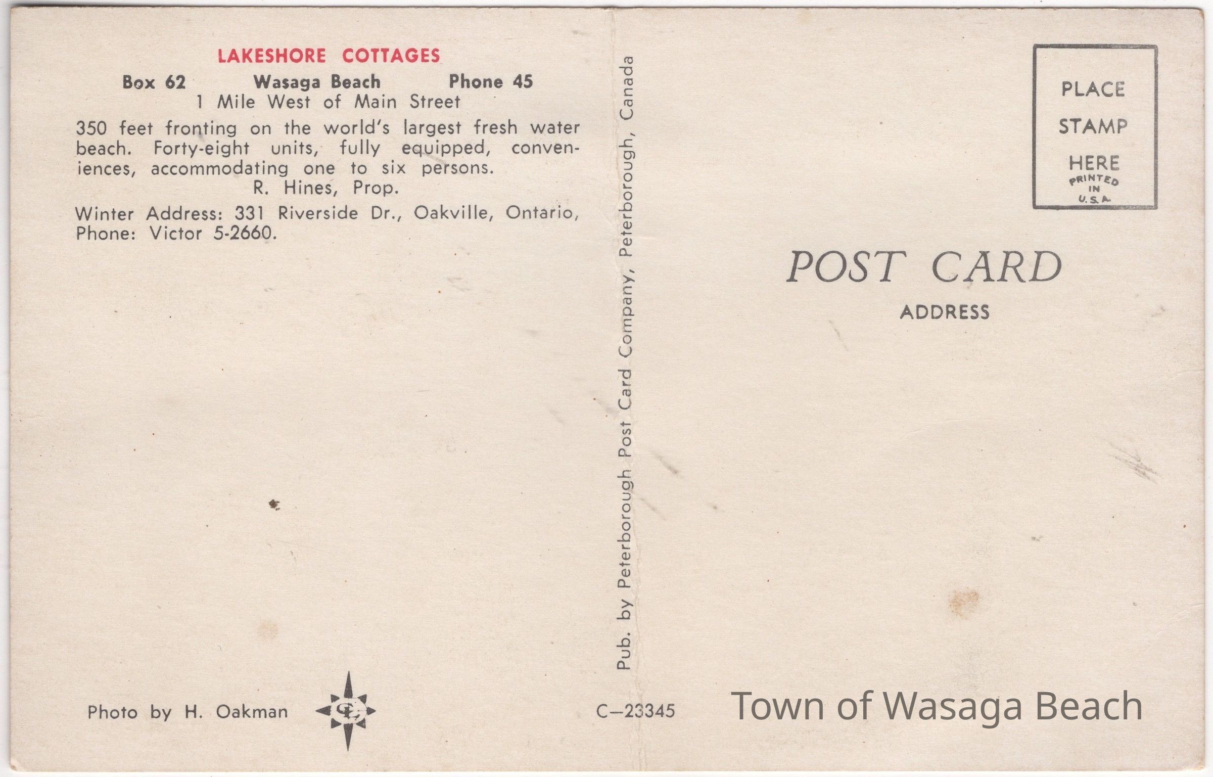 From information gathered, it is thought that Lakeshore Cabins were originally built on Lake Nipissing not far from Callander, Ontario. The cabins were built to help accommodate the crowds that came to that area to observe the Dionne quintuplets who were born in 1934. A gentleman named Harry Forester moved the cabins to Wasaga Beach in the 1940’s, after the crowds had dissipated in Callander. Bob and Molly Hines owned Lakeshore Cabins and Cottages after the Forester’s until they sold to the Department of Lands and Forests, now known as the Ministry of Natural Resources. Alan Edwards’ parents, Ella and Neil Edwards, and grandparents, Jean and Reford Whiteside, lived immediately south of Lakeshore Cabins. Their property is now identified as 420 and 424 Mosley Street. Just west of 424 Mosley Street, there is an open lot which was once the entrance to Lakeshore Cabins. Some time in the 1970’s, the land adjacent to Mosley Street was severed off and sold. A Catholic Church was constructed and operated for a few years. The church was removed, and the land was then vacant. A major file occurred in 1967 which destroyed the main building and many of the Lakeshore Cabins/Cottages. Reford Whiteside purchased one of the cabins that was not badly damaged and used it for storage. The storage cabin was still there when Ella Edwards sold the property in 2017 but is not there now.Acquisition