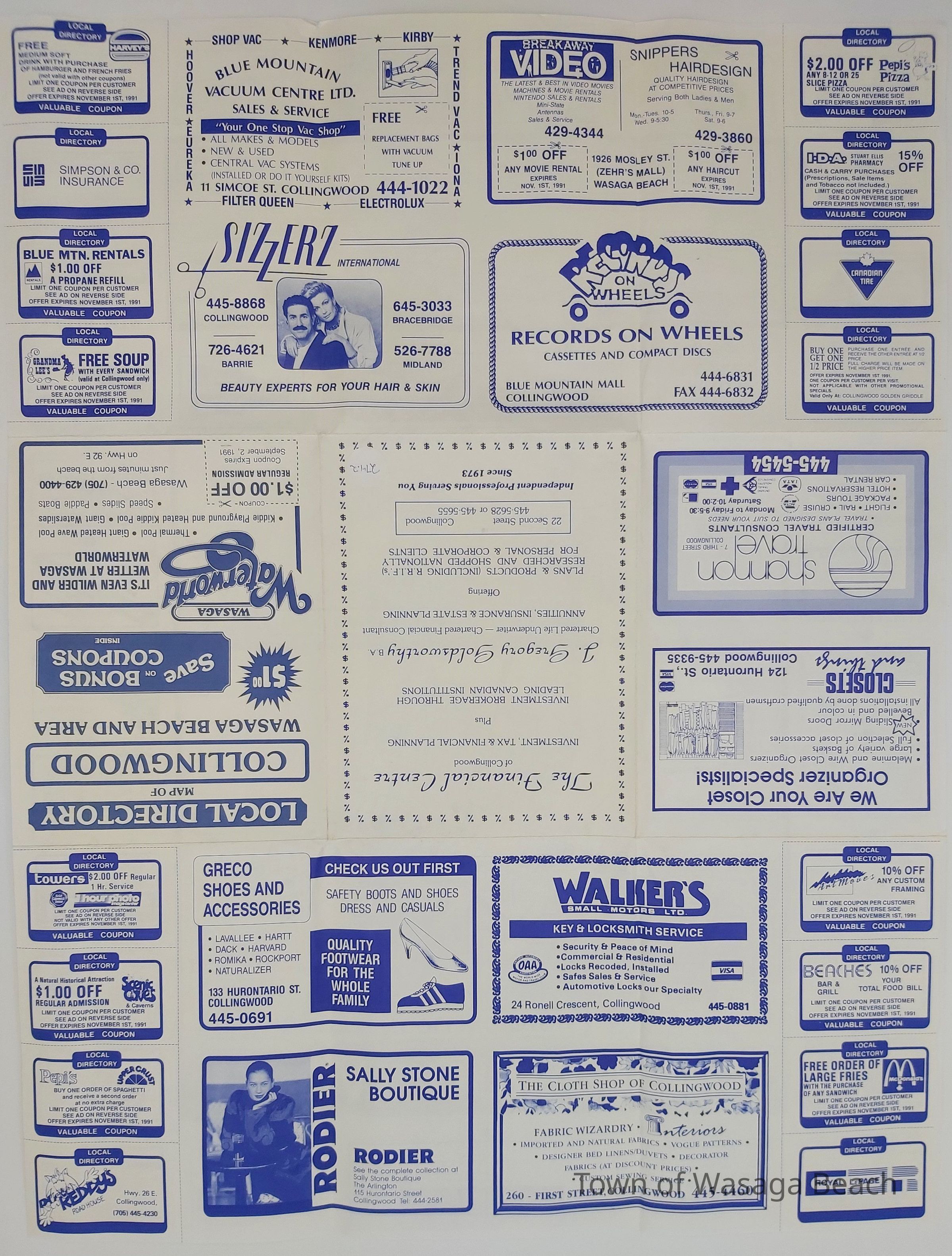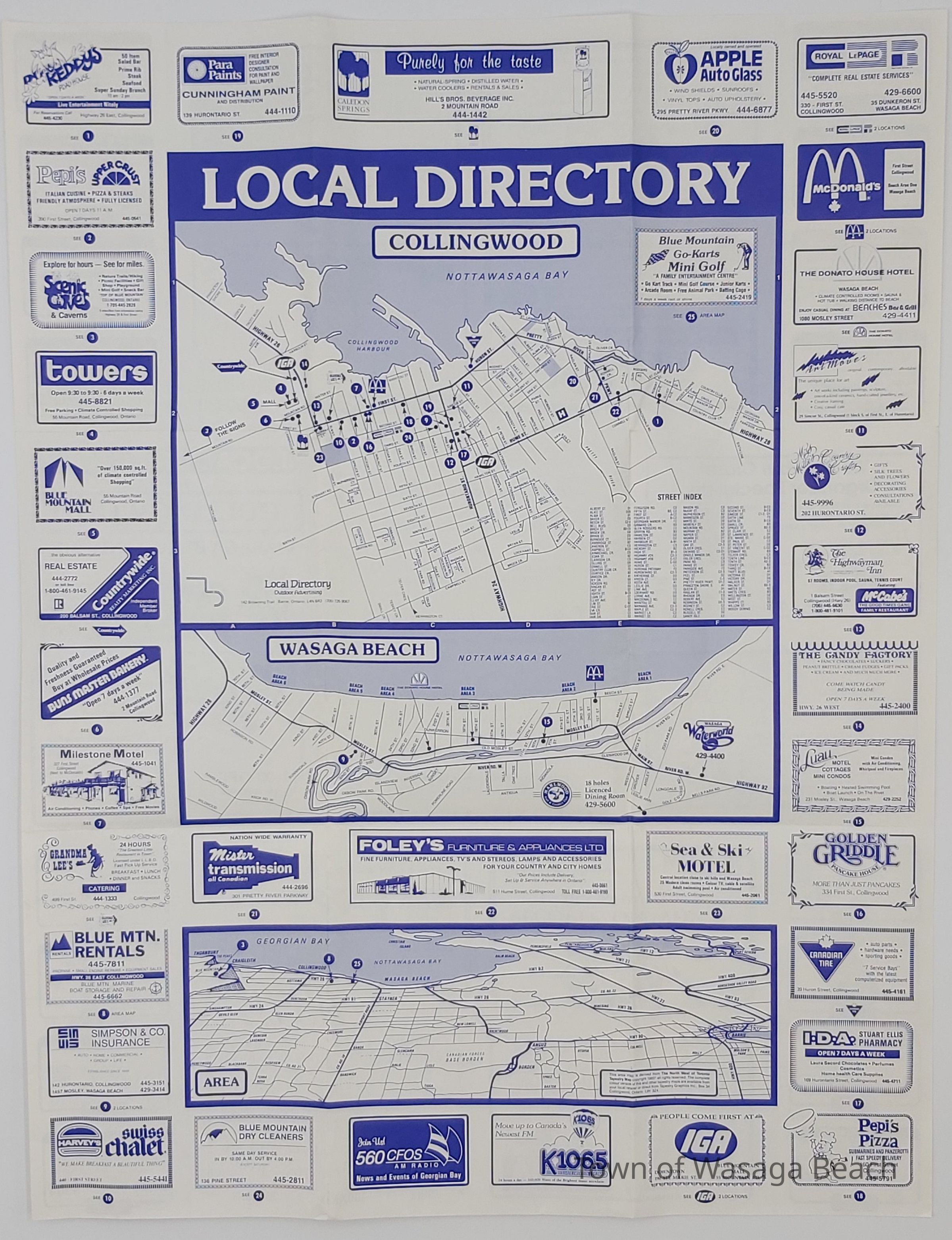 Local directory and map of Collingwood and Wasaga Beach Area with business listings and $1 couponAcquisition