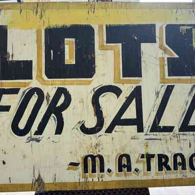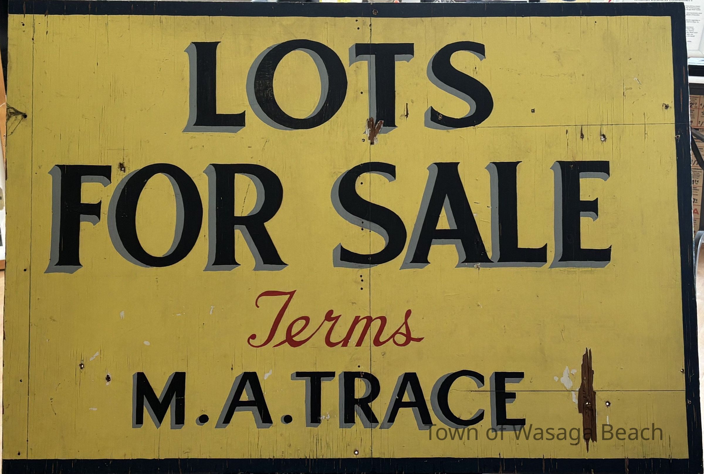 Painted sign that reads: "LOTS FOR SALE" Terms M.A.TRACE, circa 1960