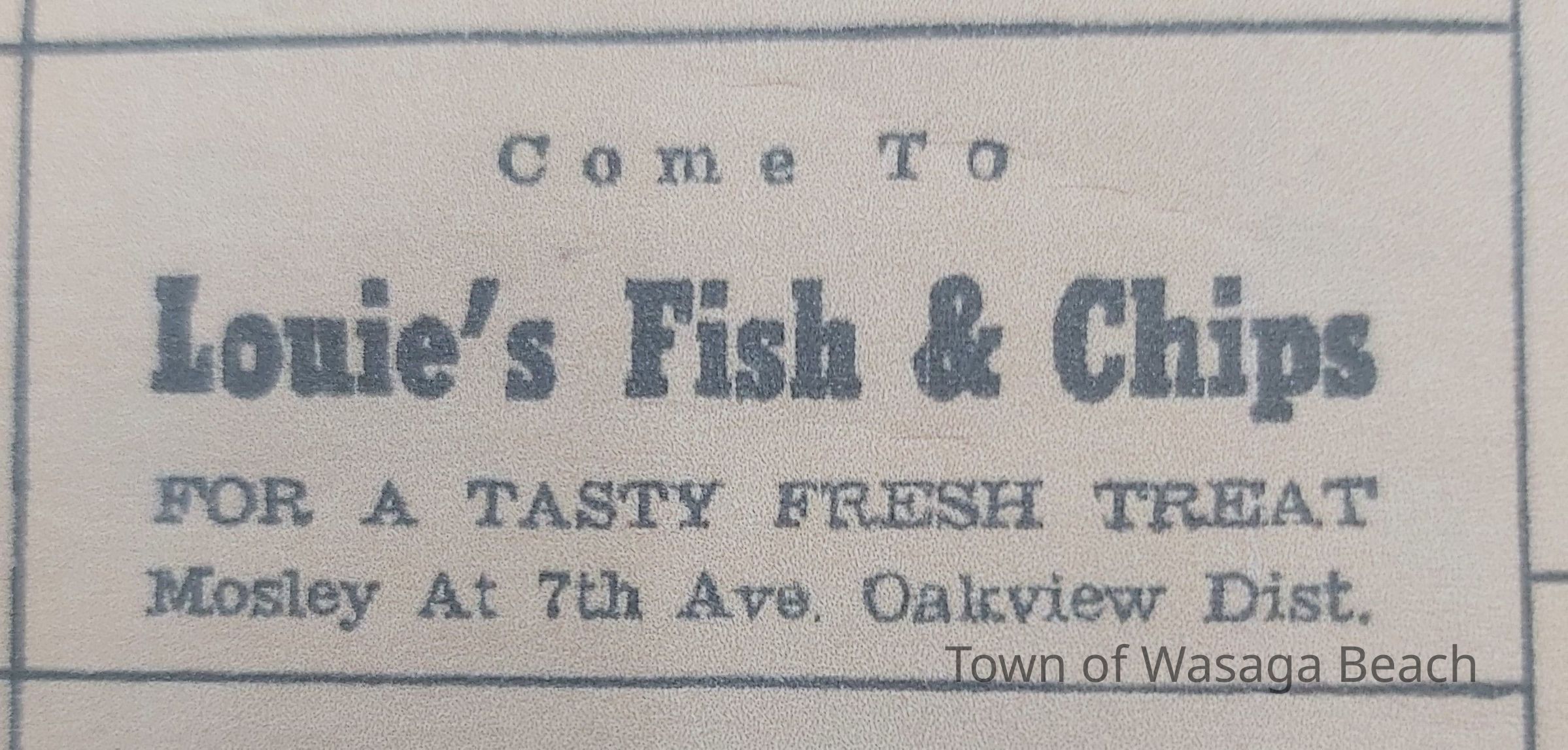 Louie's was located at Mosley and 7th Avenue. The location can be seen on a 1952 Chamber of Commerce Town map. From information at the Archives, records show active business licenses for Louie's Fish & Chips registered by Mr. L. Garback from 1969 to 1974 and registered by E.A. Garback 1974 to 1976.Acquisition