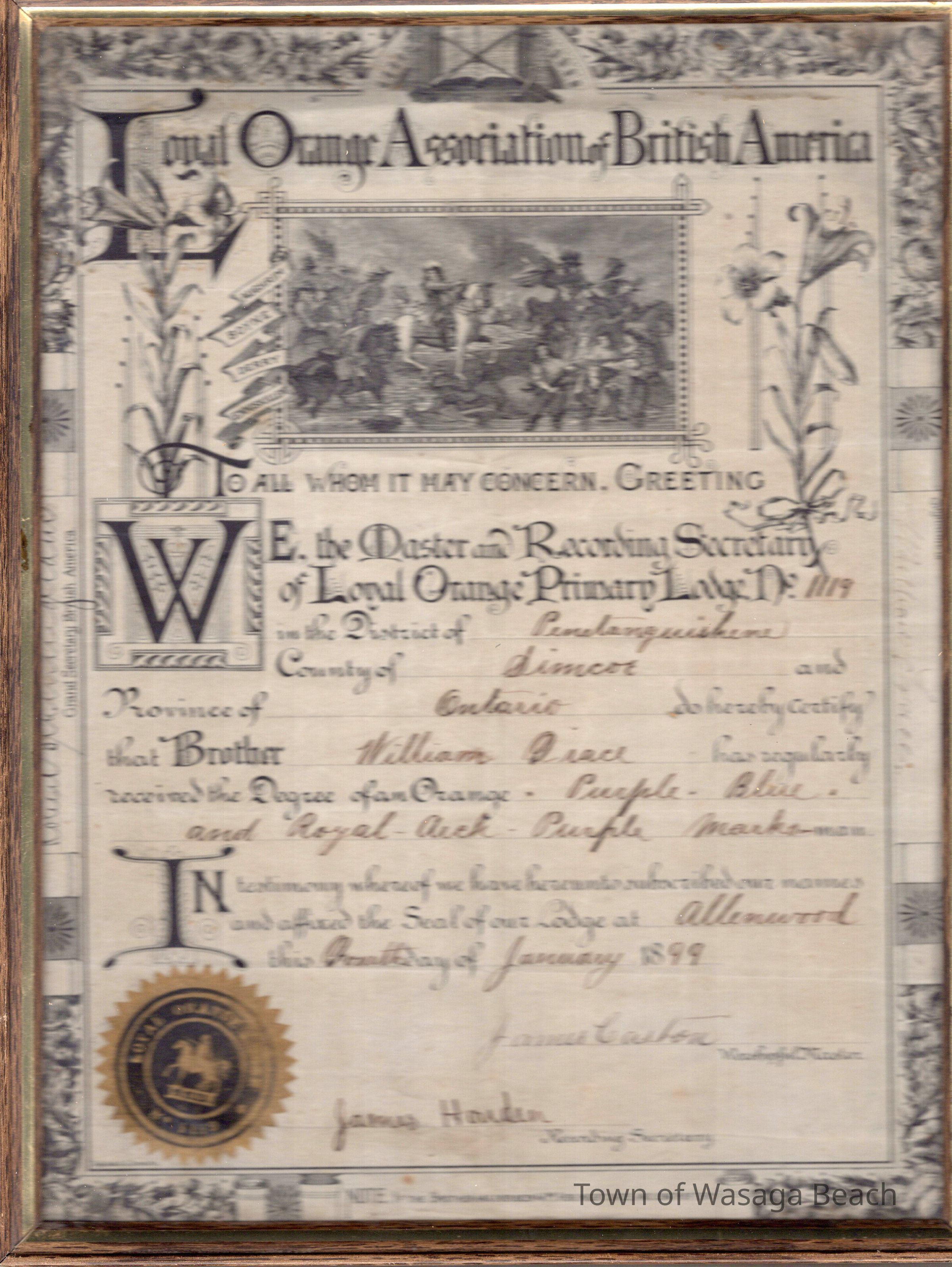 Certificate of Membership of William A. Trace in Loyal Orange Lodge at AllenwoodAcquisition
