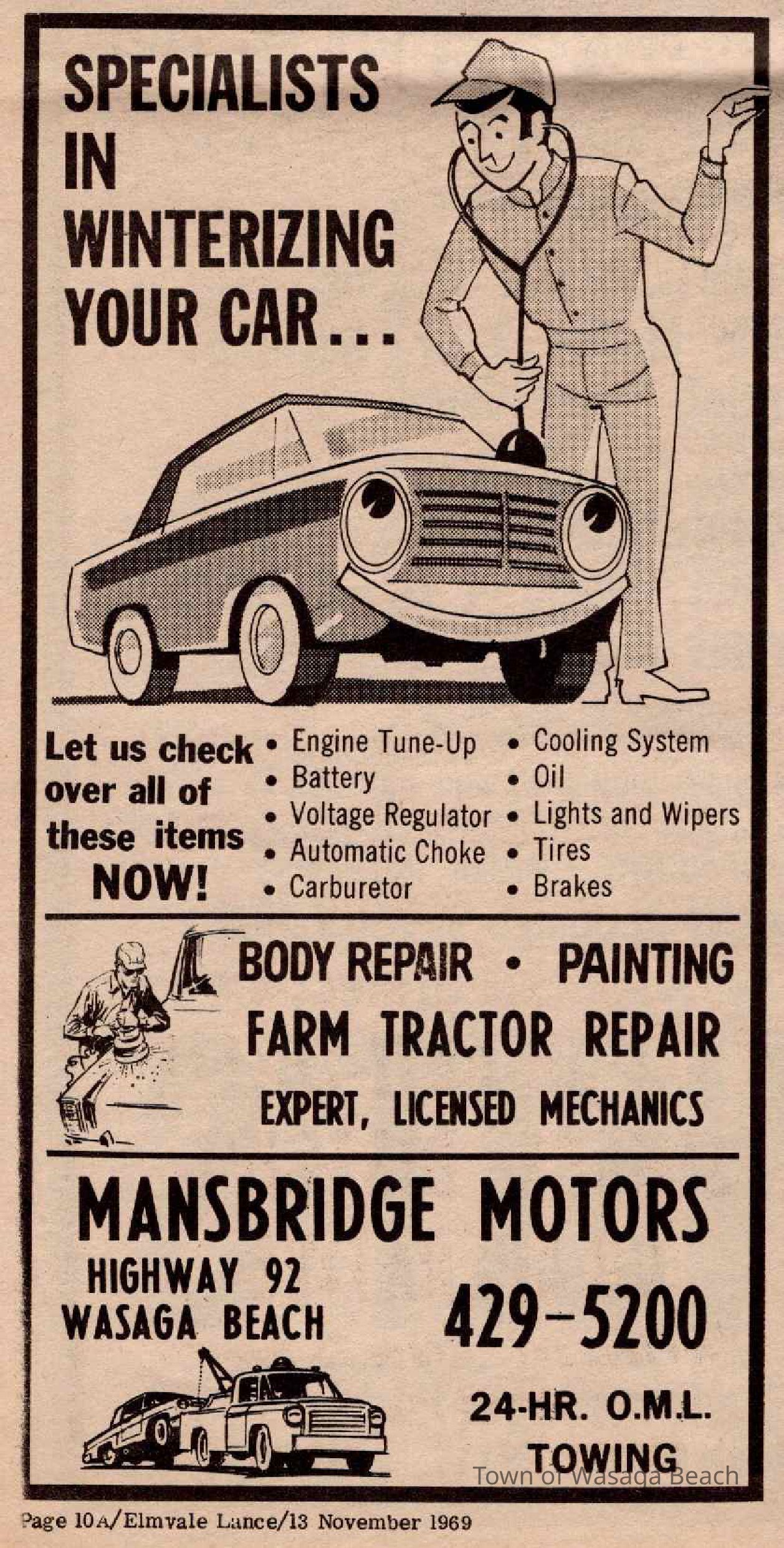 Mansbridge Motors, Newspaper Advertisement, Elmvale Lance, November 13, 1969