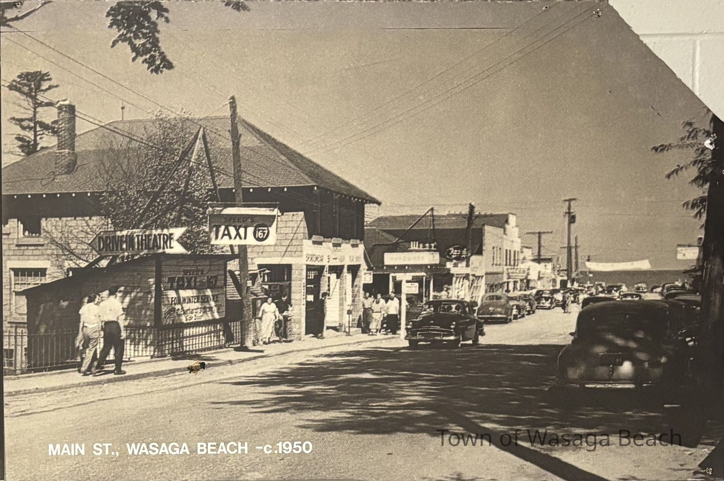 The photo shows Martin Highway, circa 1930, later known as Highway 92 and eventually Main Street. Main Street extended from the Main Street Bridge north west to the beachfront. Businesses were located on both sides of Main Street. Vehicles parked on both sides of the street and drove along Main Street onto the beachfront until 1973 when cars were no longer allowed to drive on the beach. Main Street then became a walking promenade and road access to Beach Drive (the beachfront) was rerouted slightly west behind the Main Street buildings to what is now known as Spruce Street.Acquisition
