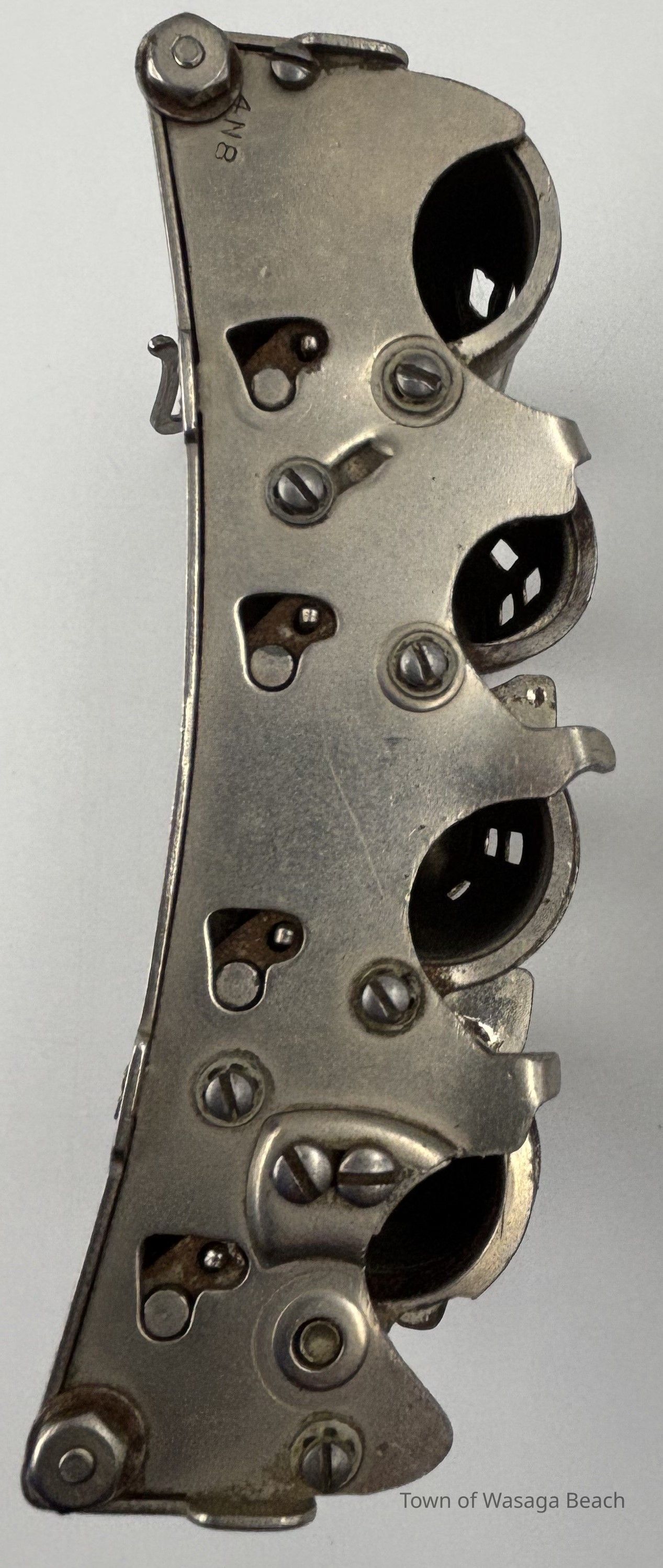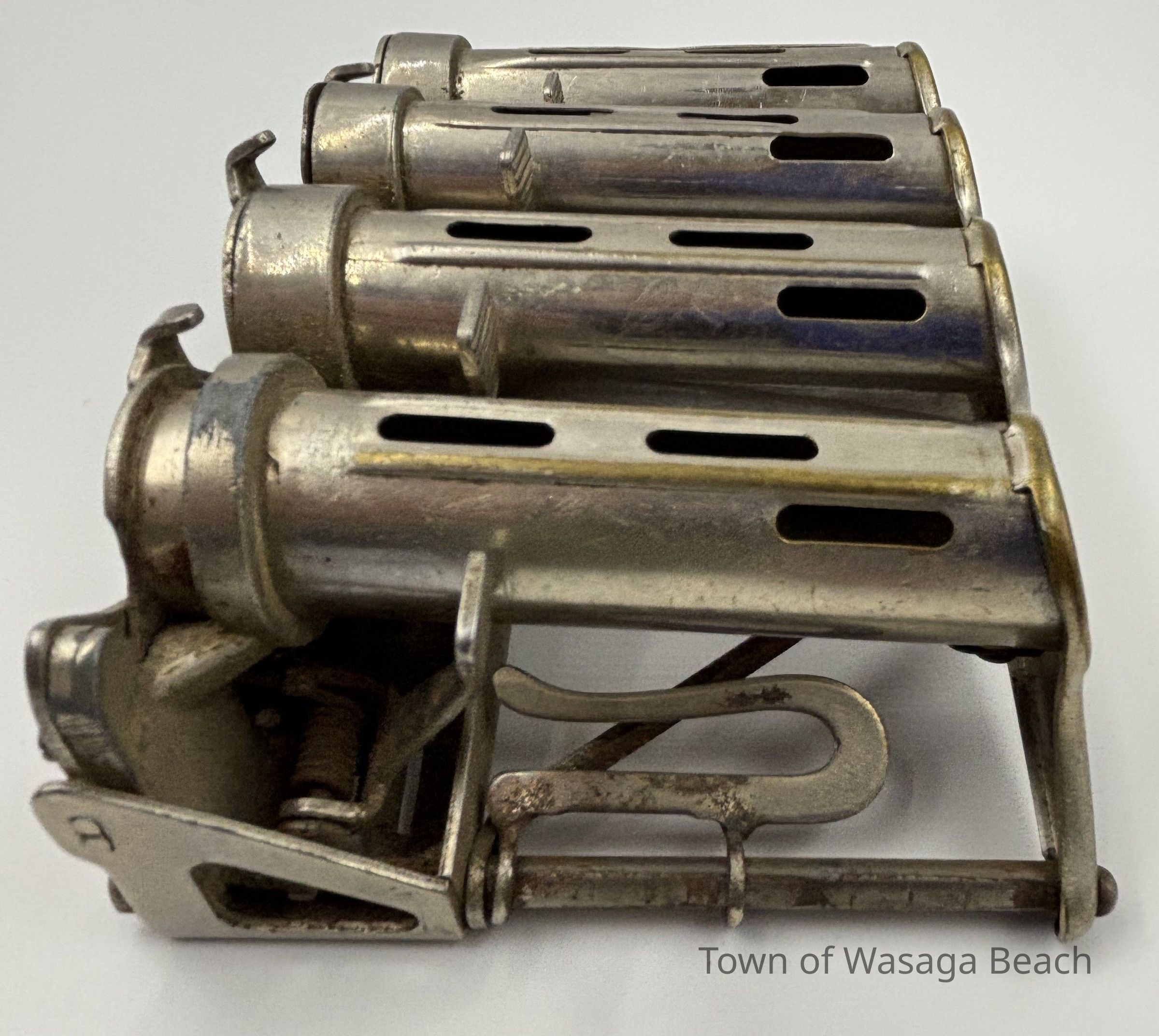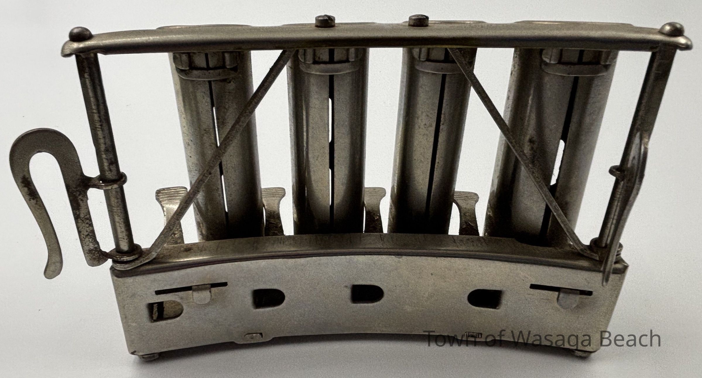 The metal coin changer was manufactured by McGill Manufacturing Company and was distributed by J.L. Galef & Co., New York. The featured coin changer was used by the Eberhardt family to dispense change when delivering ice to area residents and visitors prior to the use of refrigerators.