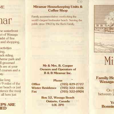 Miramar Motel, Wasaga Beach, Pamphlet, 2001Entry/Object ID