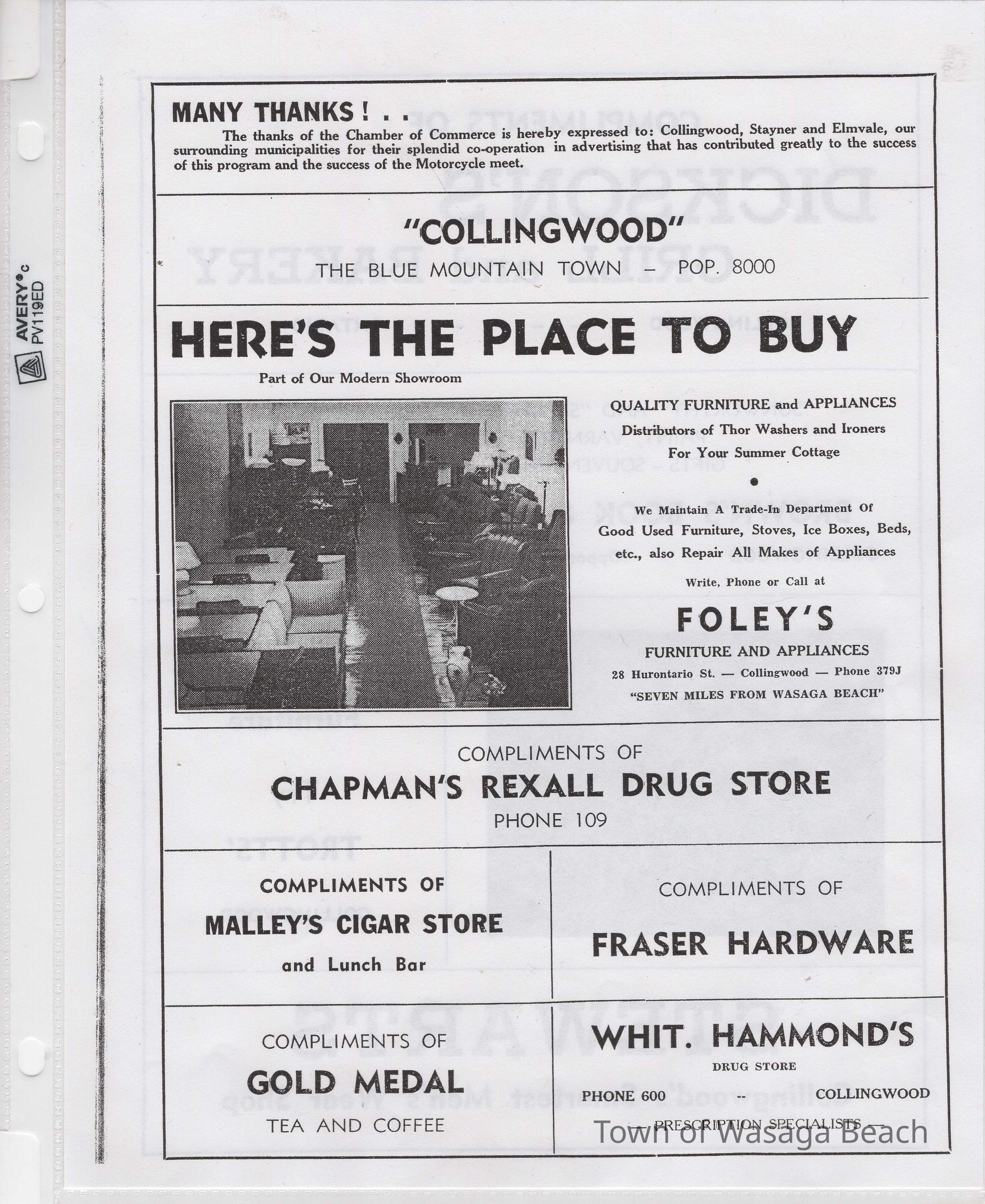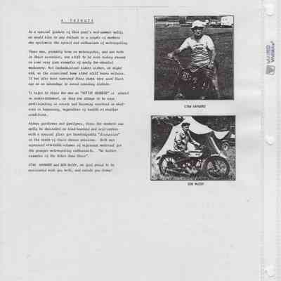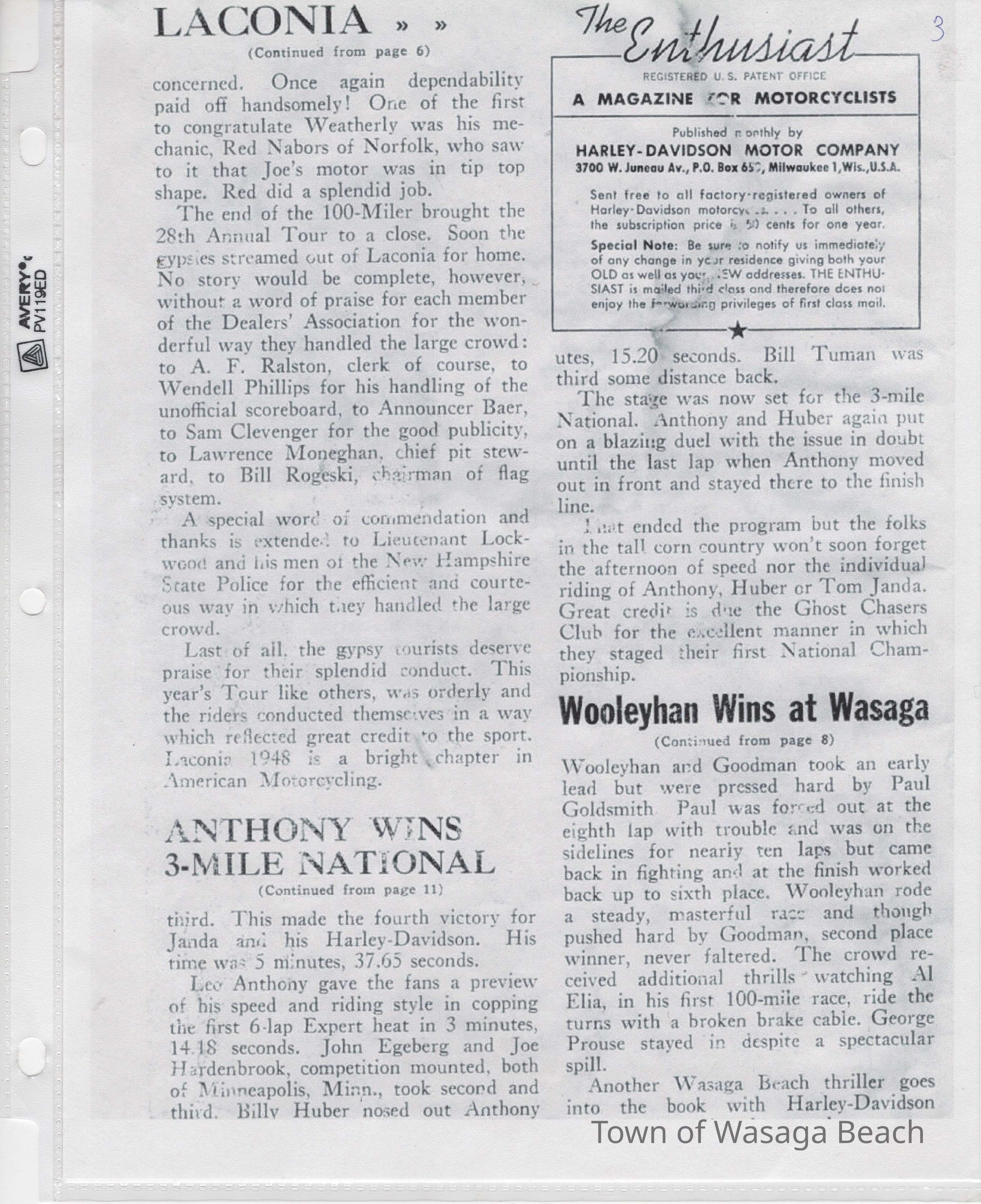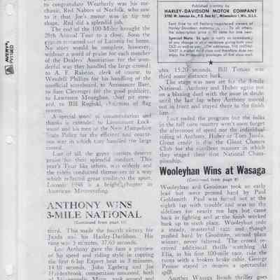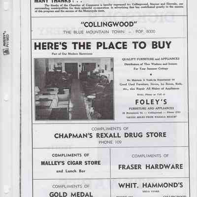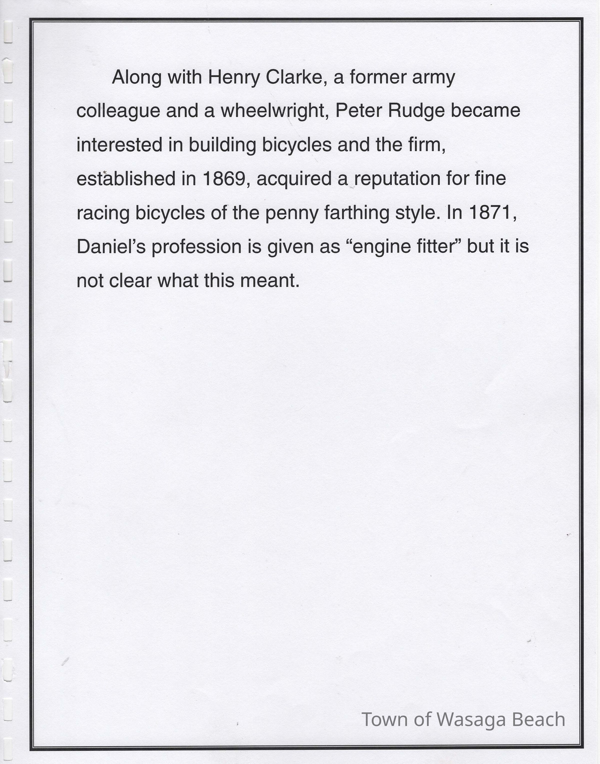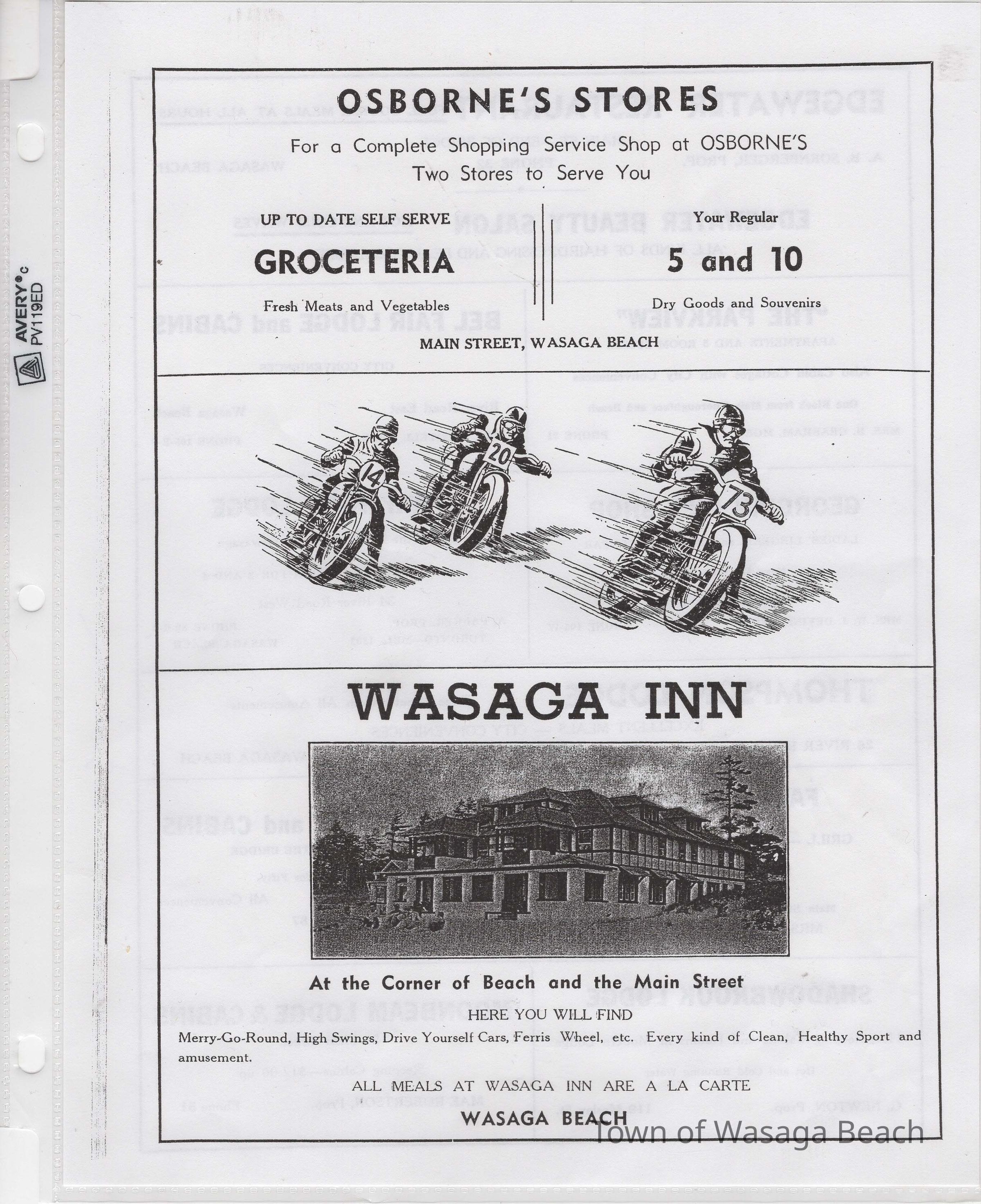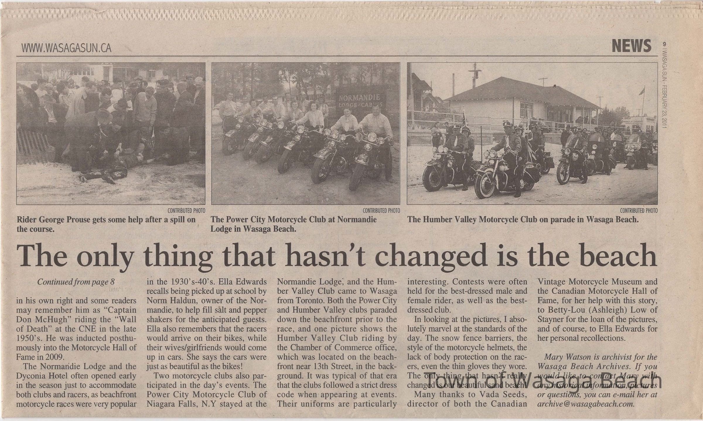 In 2014, the Town of Wasaga Beach purchased a rare vintage 1935 Rudge Ulster motorcycle that was originally owned and raced along the beach by Bob McCoy in 1937, reaching a speed of 89mph. Bob McCoy and the history of the Rudge motorcycle are featured in the album including various newspaper articles and a program from the "100 Mile "MAPLE LEAF CHAMPIONSHIP BEACH-ROAD RACE" held Saturday, June 14, 1947 including a welcome from the Executive of the Chamber of Commerce.