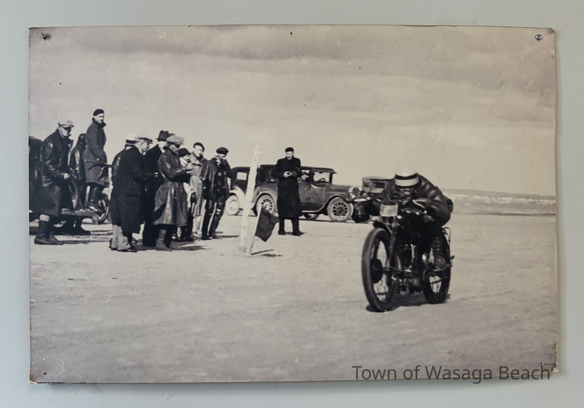 During the 1930’s, the beachfront was used for motorcycle races. Racers in Europe & US had been using sand beaches for motorcycle races and the British Empire Motorcycle Club found Wasaga Beach to be a perfect Canadian destination for races. The first race was held on the beachfront on October 24, 1935 starting with ¼ mile sprints. A planned 100 mile race was shortened to 60 miles due to inclement weather. 2000 spectators were in attendance. The next year, to avoid adverse weather conditions, the races were moved from Thanksgiving to Victoria Day weekend. Spectators in attendance increased to 10,000 by 1937. The courses ran from the east end of Beach Area 1 west to about 13th street. Bales of hay and snow fence were used to protect the crowds. The Wasaga Beach races were the biggest events in Canada at the time and drew top American riders. The races continued to run on the beach, with some gaps due to participants’ involvement in WWII, until 1949 when new safety regulations coupled with the cost of liability insurance brought an end to motorcycle racing on the beach. Motorcycle races were then held where Edenvale Airport is now located.