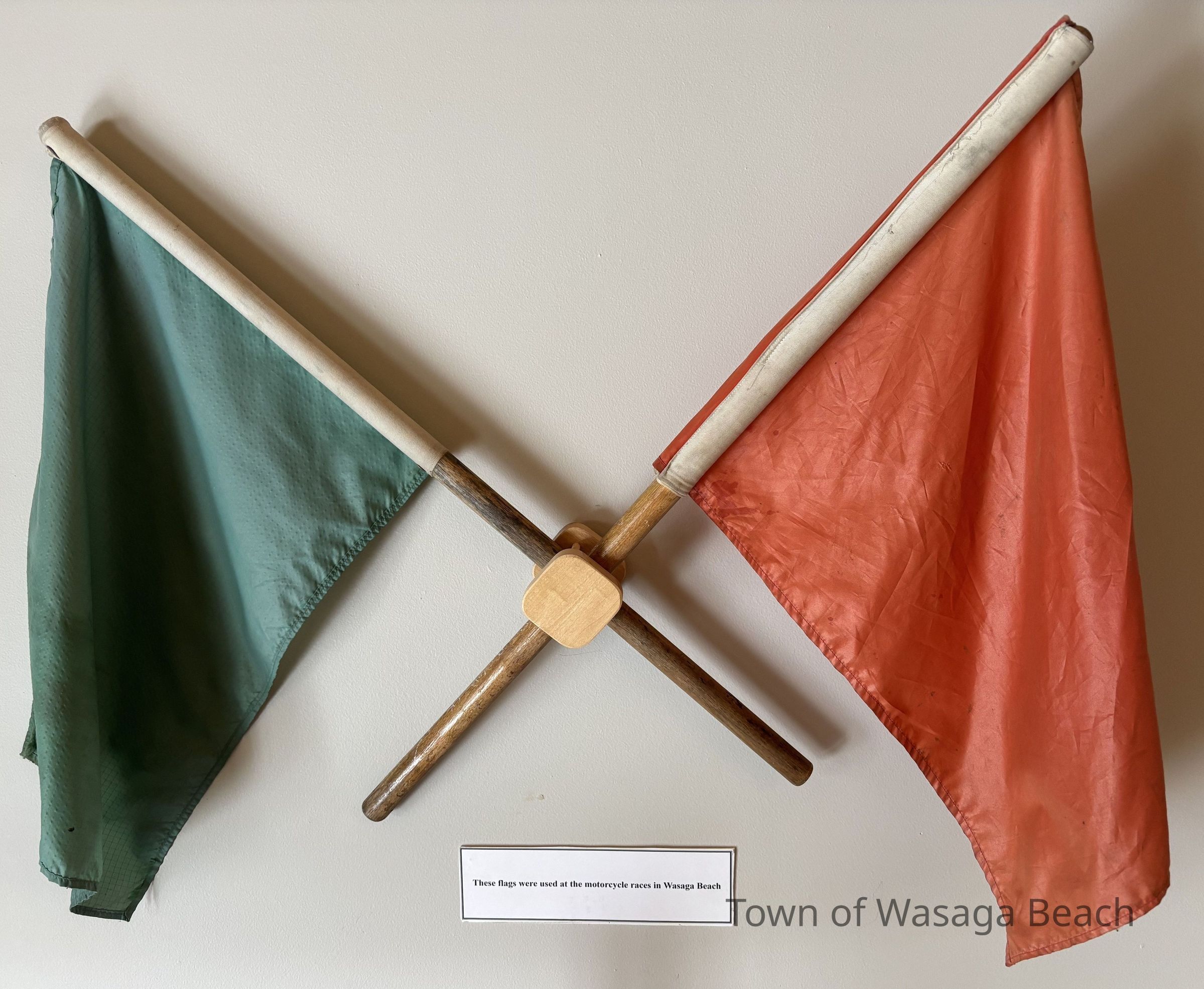 2 flags, one green, one red used for motorcycle races at Wasaga BeachContext
