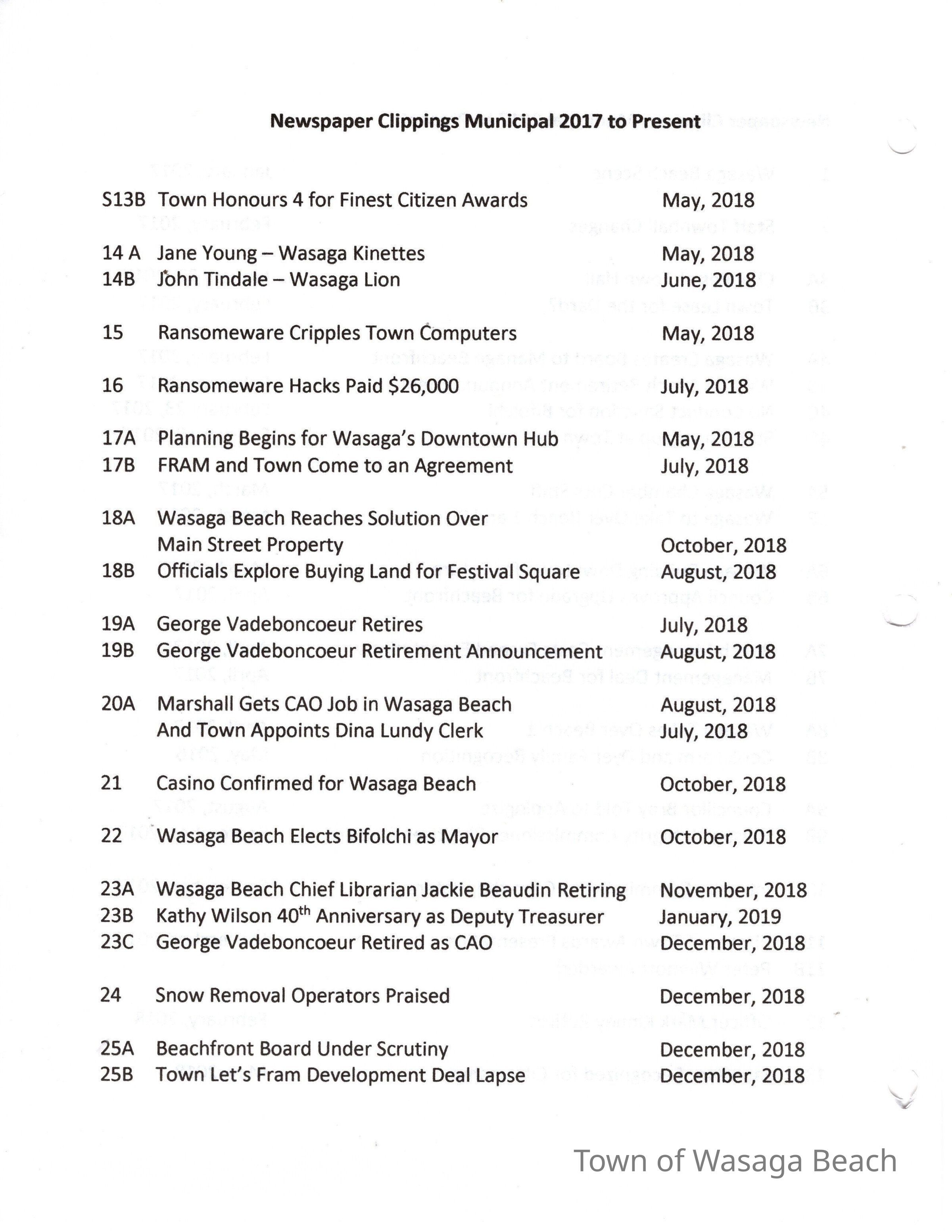 Municipal Newspaper Clippings, 2017-2022, compiled by Archivist, Mary WatsonEntry/Object ID