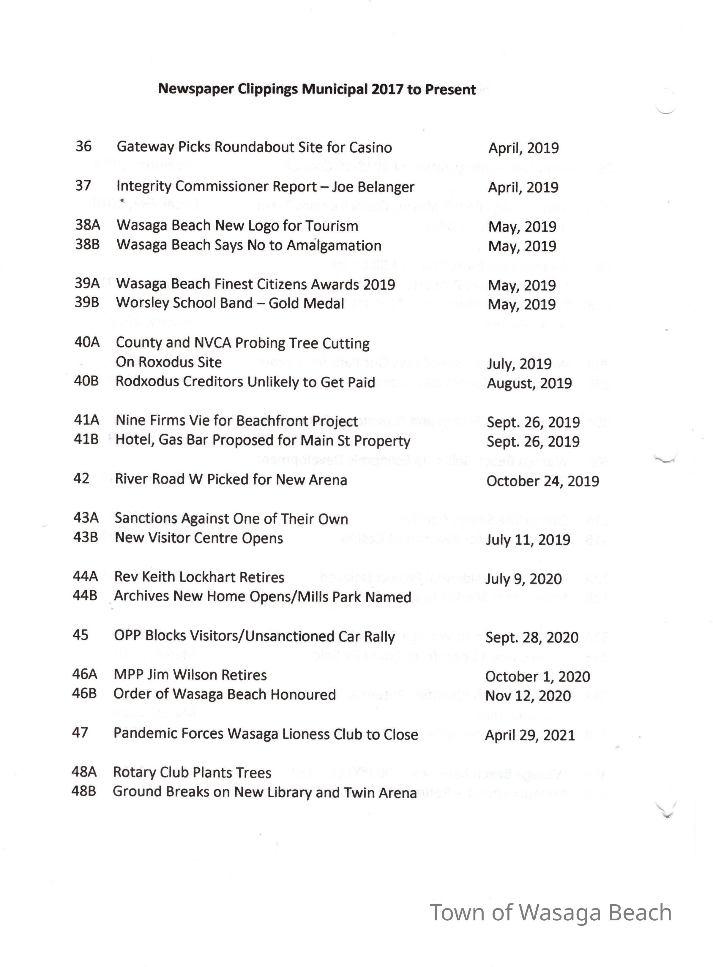 Municipal newspaper clippings, 2017-2022, compiled by Archivist, Mary WatsonAcquisition