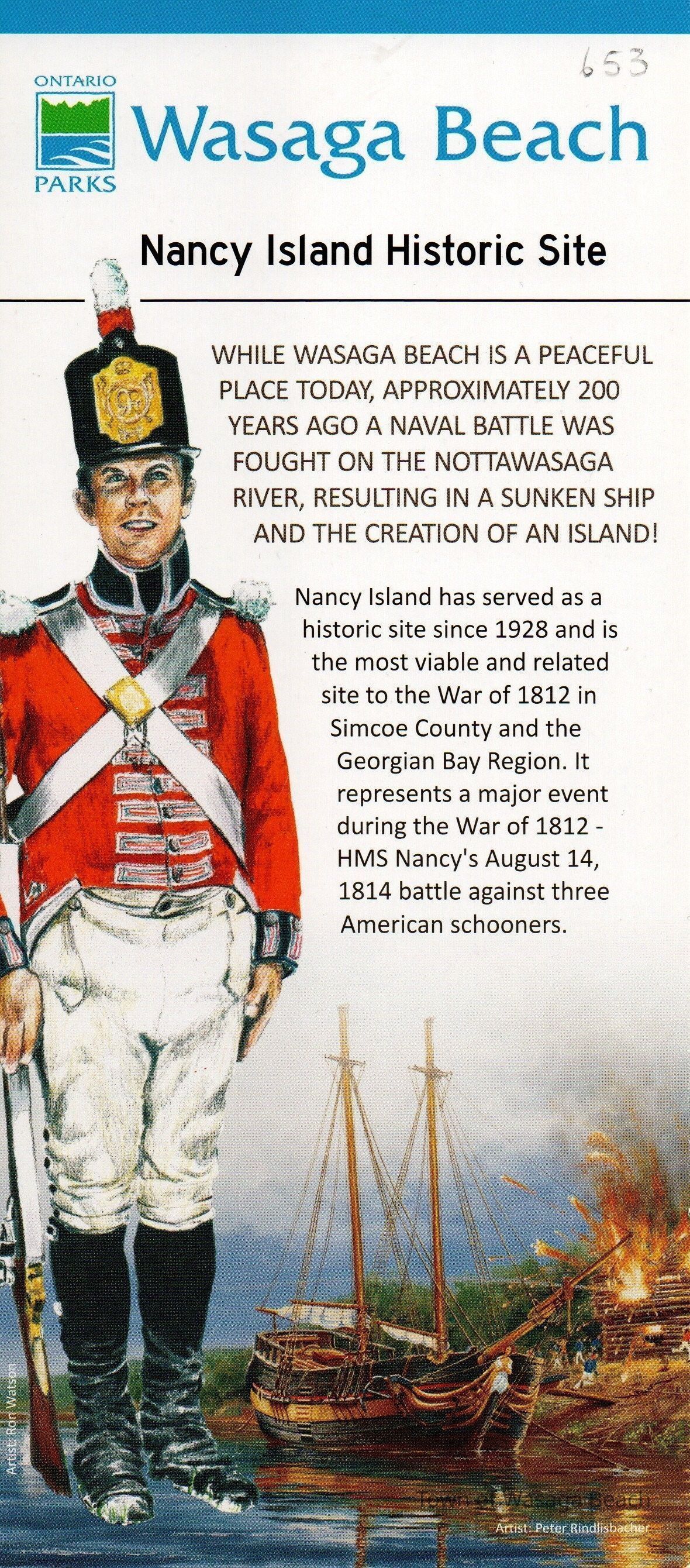 As noted on the flyer: "Nancy Island has served as a historic site since 1928 and is the most viable and related site to the War of 1812 in Simcoe County and the Georgian Bay Region. It represents a major event during the War of 1812 - HMS Nancy's August 14, 1814 battle against three American schooners" when the HMS Nancy sank.