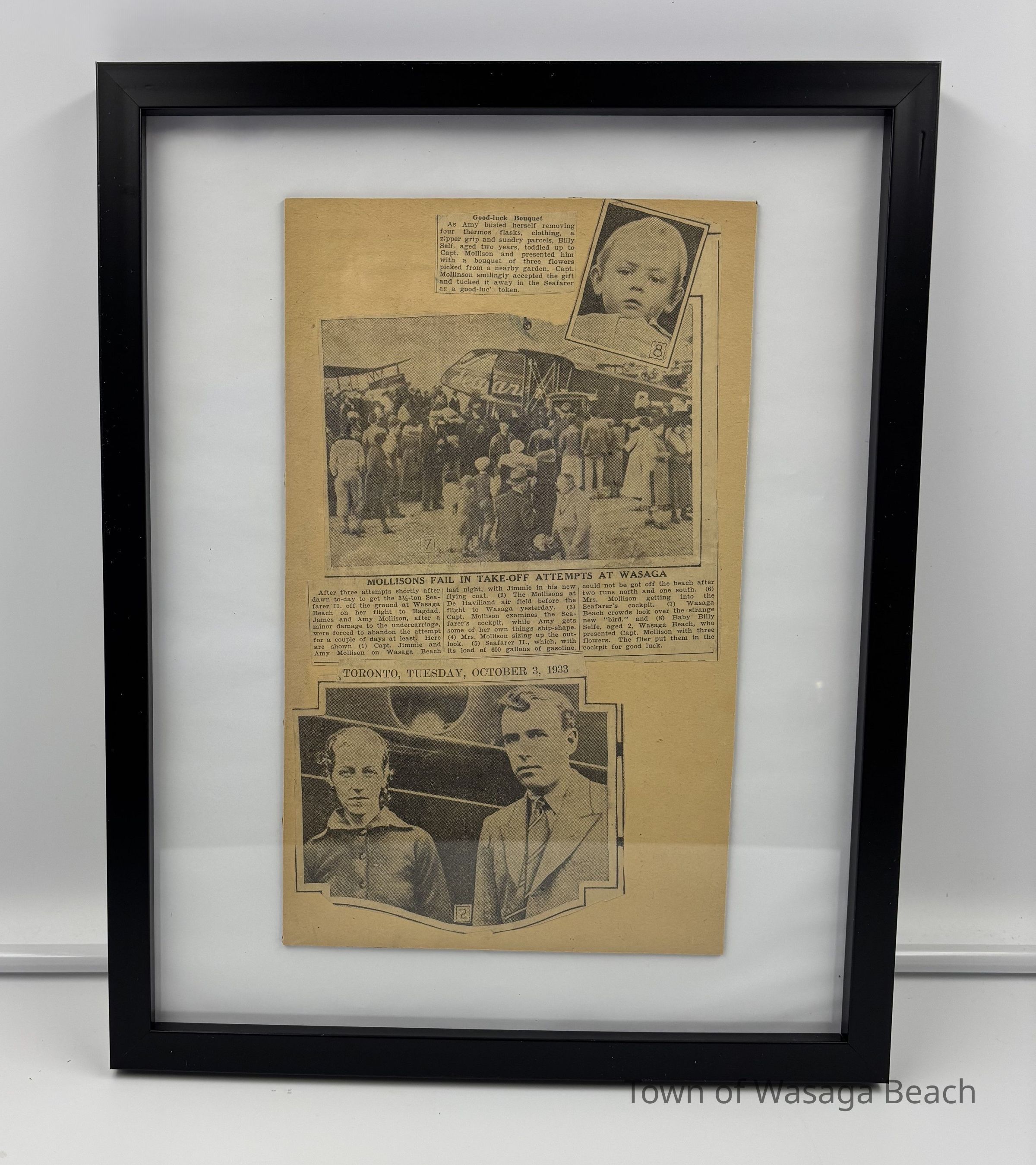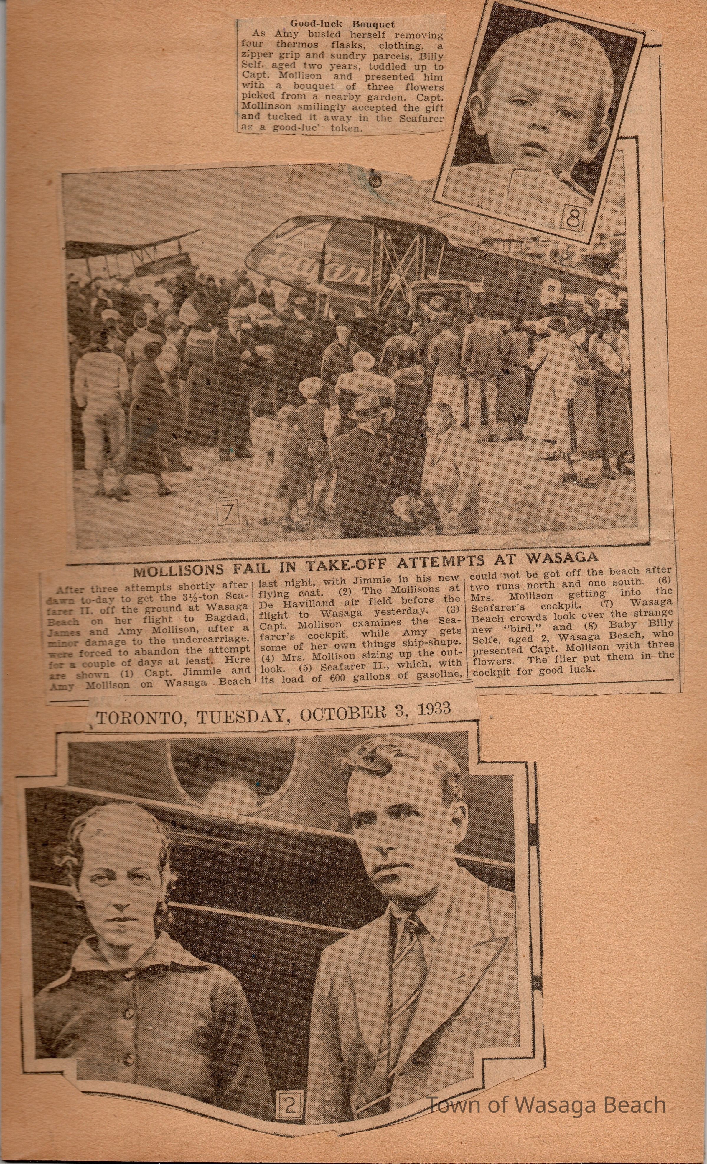 Newspaper Article - Mollisons Fail in Take-Off Attempts at Wasaga - 1933Entry/Object ID