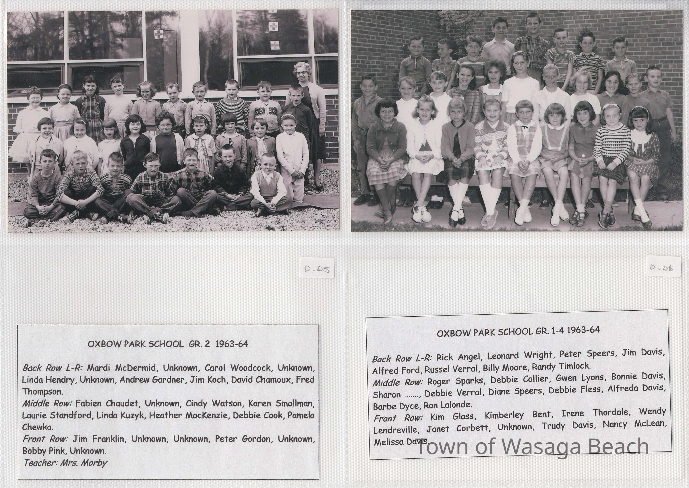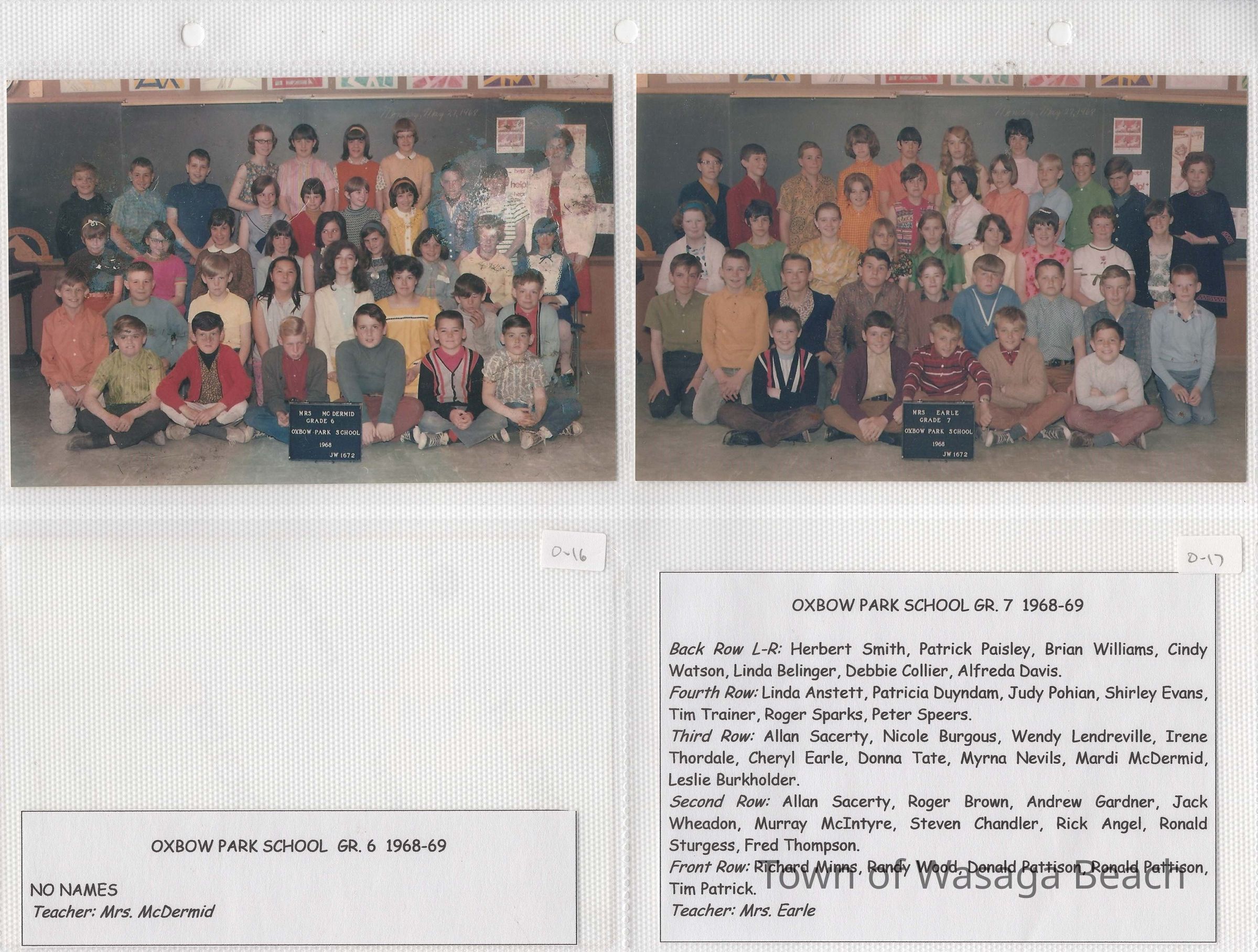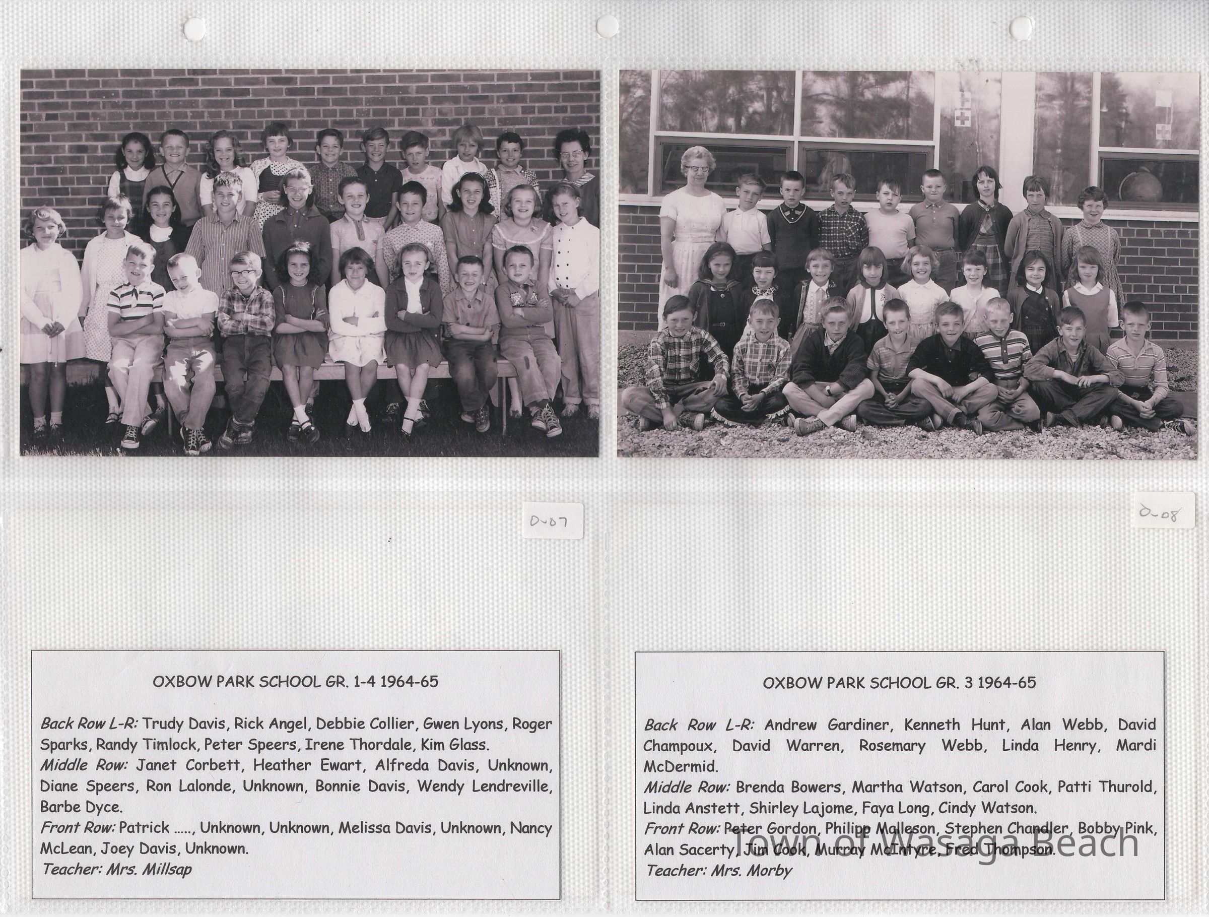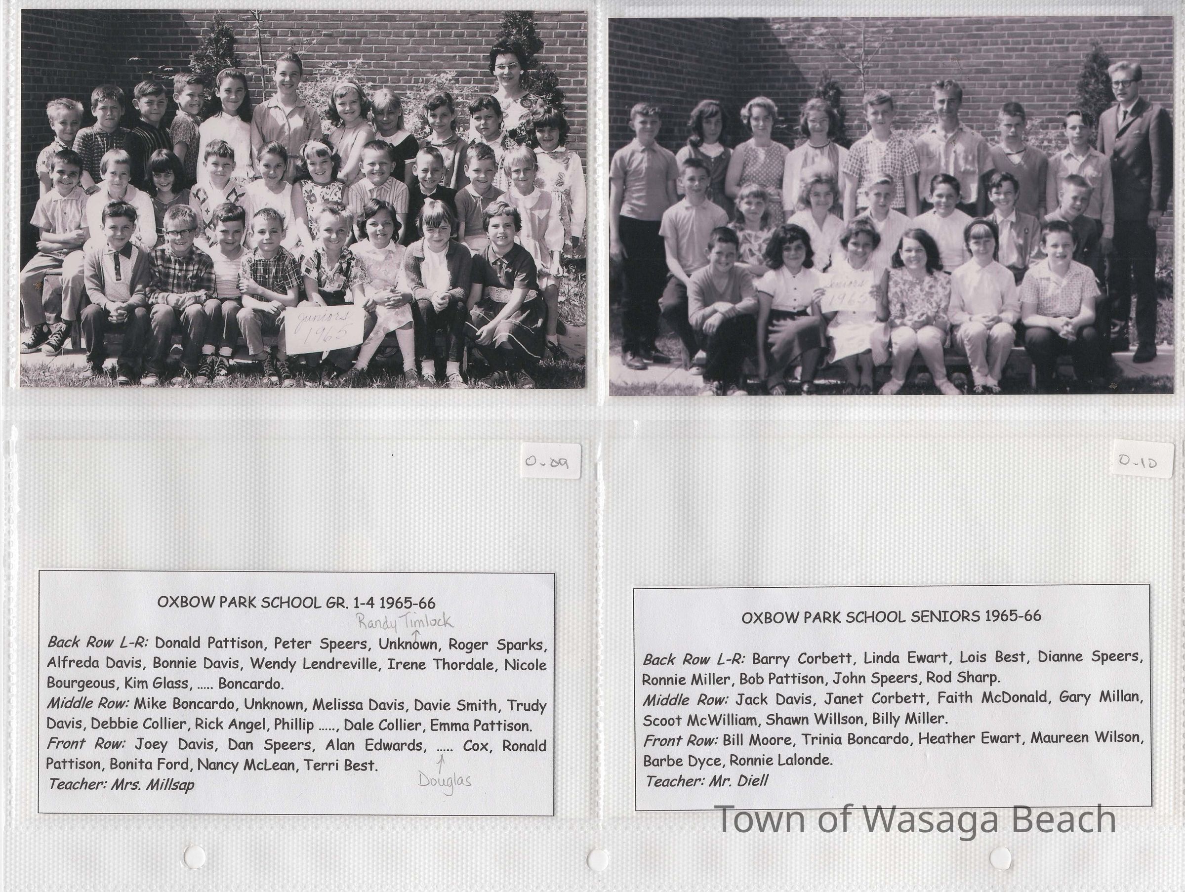 Class photos from Oxbow Park School, 1950's and 1960's and Wasaga Beach School, 1936 to 1971