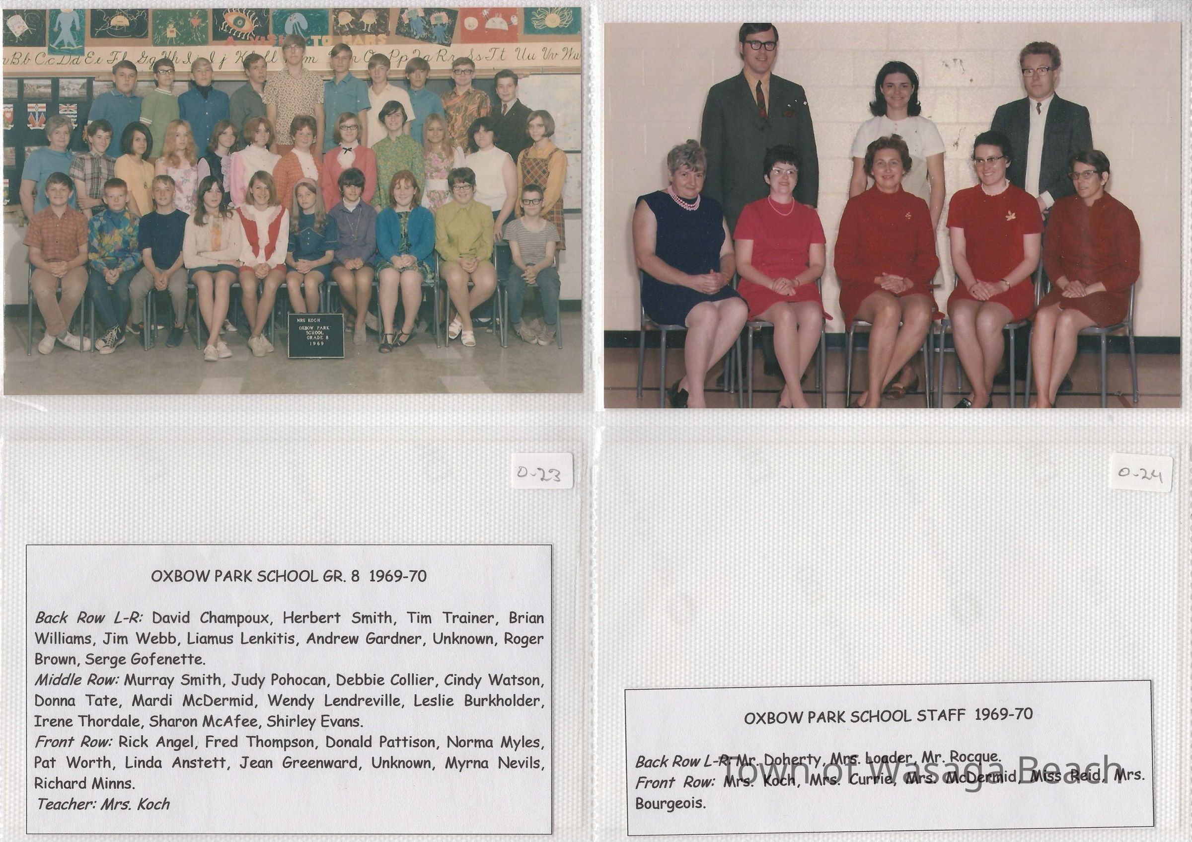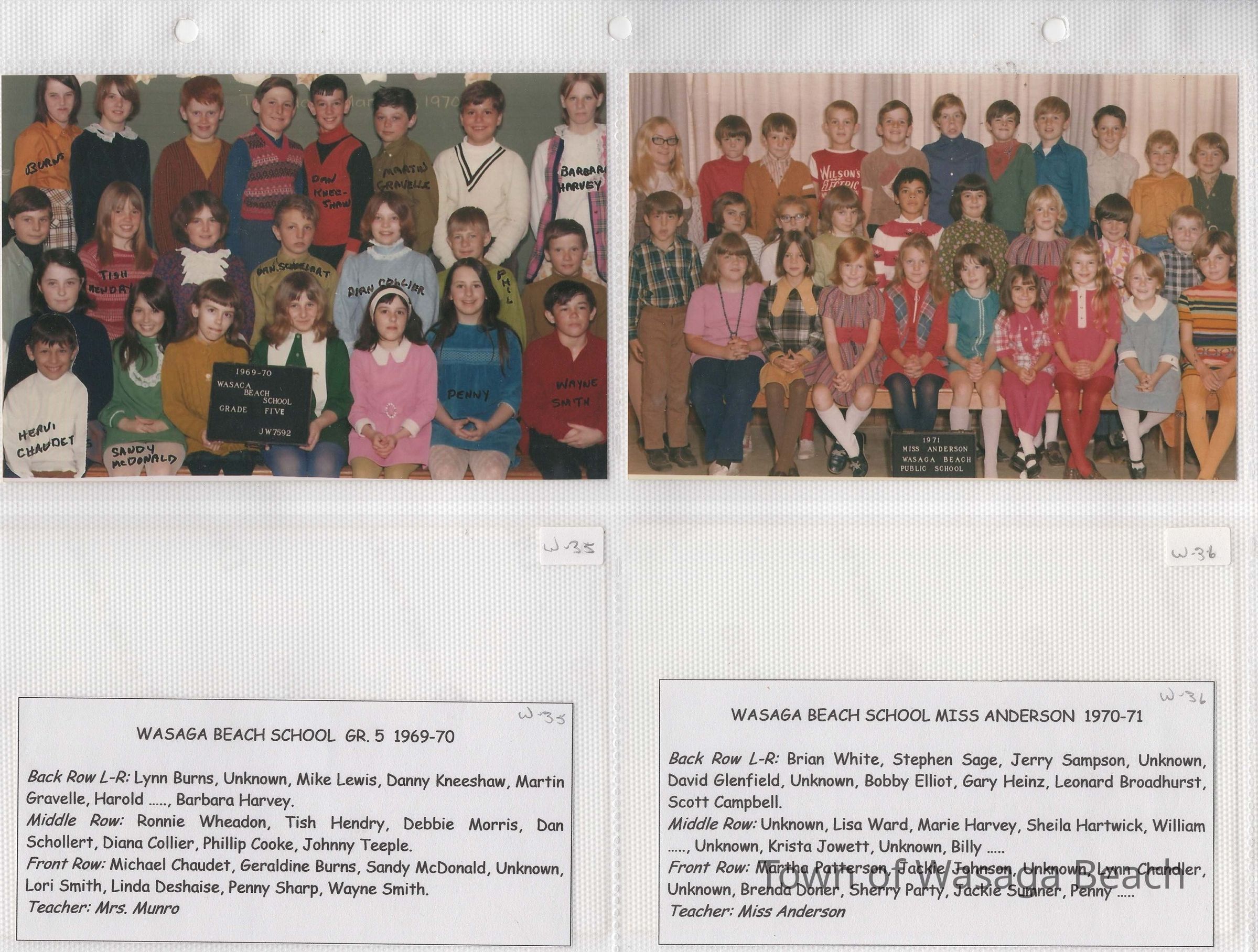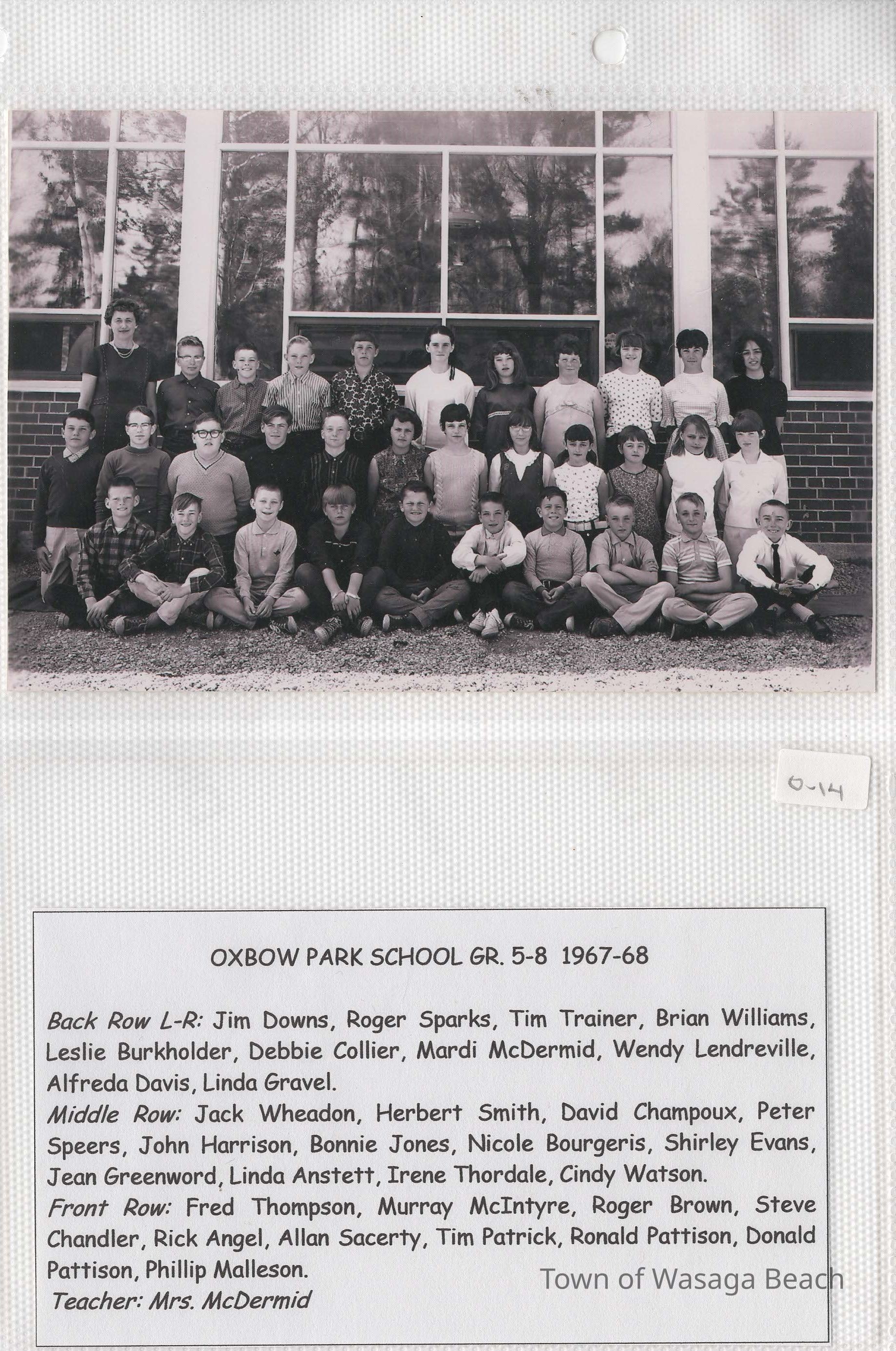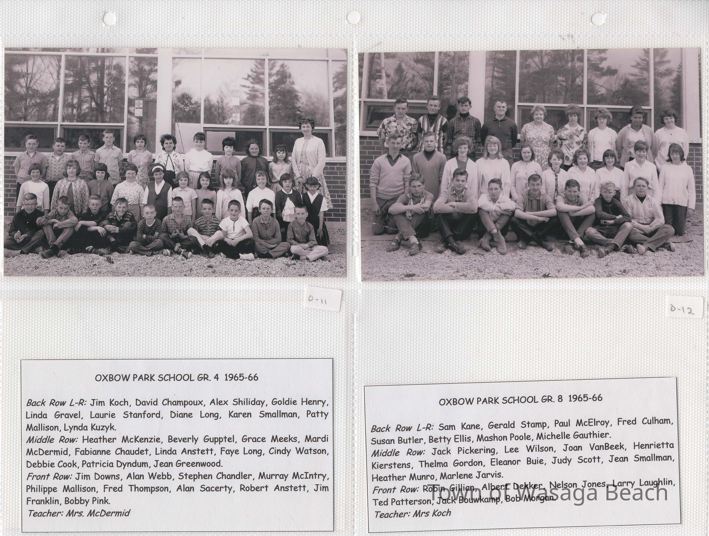 Class photos from Oxbow Park School, 1950's and 1960's and Wasaga Beach School, 1936 to 1971