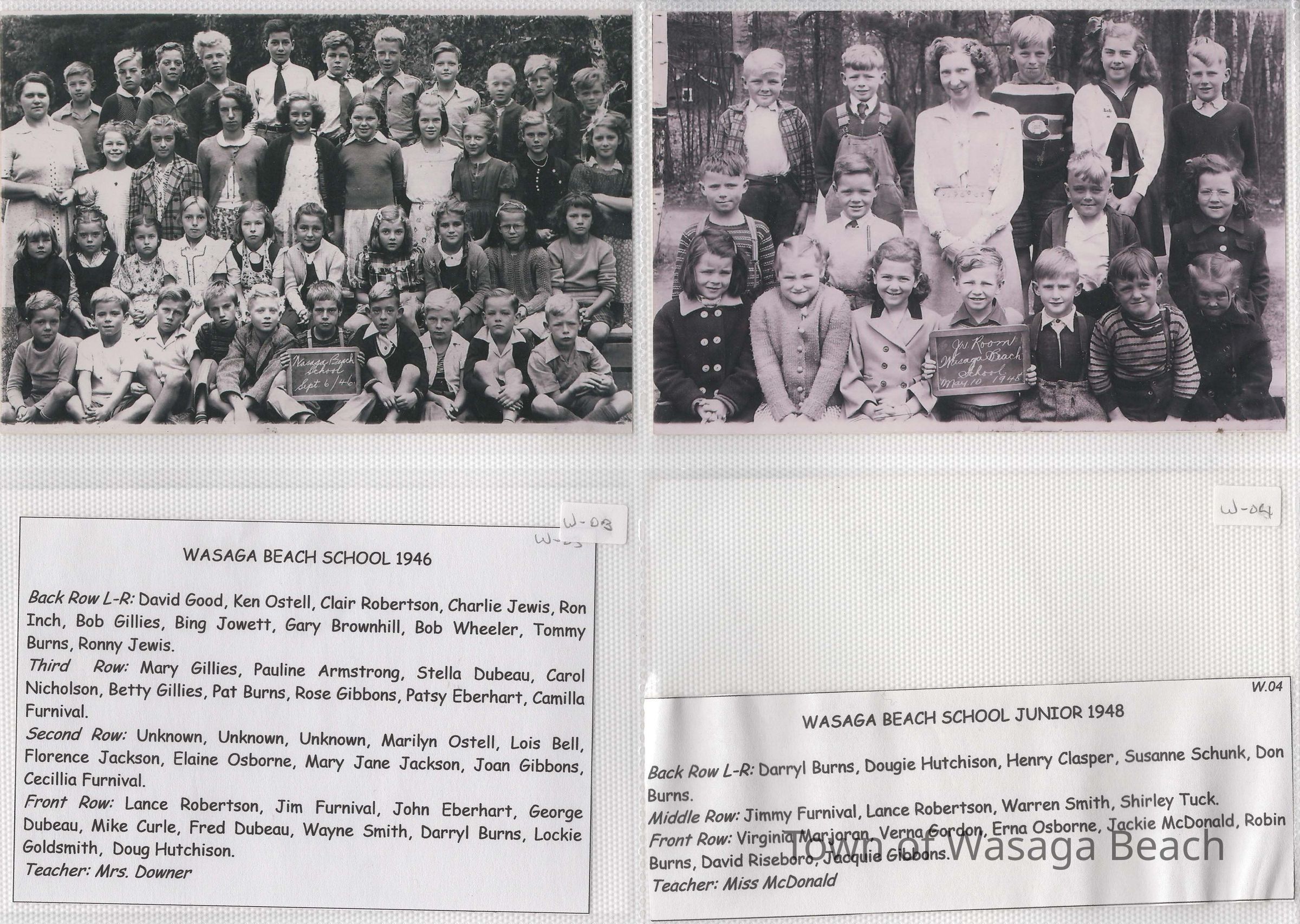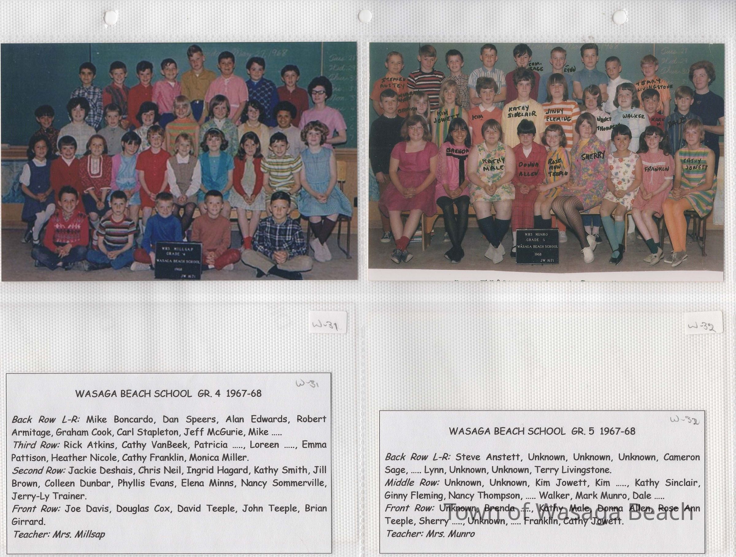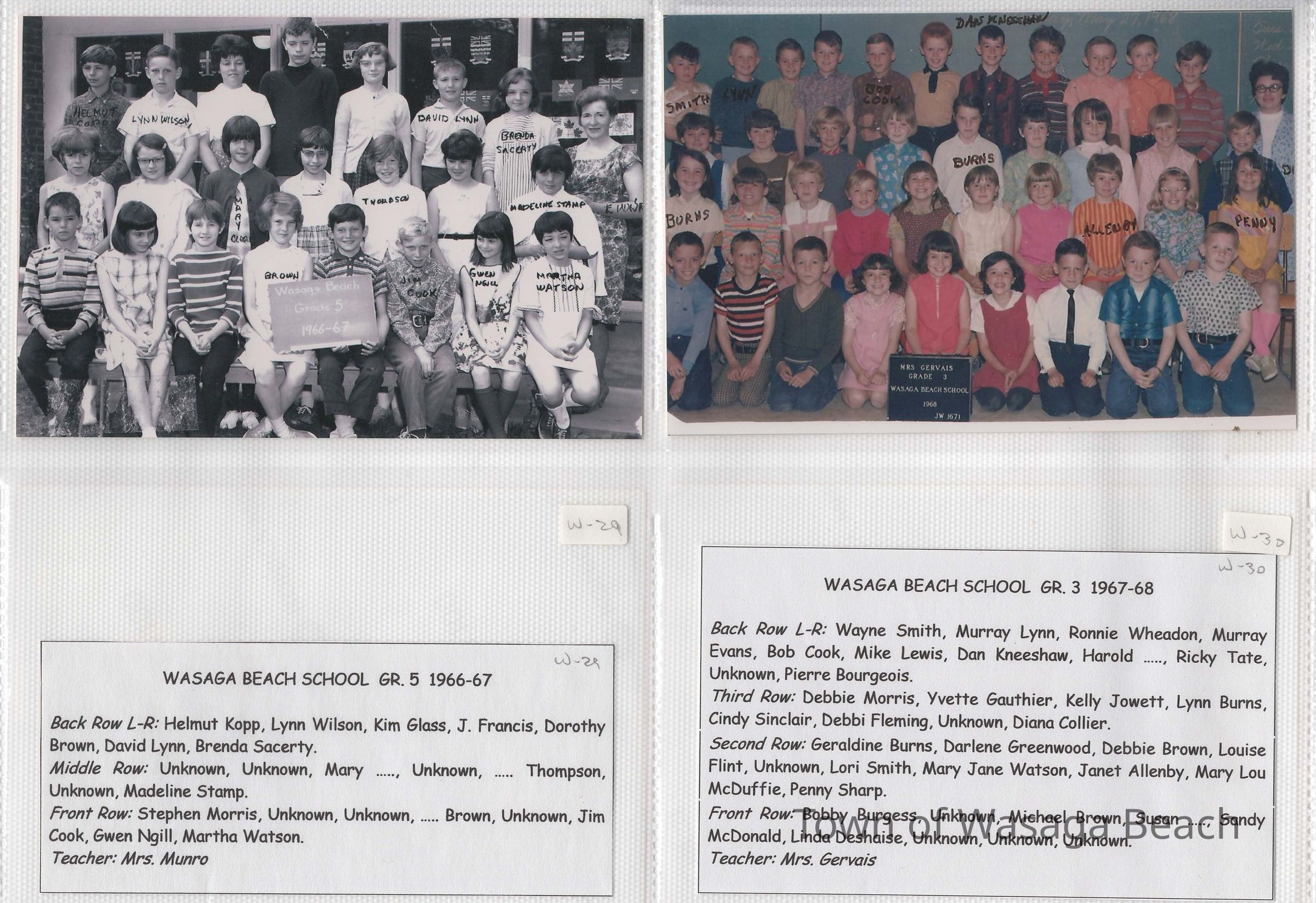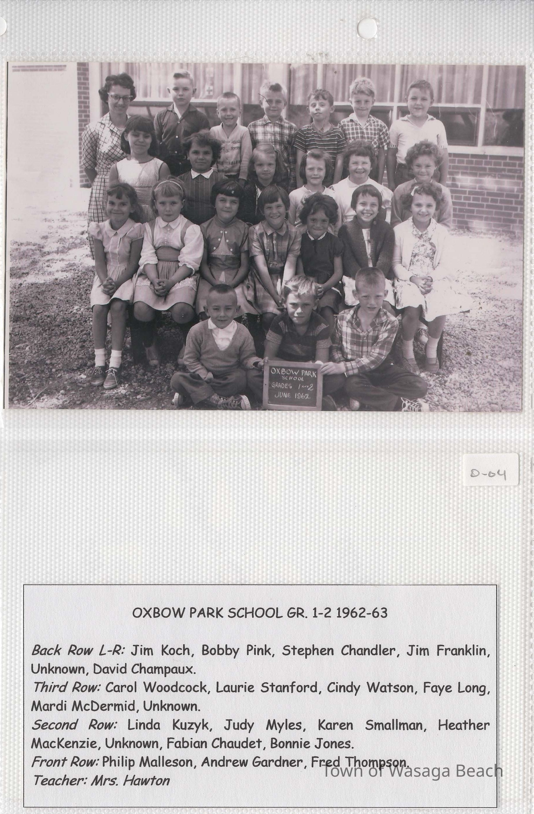 Class photos from Oxbow Park School, 1950's and 1960's and Wasaga Beach School, 1936 to 1971