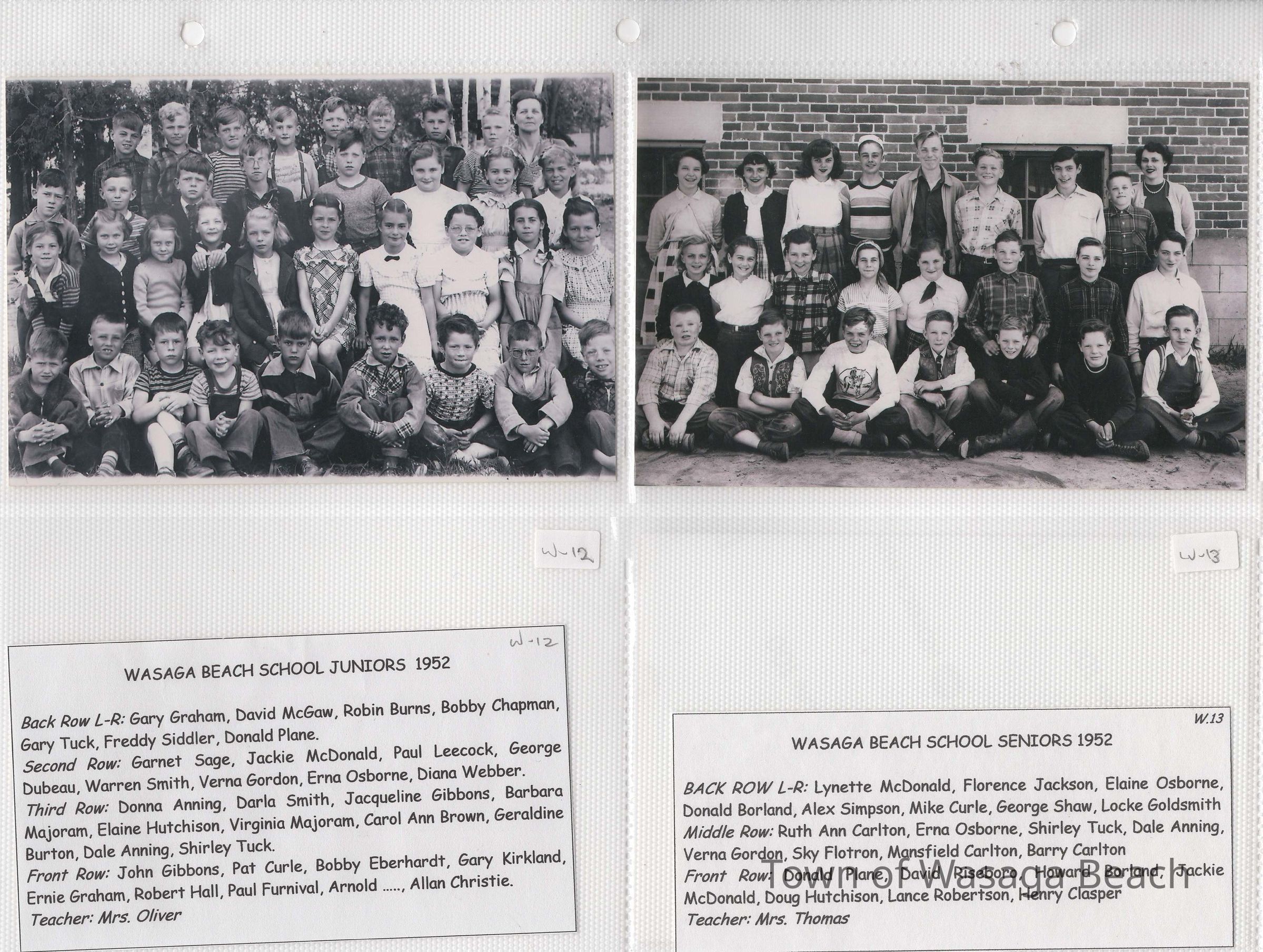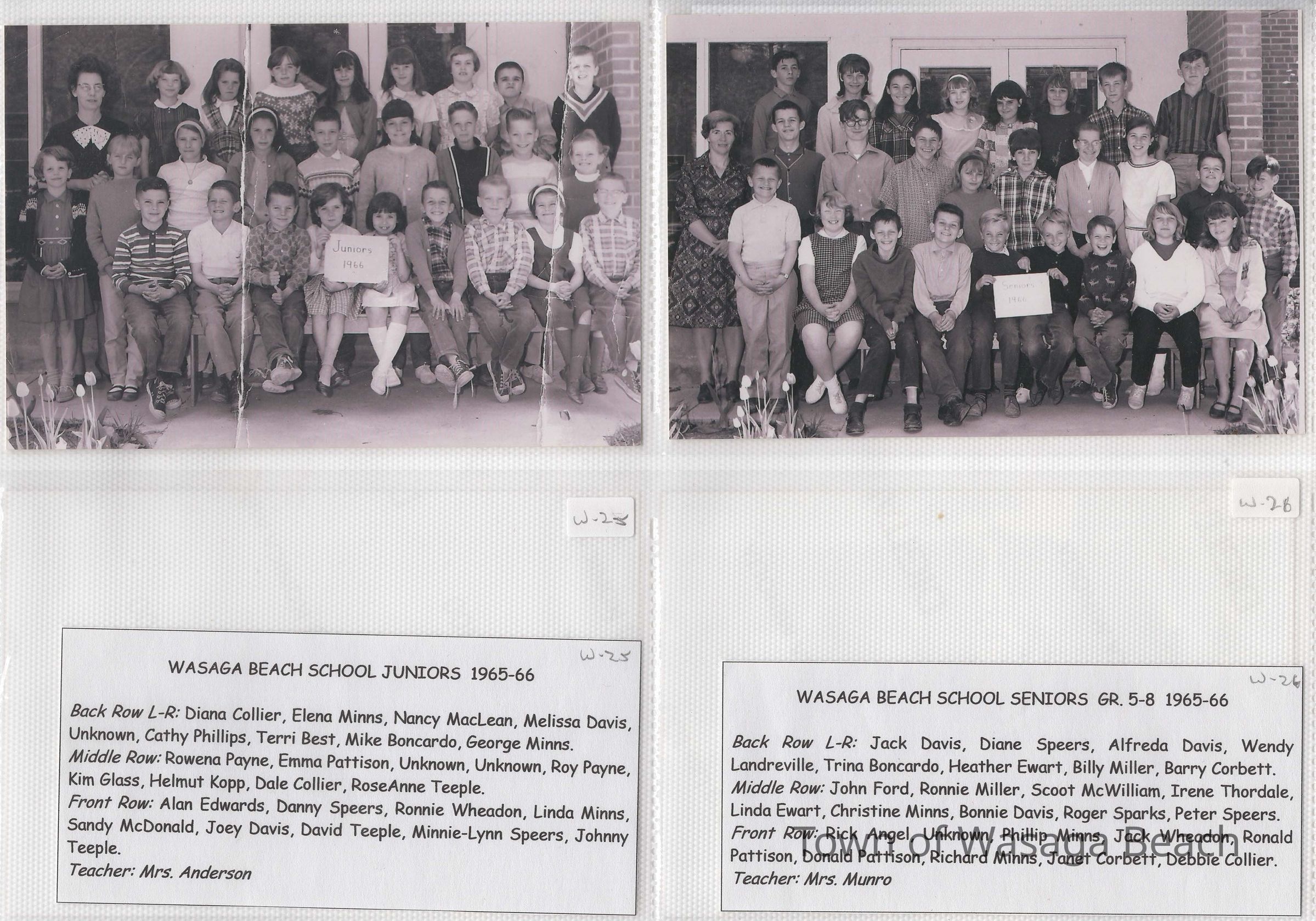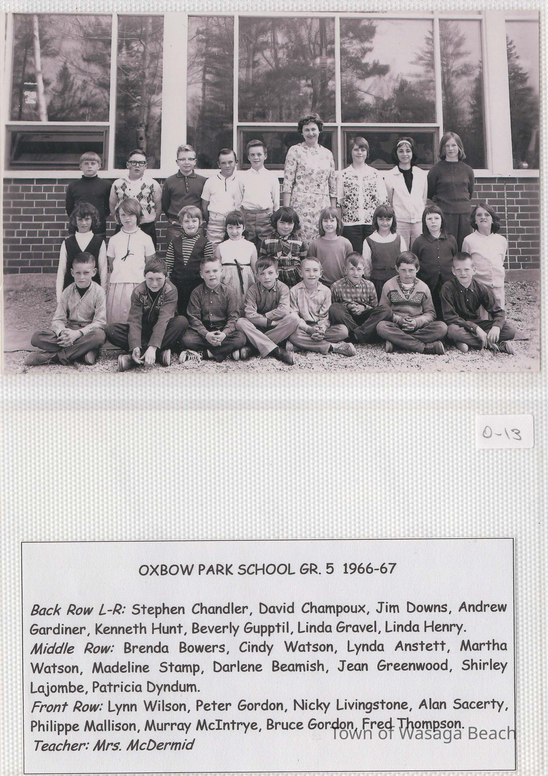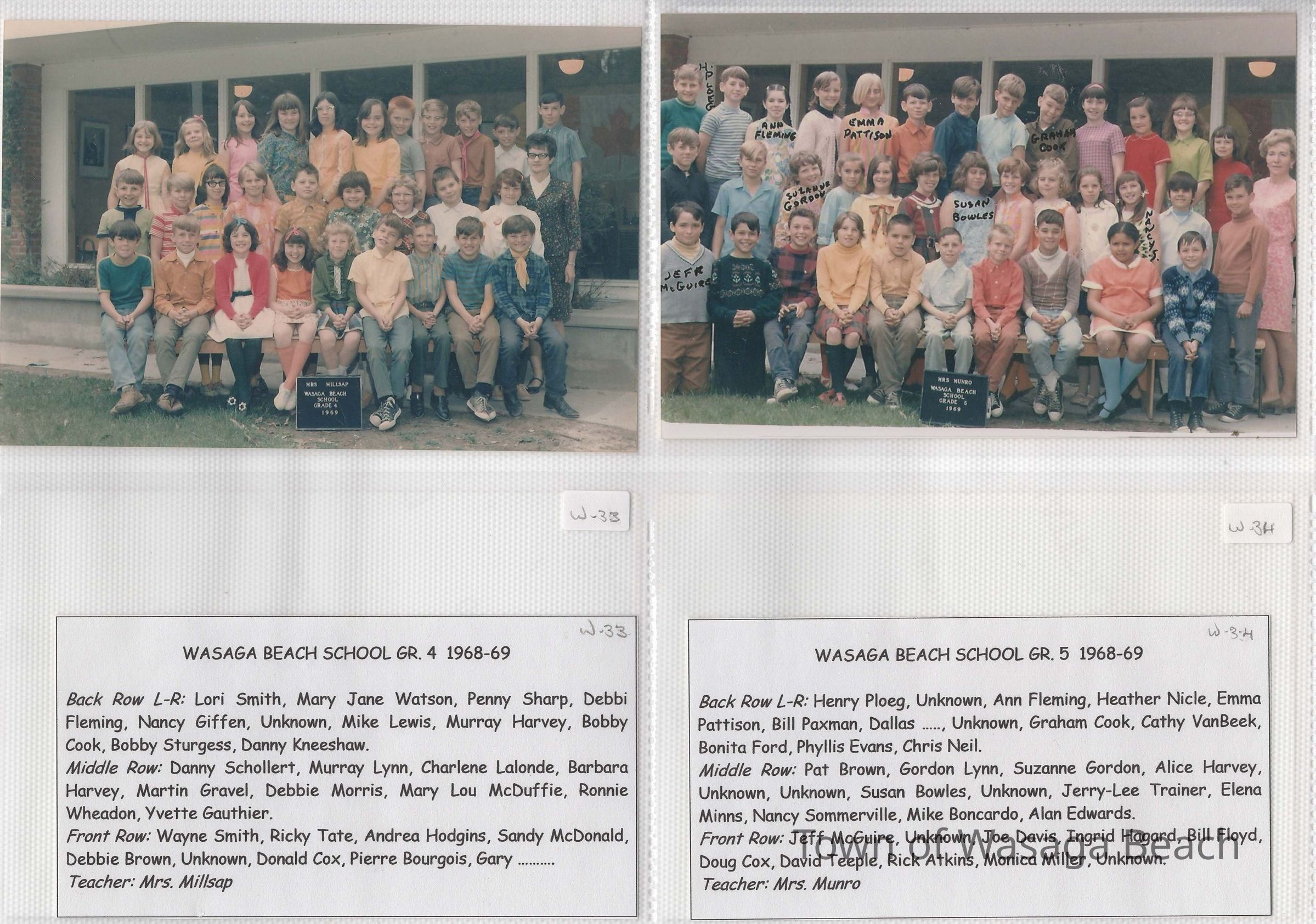 Class photos from Oxbow Park School, 1950's and 1960's and Wasaga Beach School, 1936 to 1971