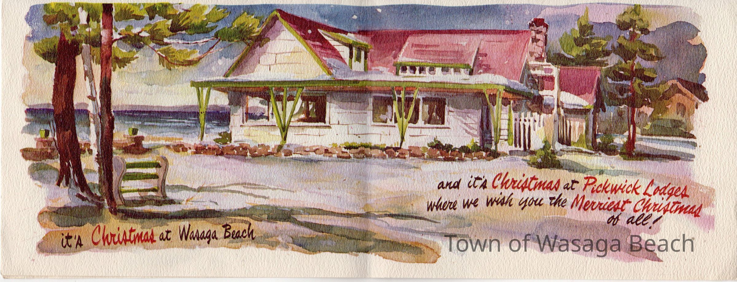 Water colour Pickwick Cabins Christmas Card, circa 1930, by Frank C. JohnstonContext