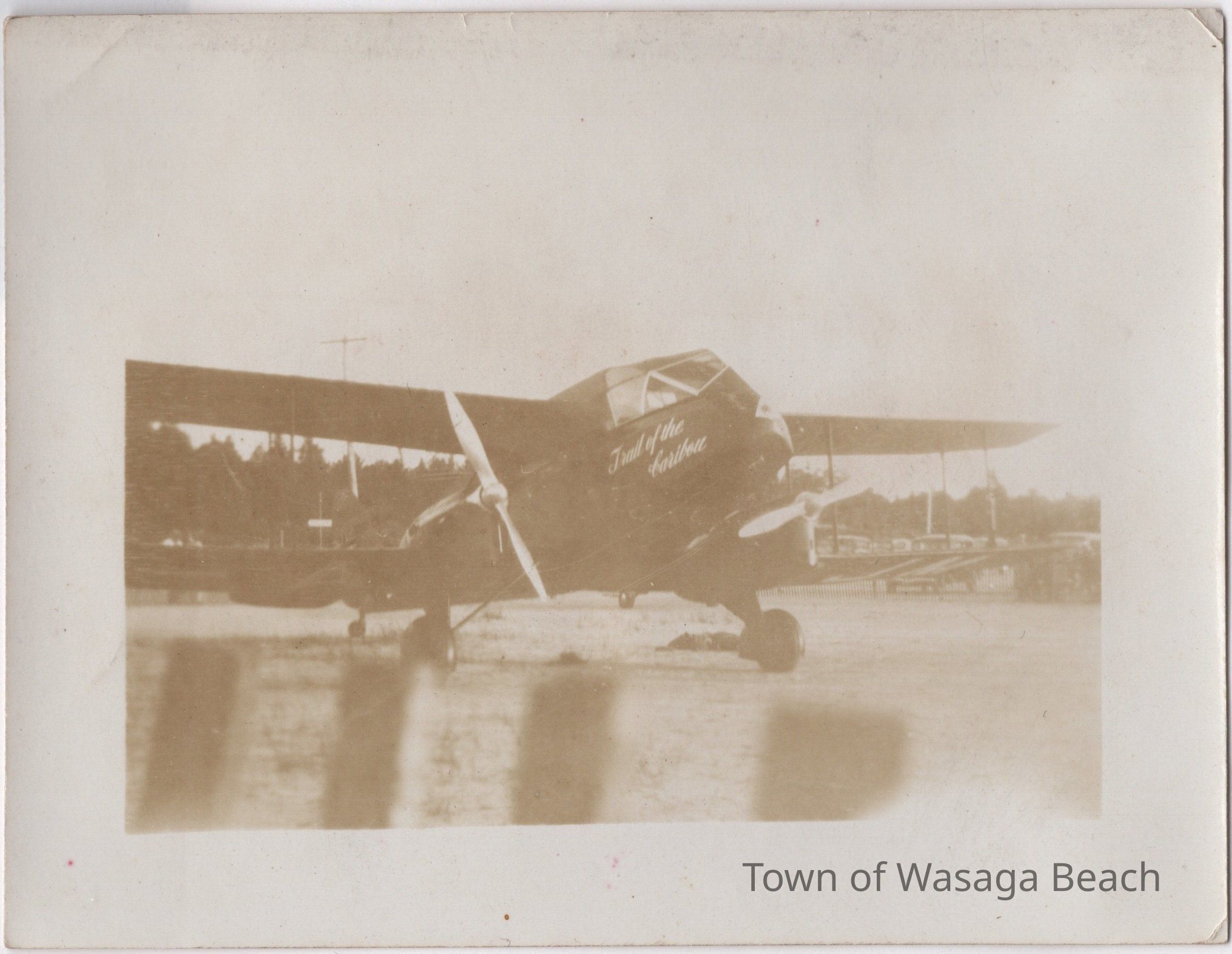 In early years, the beachfront at Wasaga Beach was not only a main roadway it was also a natural runway for airplanes. In 1933, Captain James Mollison and his wife Amy Johnson attempted to fly their plane, the Seafarer II, from Wasaga Beach to Bagdad, Iraq in an attempt to break the long distance record. On the day they attempted to take off from the beachfront, high crosswinds made it difficult to take off. On their third attempt, the undercarriage of the plane was damaged preventing any further attempt to take off. The Mollison's sold the Seafarer II to James Ayling and Leonard Reid who restored and renamed the plane “Trail of the Caribou”. Ayling and Reid also planned to attempt to break the record for the longest flight. On the morning of August 8th, 1934, Ayling and Reid took off from Wasaga Beach in the Trail of the Caribou and made it to England. They encountered heavy fog and winds and used more fuel than they had anticipated. Although they did not break the world record they made the first direct non-stop flight from Canada to England.