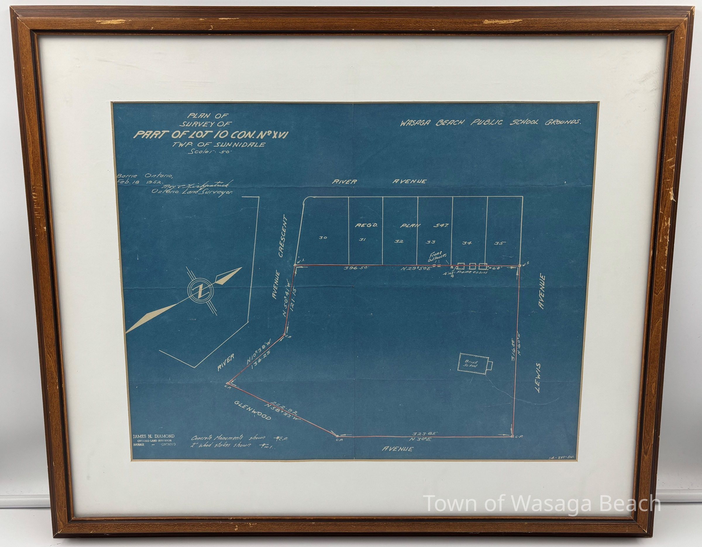 Framed survey of Wasaga Beach Public School Grounds, February 18, 1952- now Town of Wasaga Beach Municipal OfficeContext