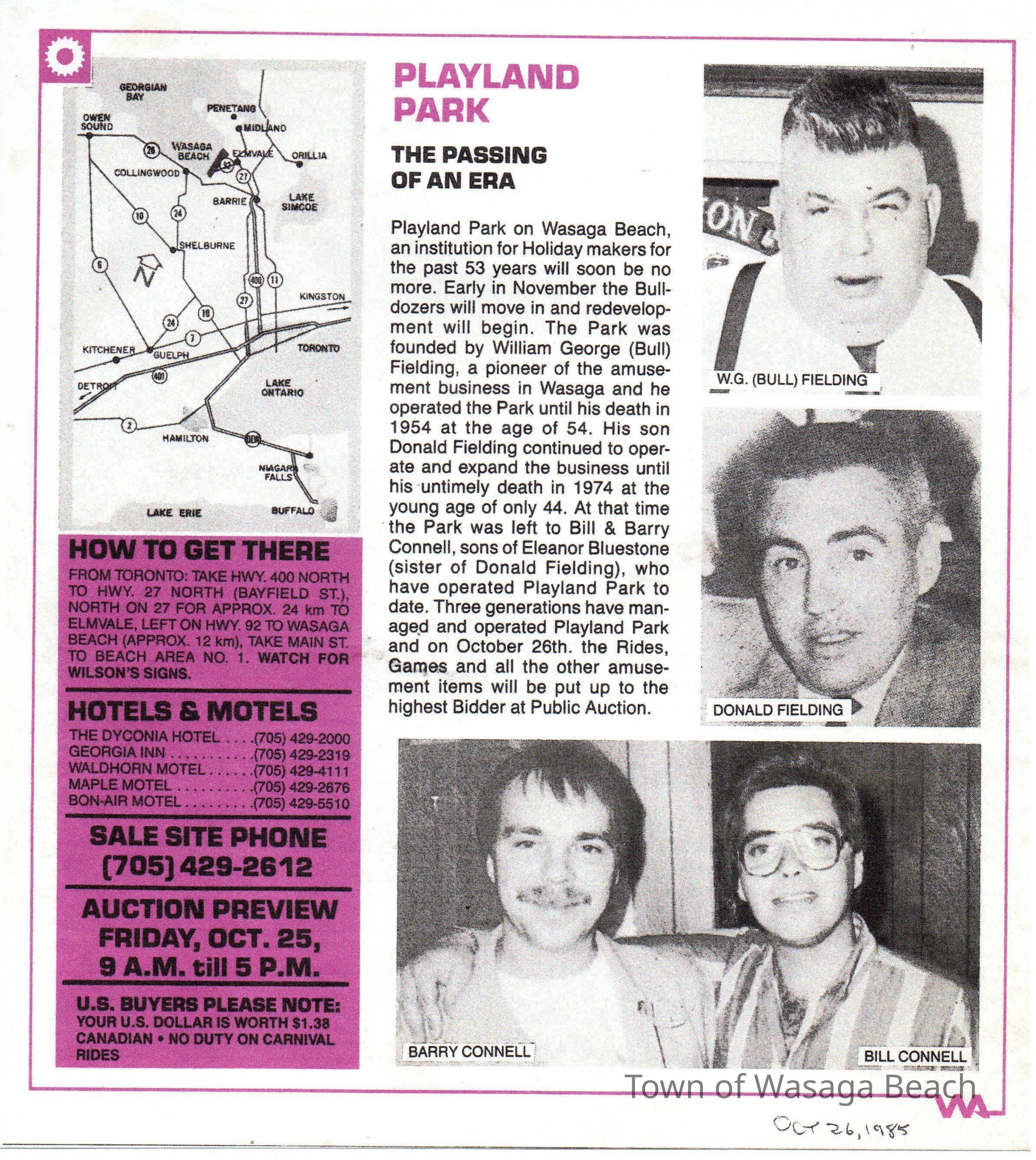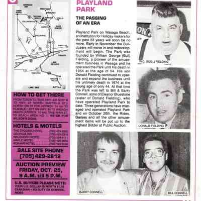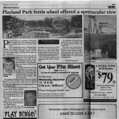 A newspaper article in the Wasaga Sun, November 12, 2008 - "Playland Park ferris wheel offered a spectacular view" by Mary Watson describes the history of Playland Park.