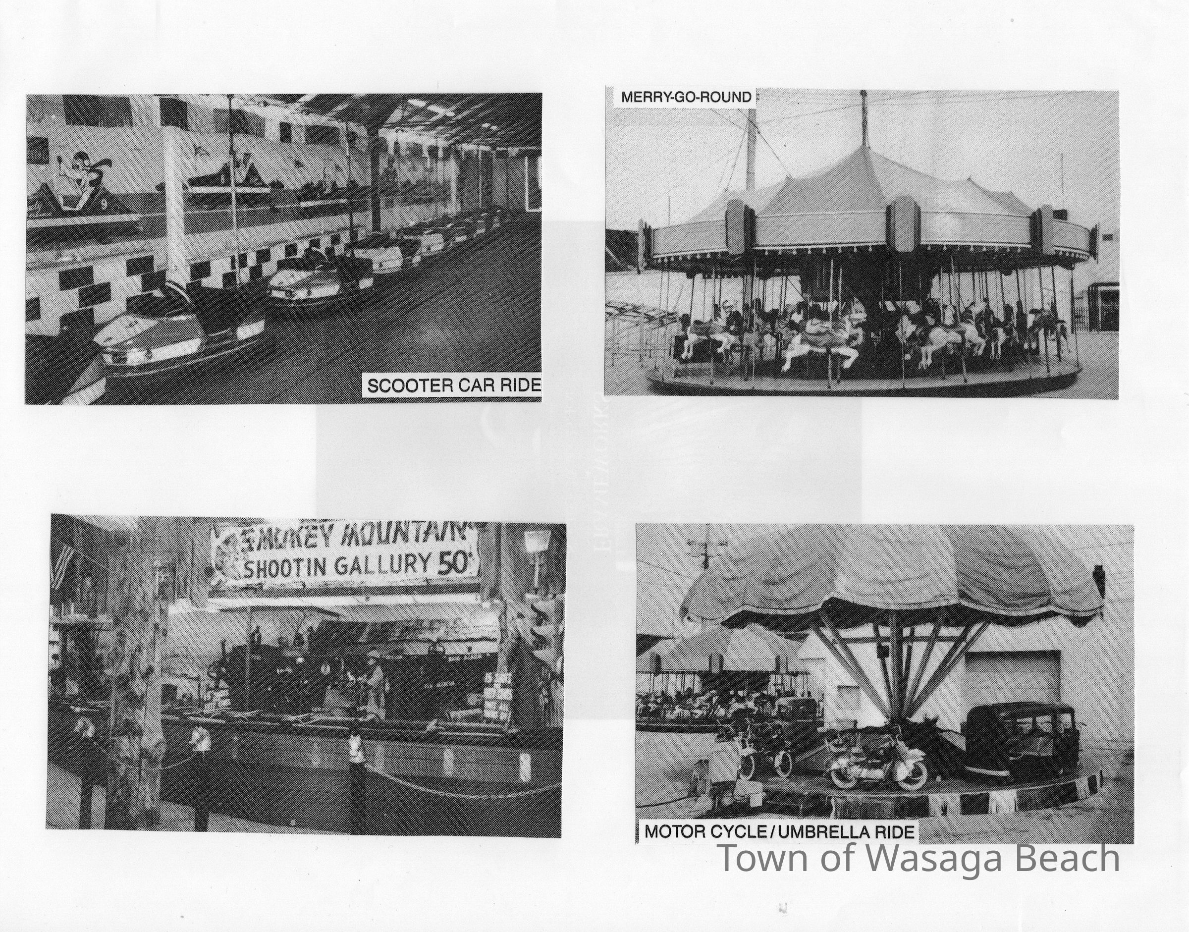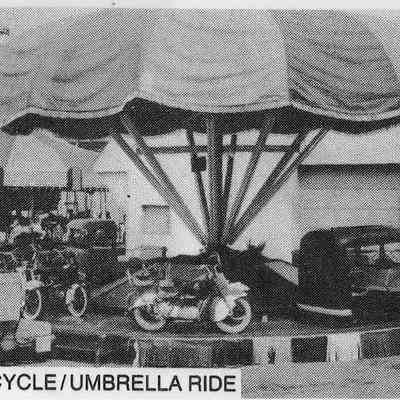 Photocopied pictures of the Scooter Car Ride, Merry-Go-Round, Smokey Mountain Shootin Gallury and Motor cycle/Umbrella RIdeDimensions
