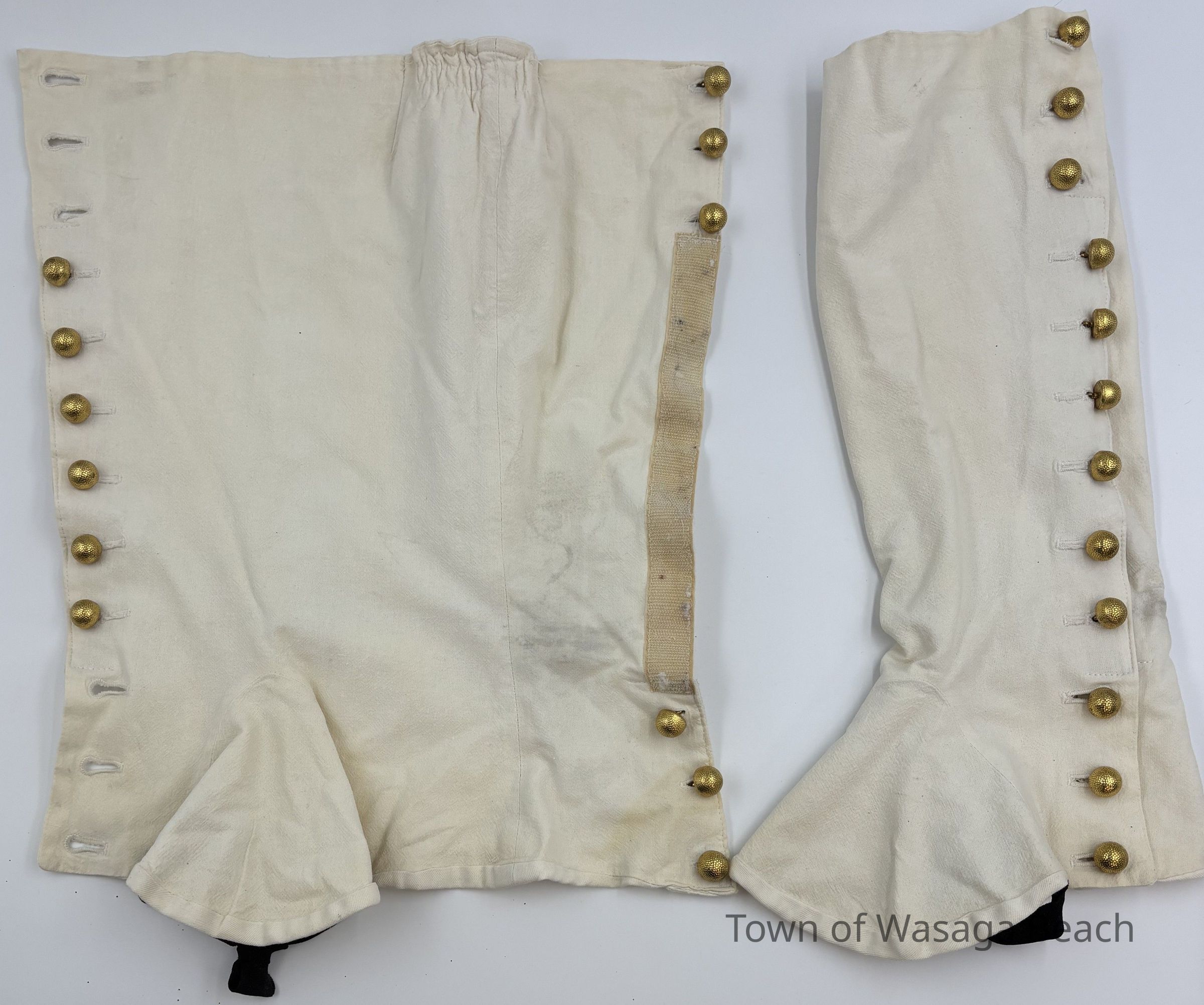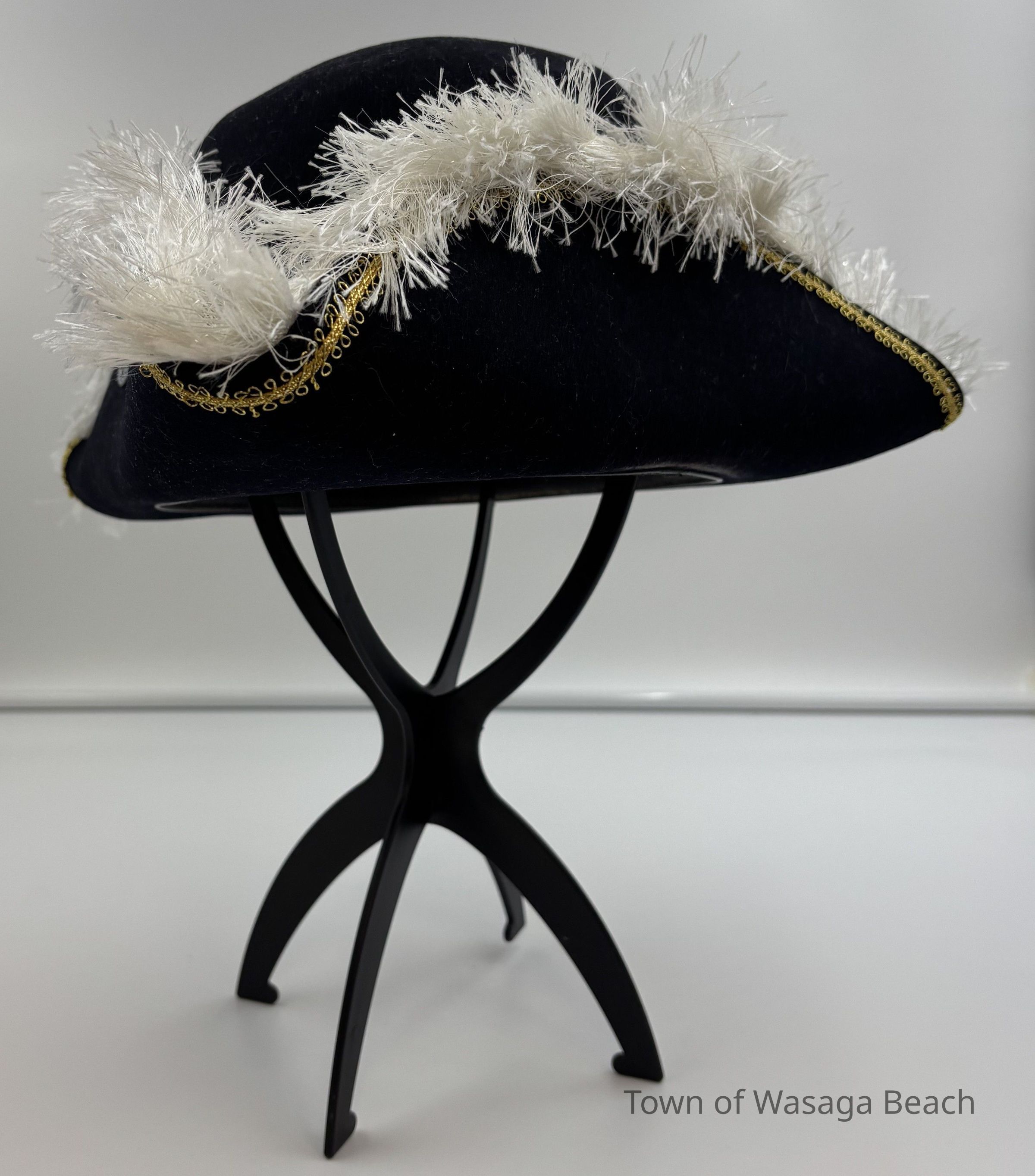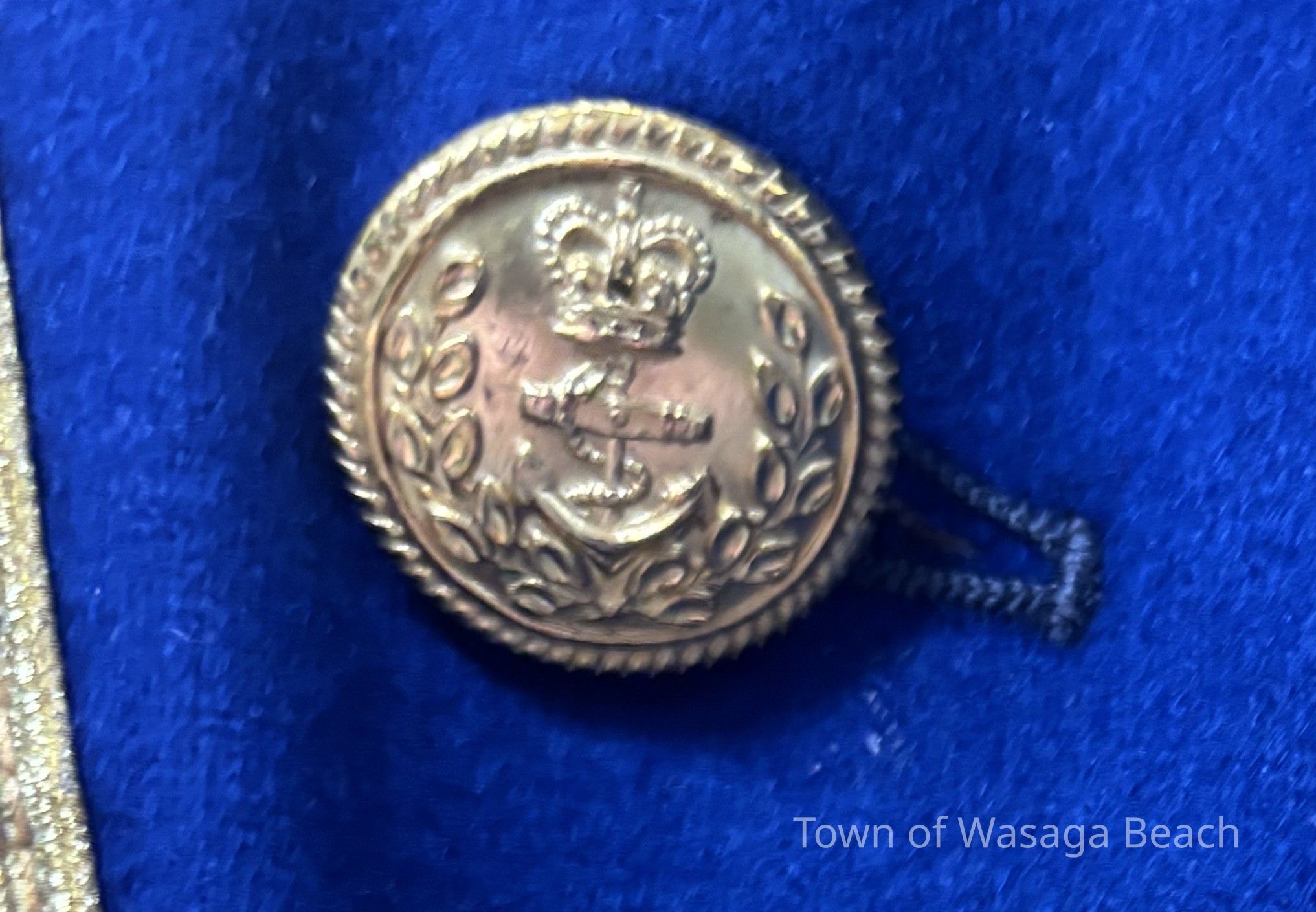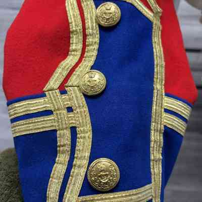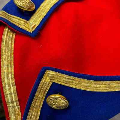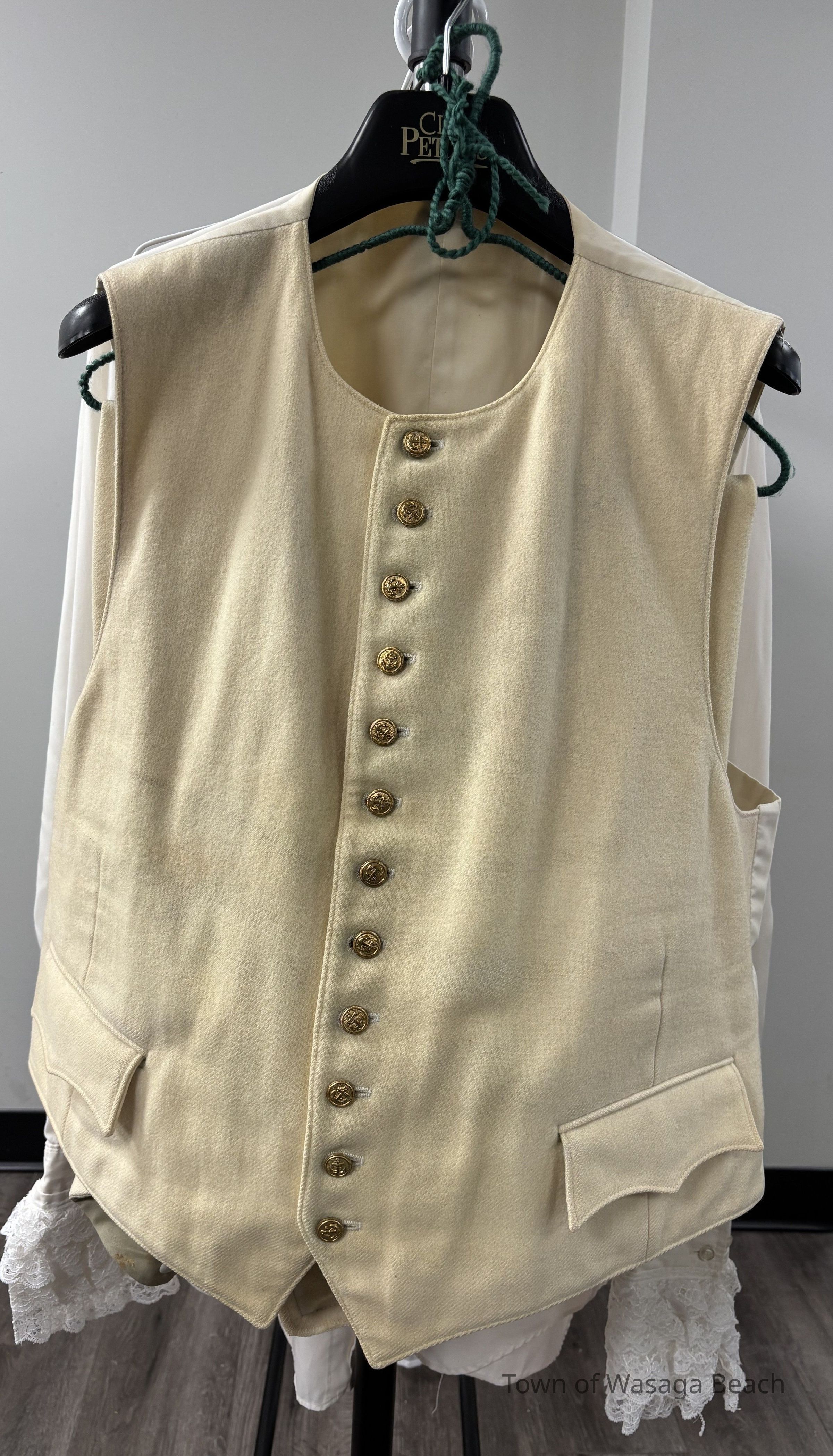 The Town Crier uniform, generously donated by family friend Bill Aiken in 2026, is of colonial style. Also called “livery” and never “a costume”, the frock coat was representative of the community. Town crier uniforms were distinct featuring specific elements of the heritage of the area they represented. The Wasaga Beach Town Crier uniform, with red, gold and blue, reflects the heavy influence of British military tradition and the significant historical role the area played during the schooner Nancy’s War of 1812 defense of the British Empire and then the British Navy’s Establishment at Schooner Town 1815-1818.