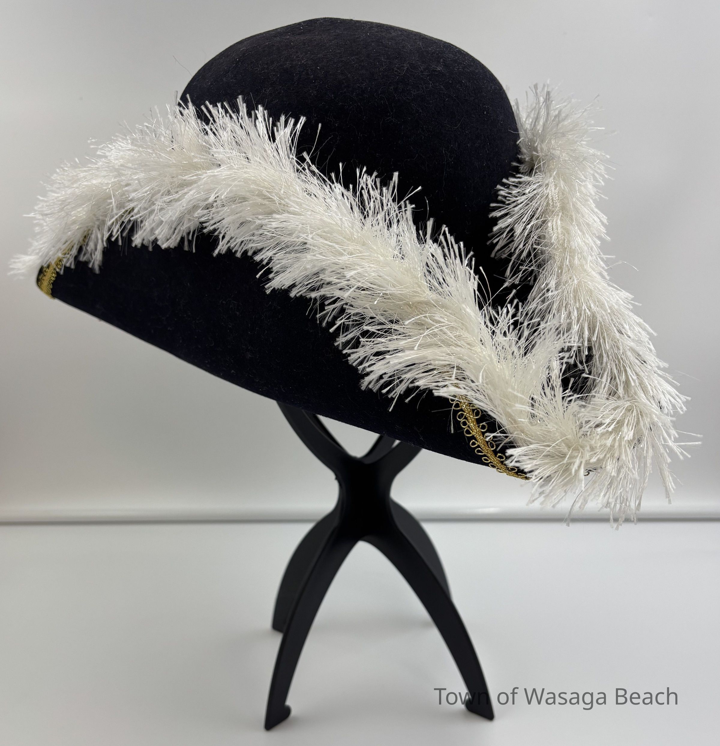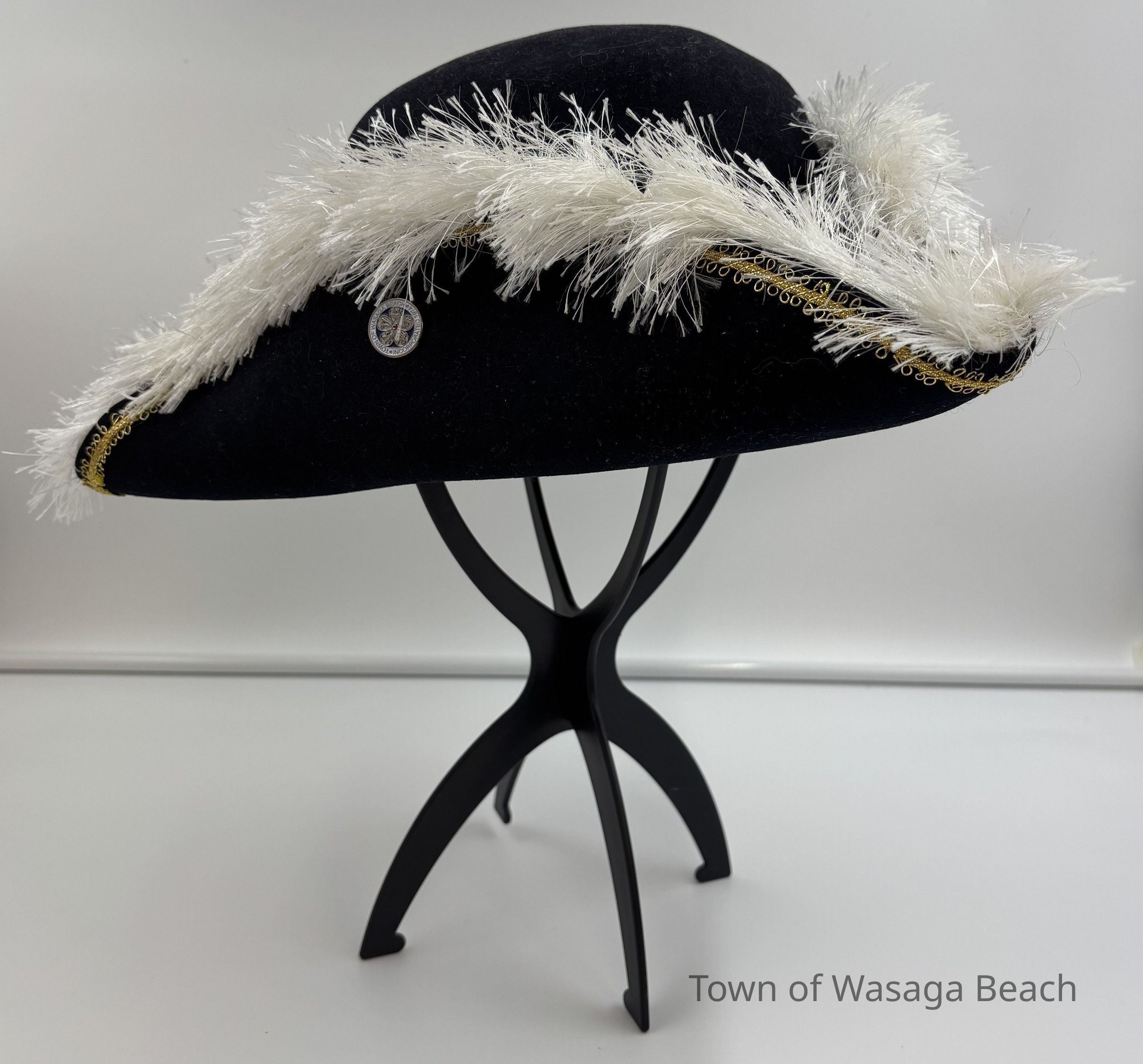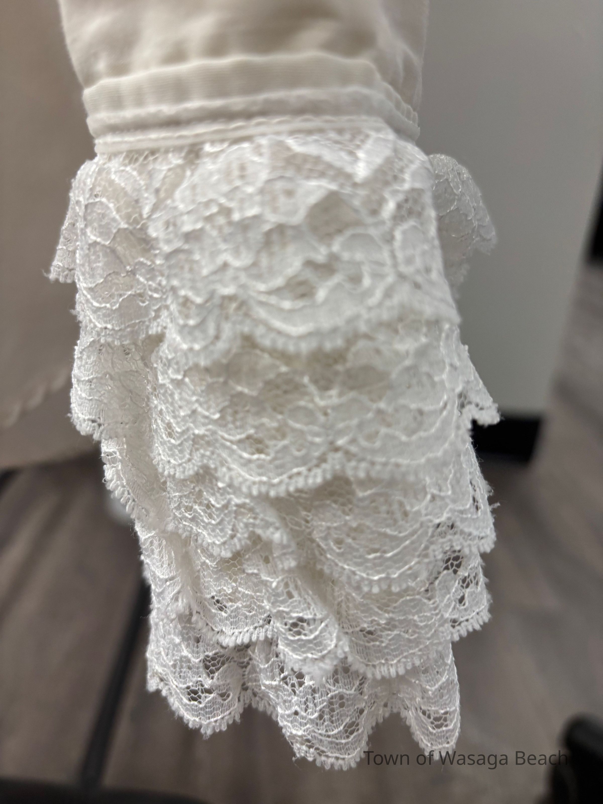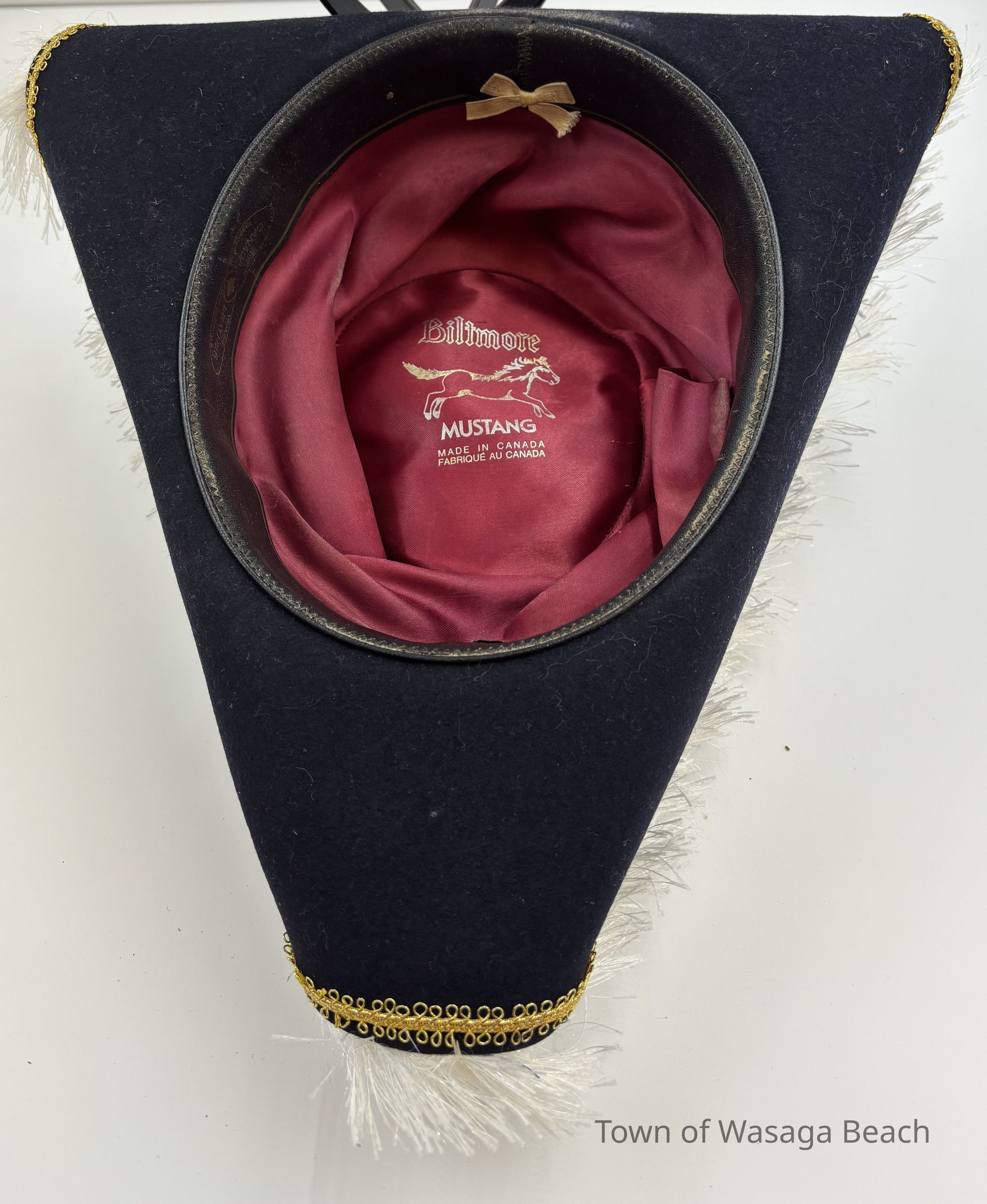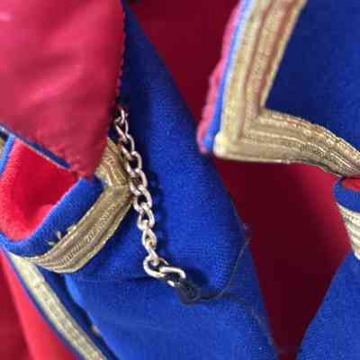 The Town Crier uniform, generously donated by family friend Bill Aiken in 2026, is of colonial style. Also called “livery” and never “a costume”, the frock coat was representative of the community. Town crier uniforms were distinct featuring specific elements of the heritage of the area they represented. The Wasaga Beach Town Crier uniform, with red, gold and blue, reflects the heavy influence of British military tradition and the significant historical role the area played during the schooner Nancy’s War of 1812 defense of the British Empire and then the British Navy’s Establishment at Schooner Town 1815-1818.