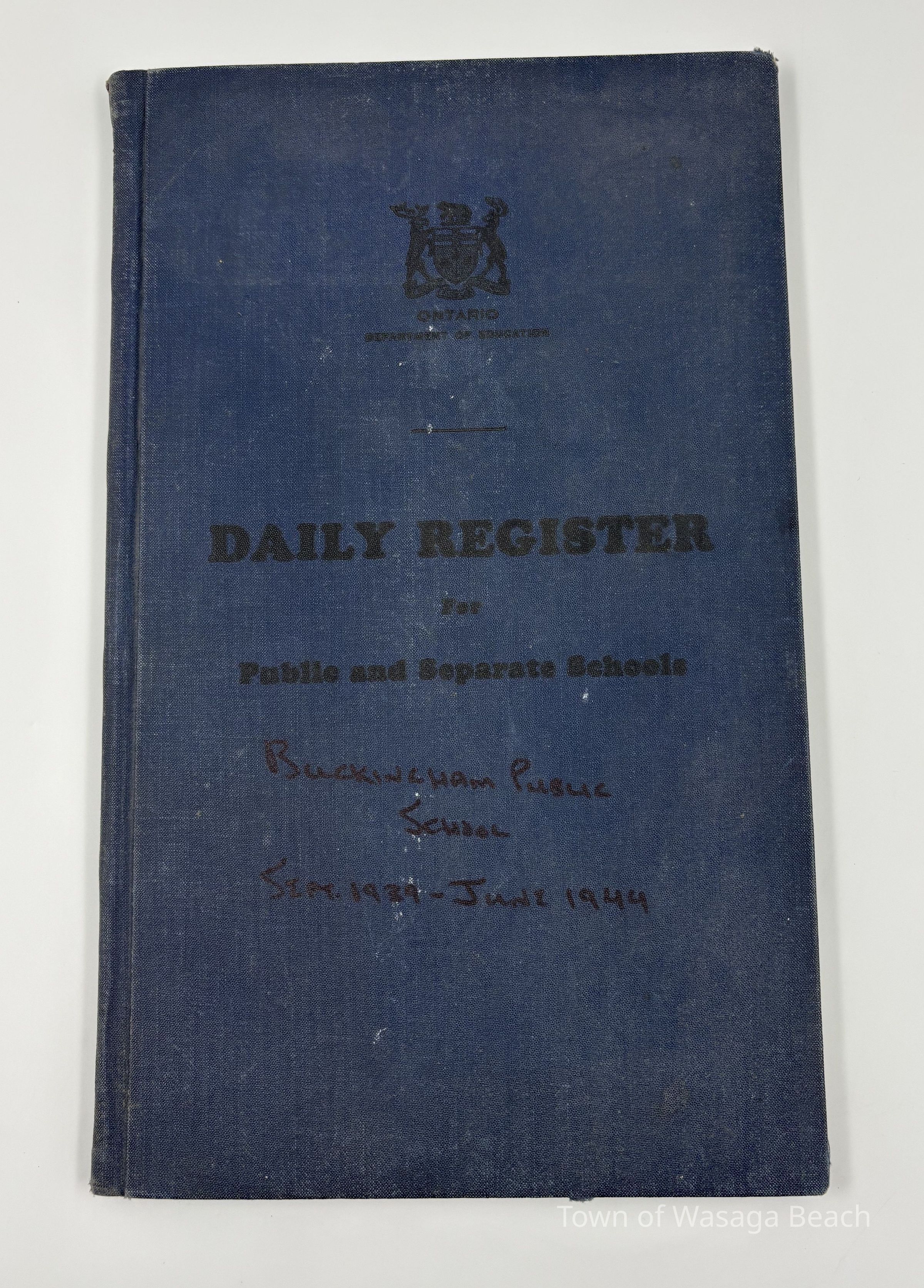 Ontario Department of Education, Public or Separate School Daily Register, hardcover daily attendance registry from Buckingham Public School, September, 1939-June, 1944Context