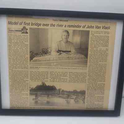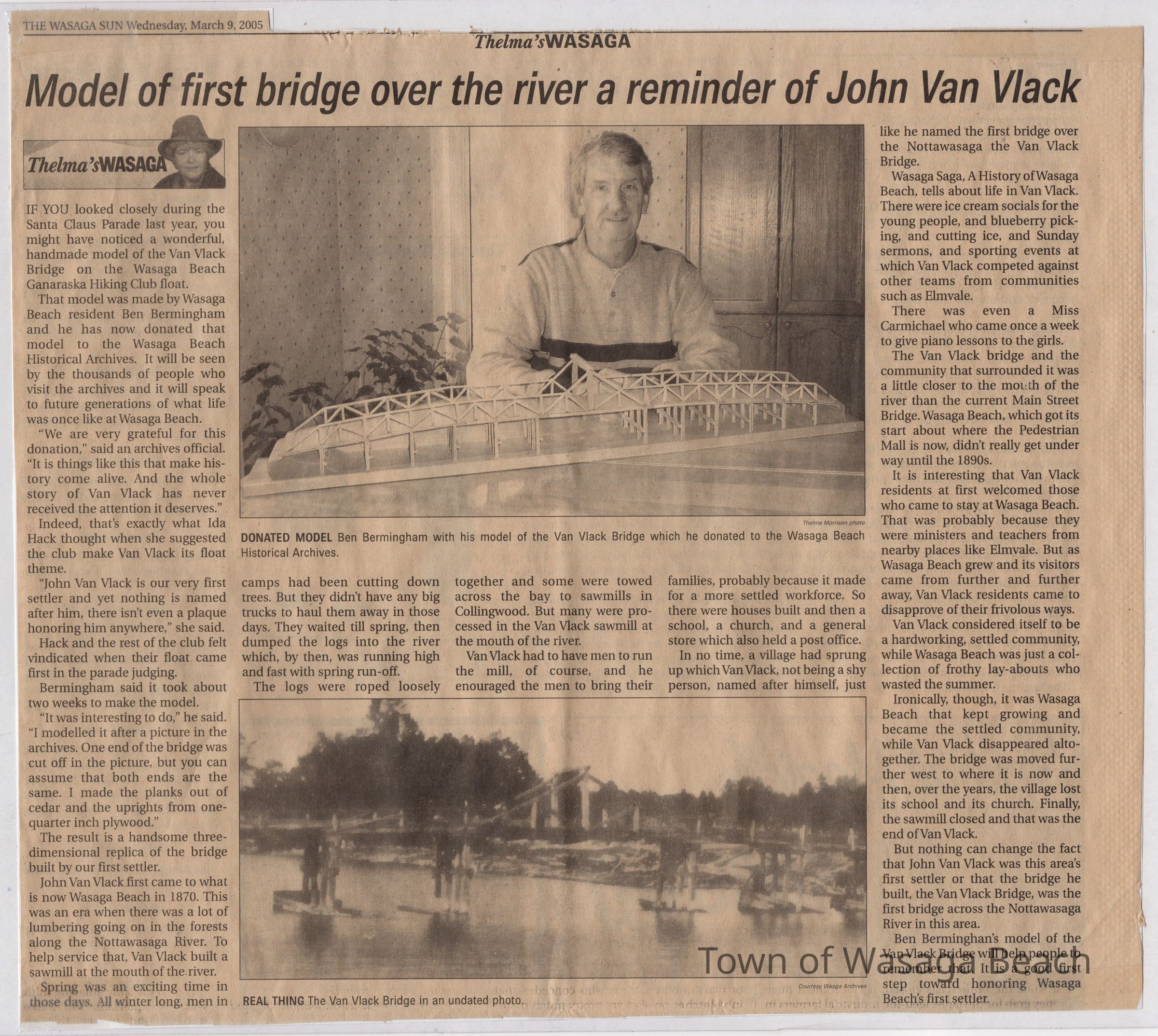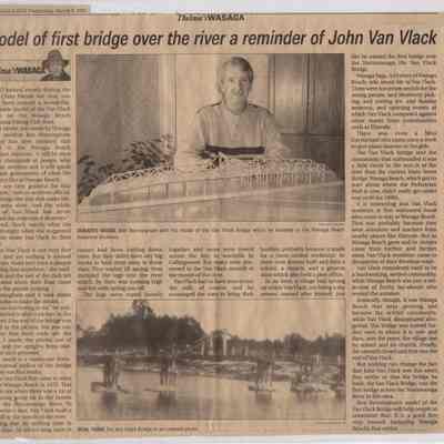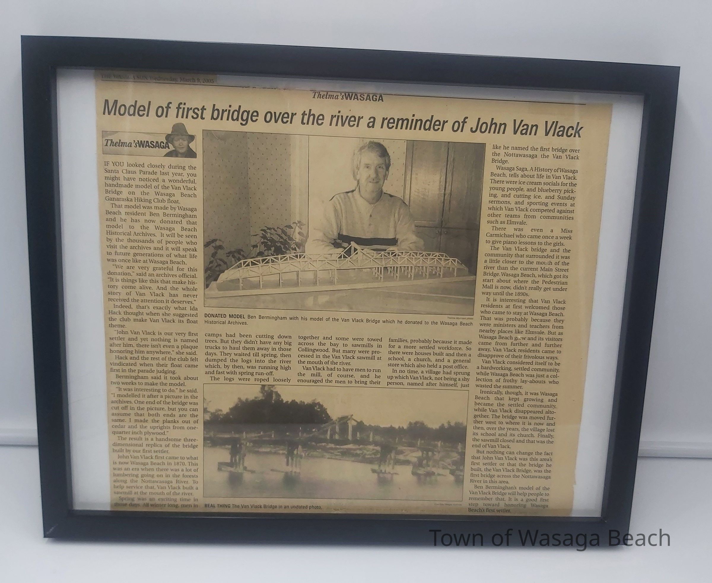 The scale model of the Van Vlack Bridge, built by Ben Bermingham, was originally built as part of a Christmas float for the Ganaraska Hiking Club and then donated to the Archives by Mr. Bermingham.Acquisition