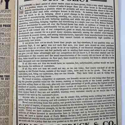 "It all started with Richard Warren Sears, a young man forced as a teenager to support his family after his once-wealthy father lost all of his fortune through bad investments and then died. While working with the railway in Minnesota, young Sears got stuck with a shipment of watches that were rejected by the intended recipient. He sold them all through the postal service, made a bundle of money and started his own mail-order company.