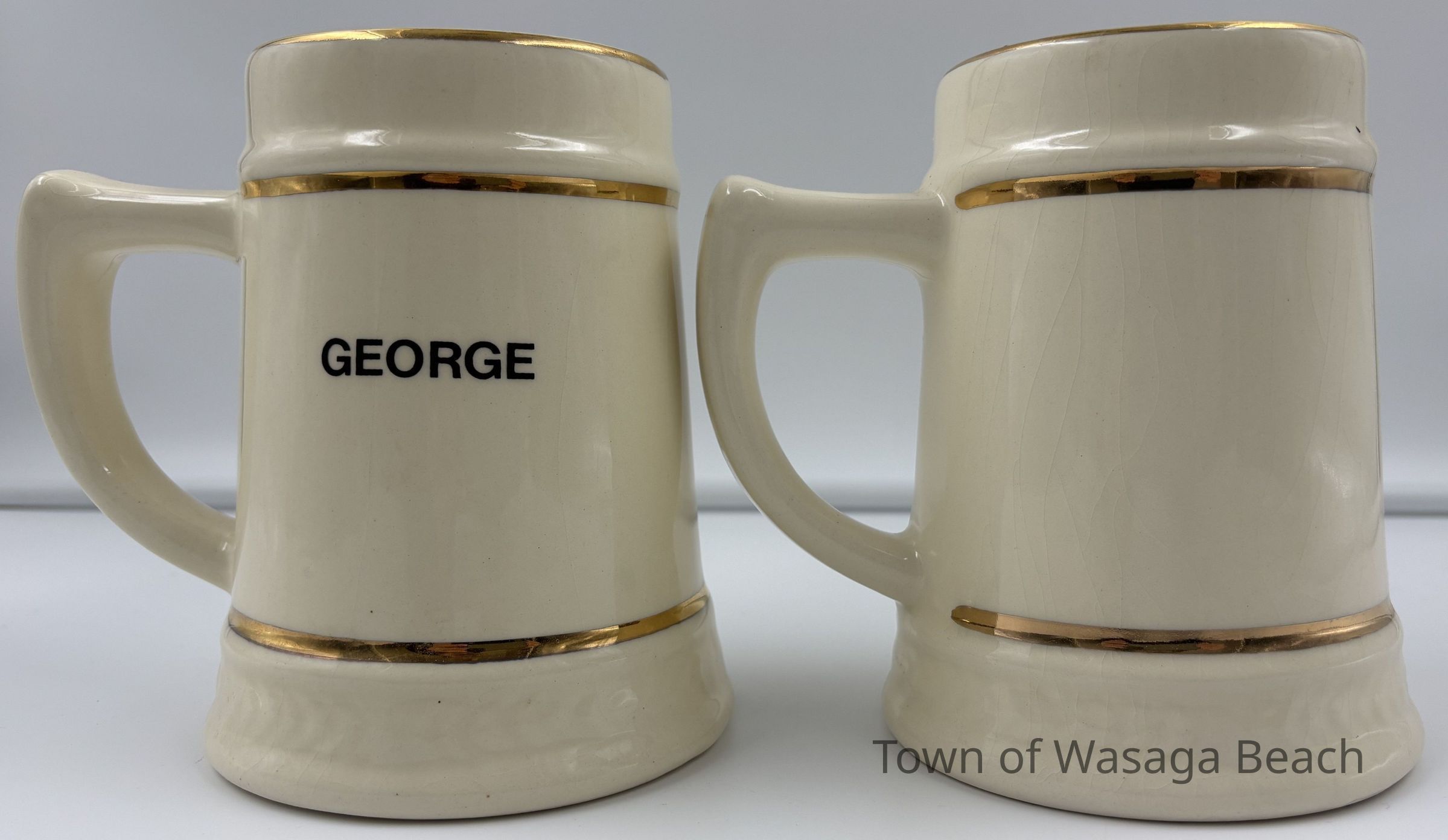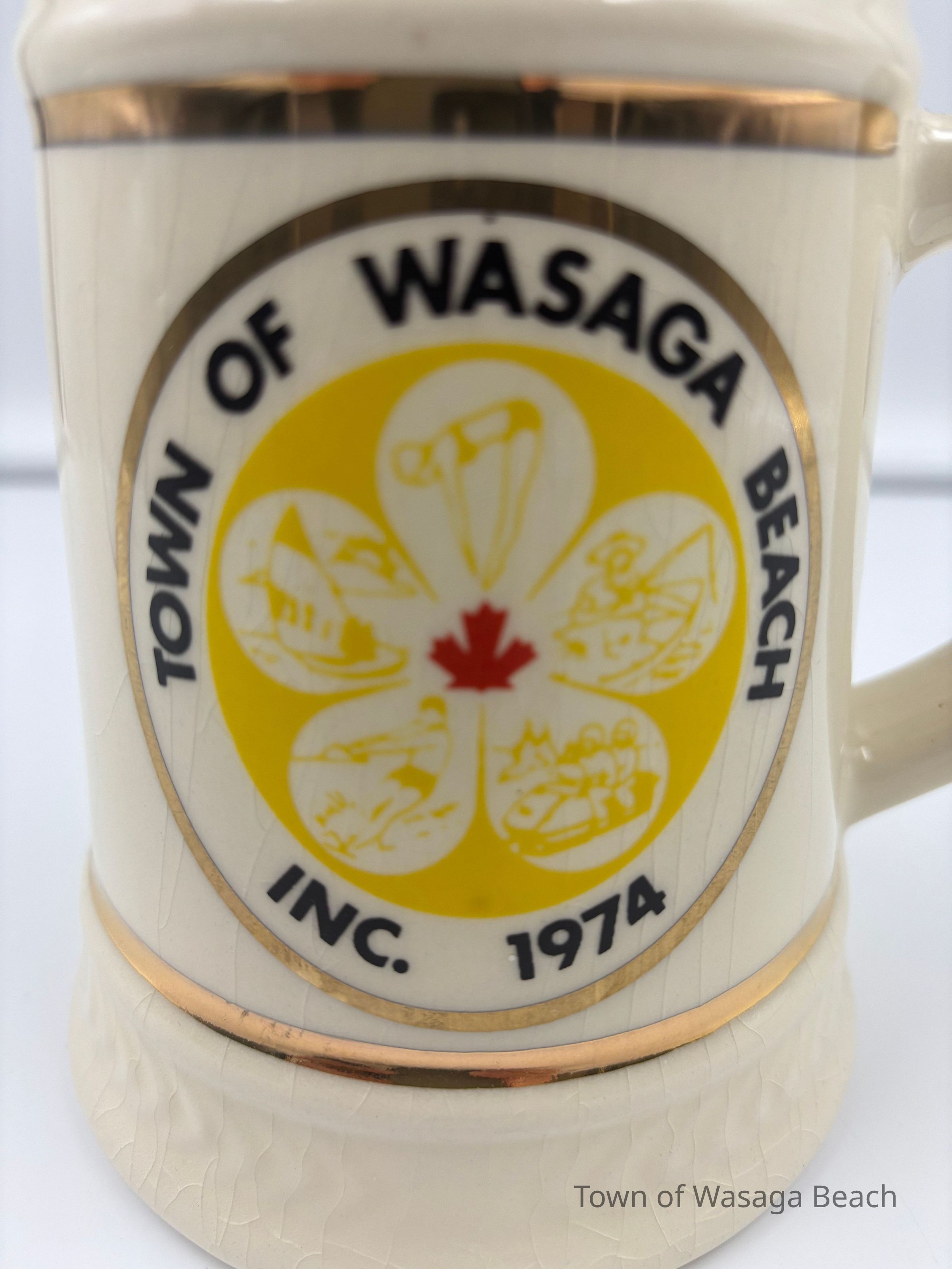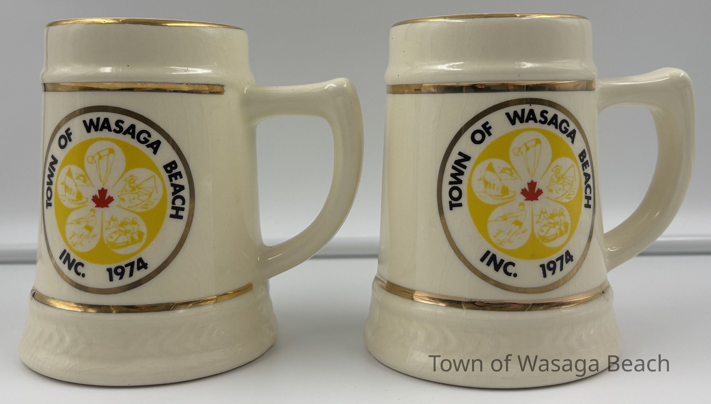 Set of two commemorative mugs with the Town of Wasaga Beach Inc. 1974 logoContext